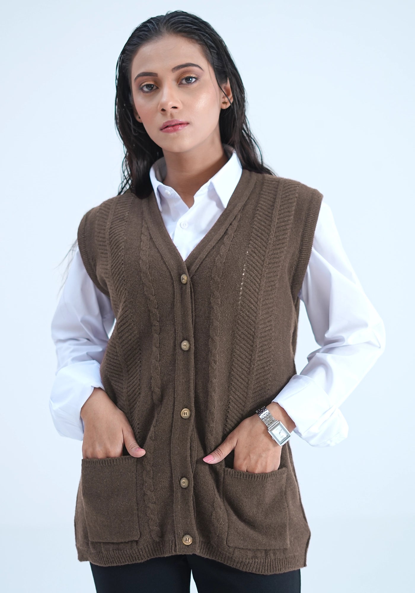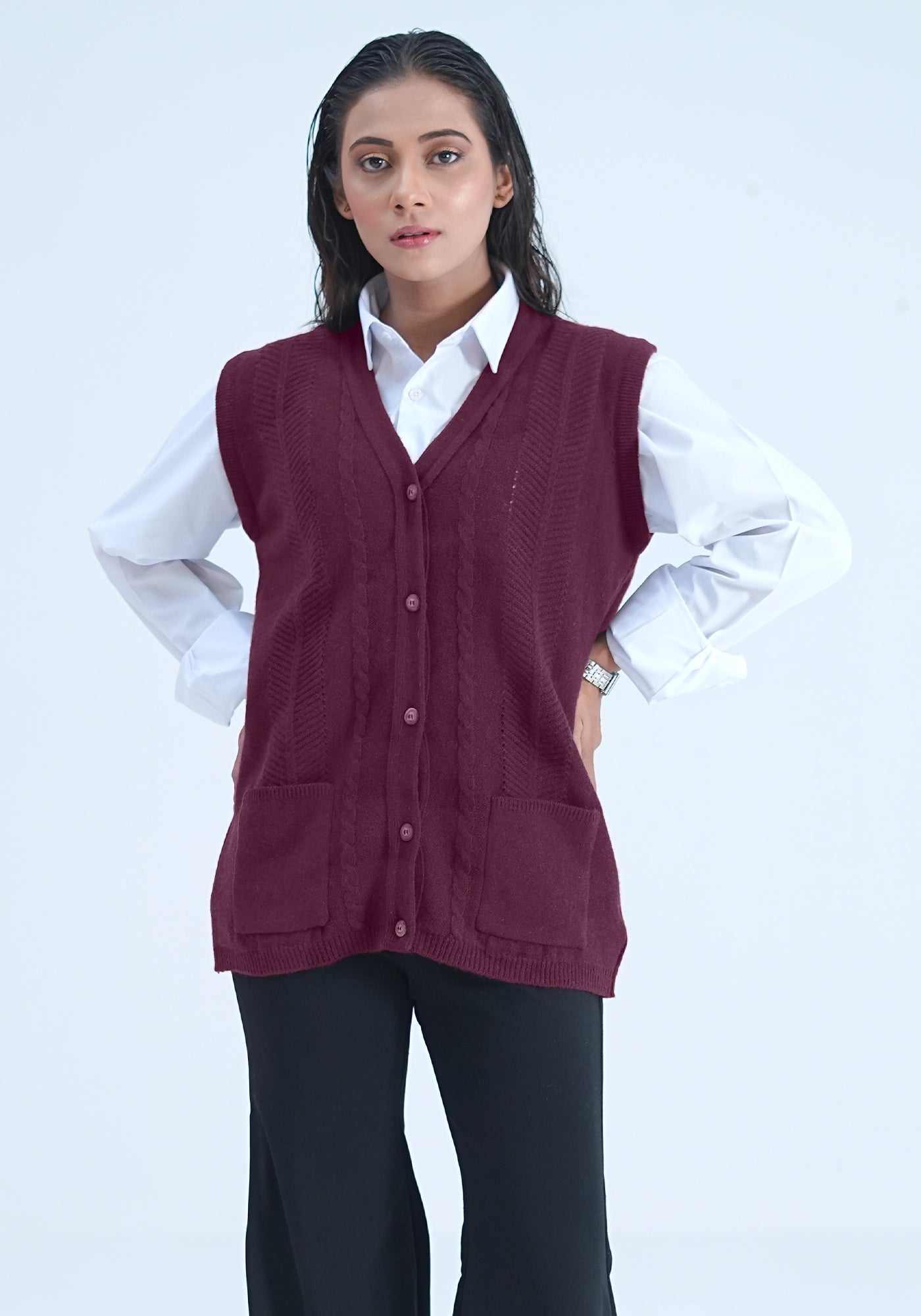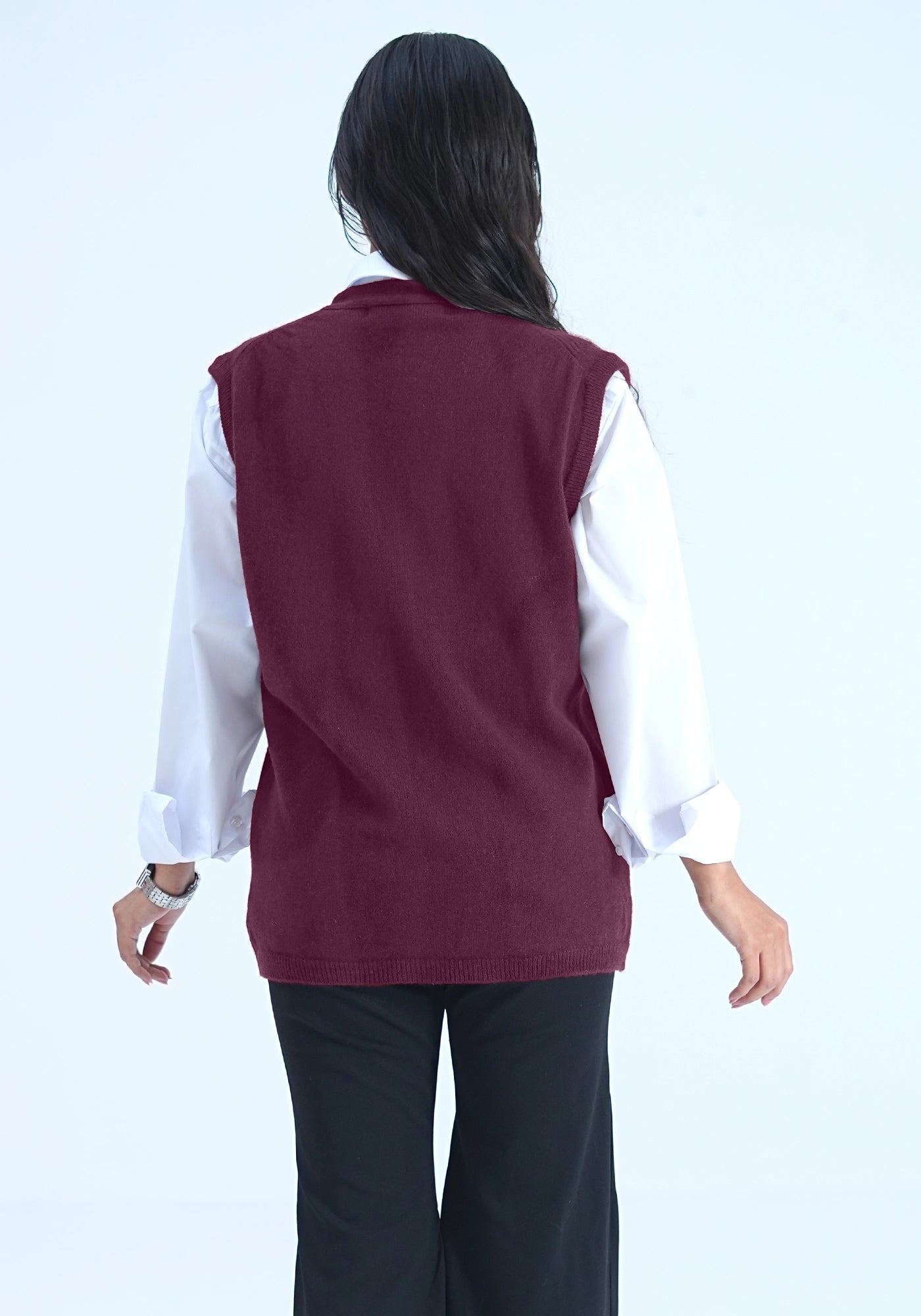 100% Lambswool Sleeve Less Cardigan
