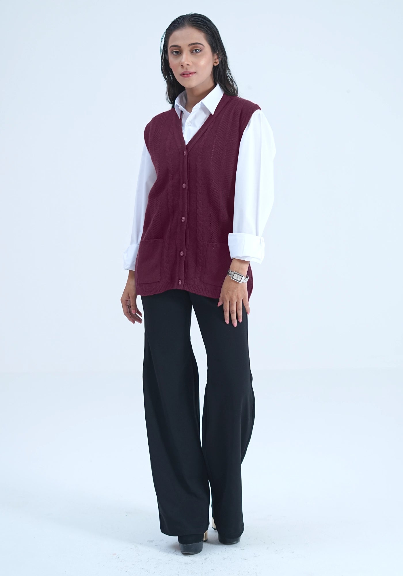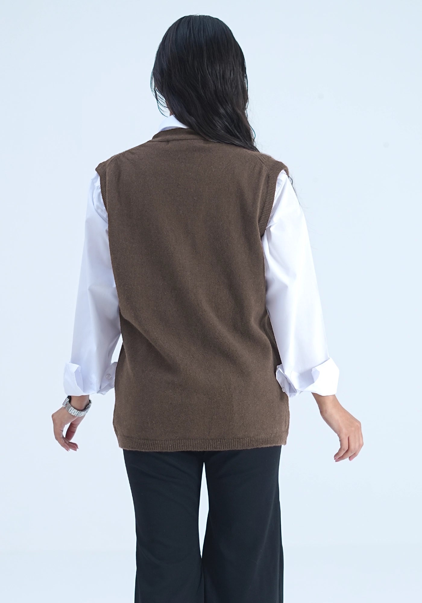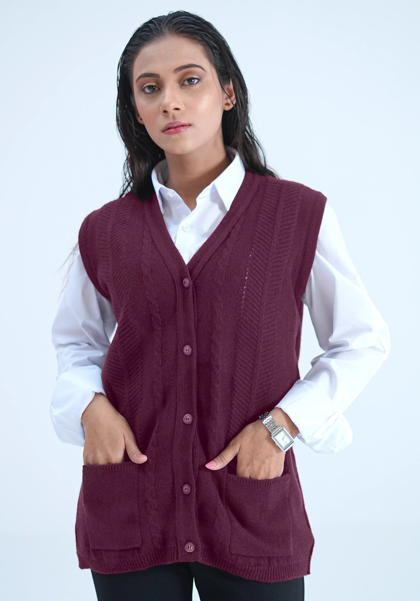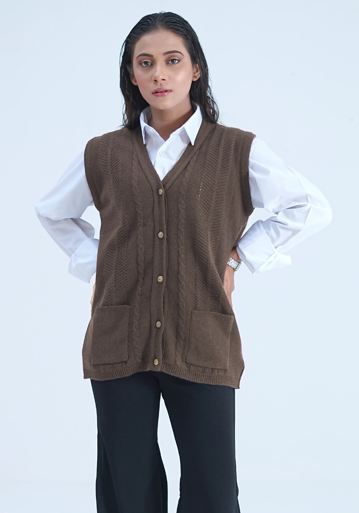 100% Lambswool Sleeve Less Cardigan