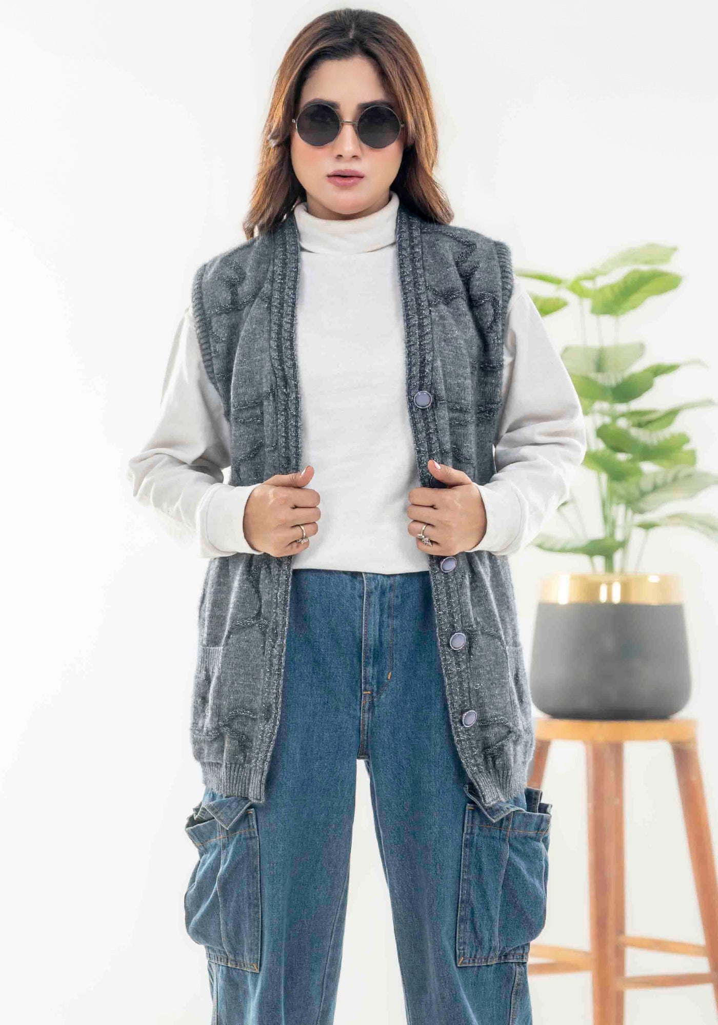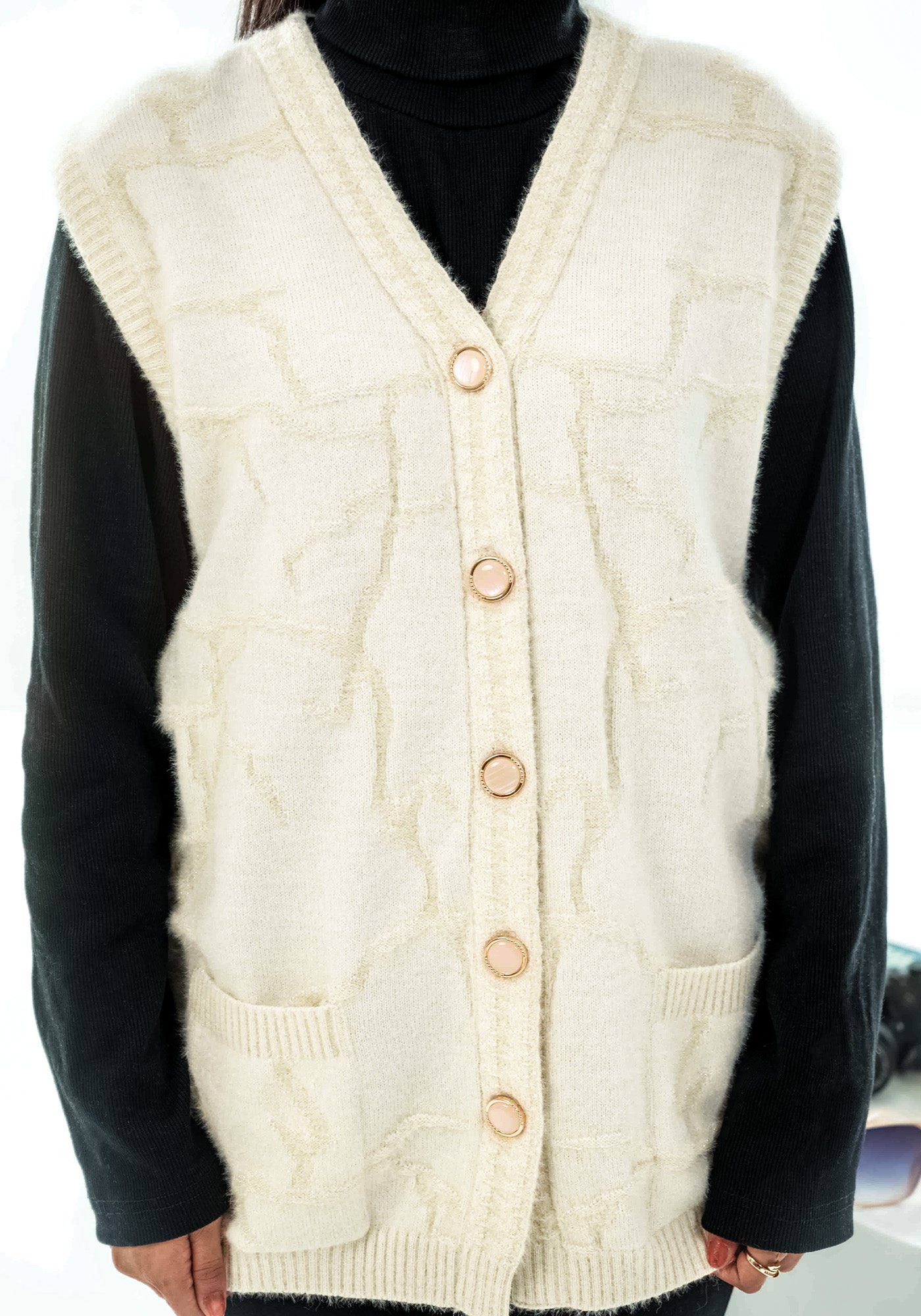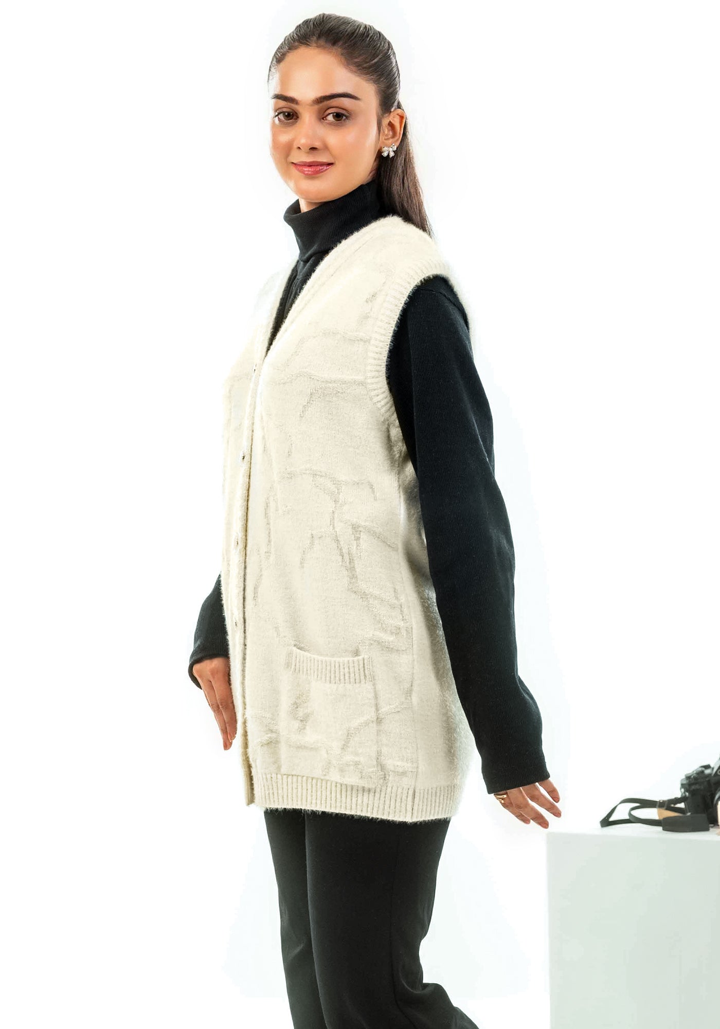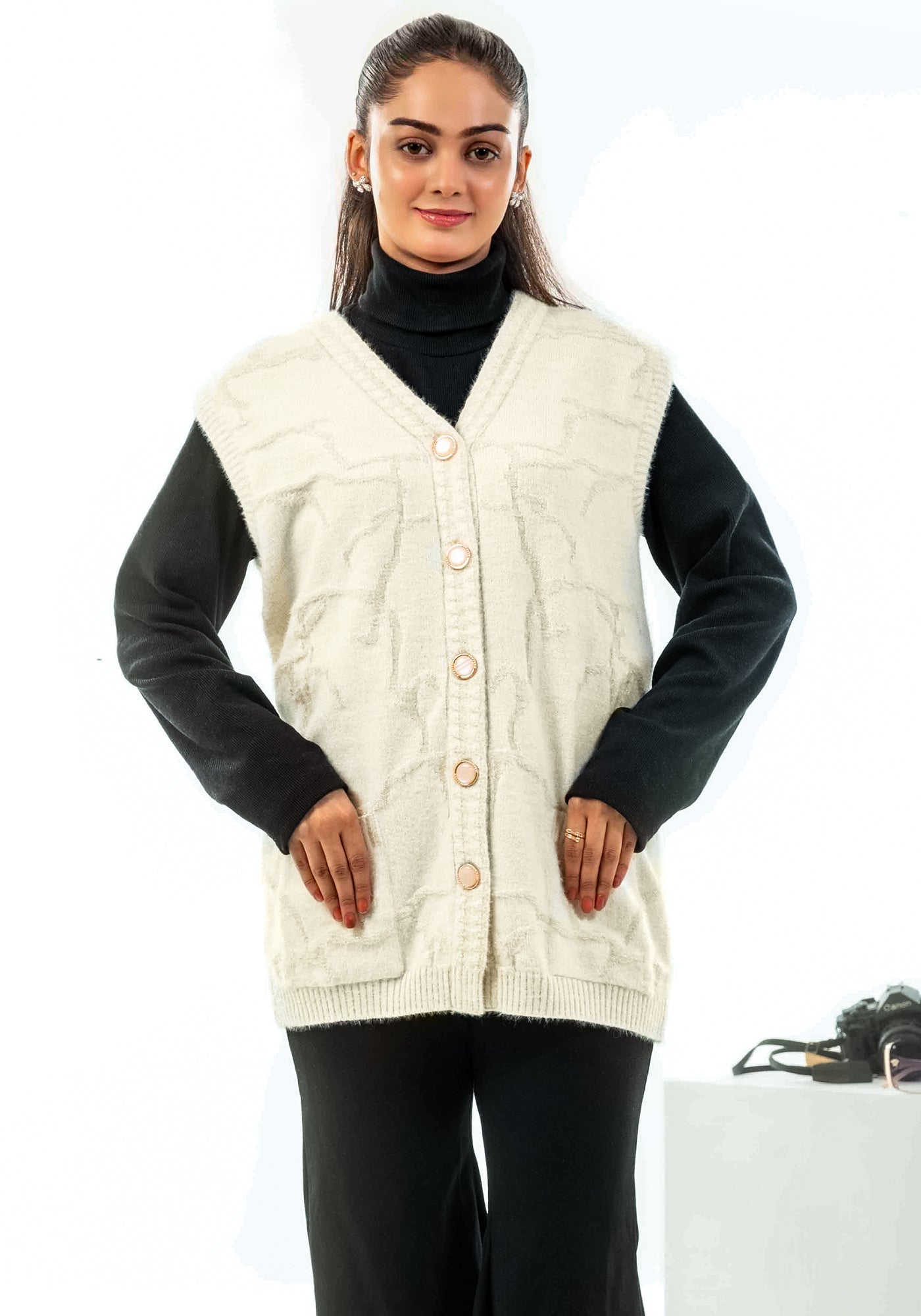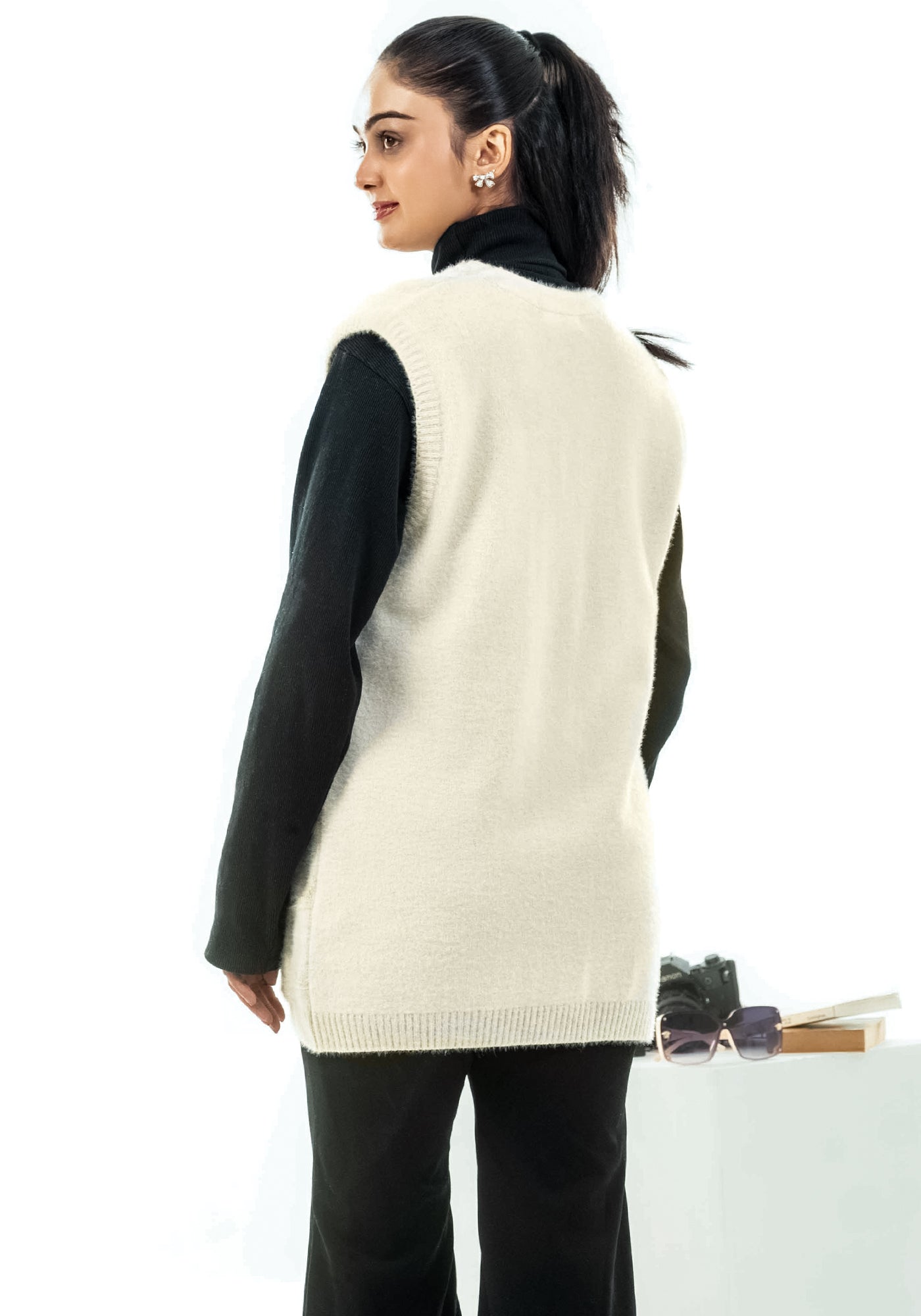Soft Acrylic Wool Off White Sleeveless Cardigan
