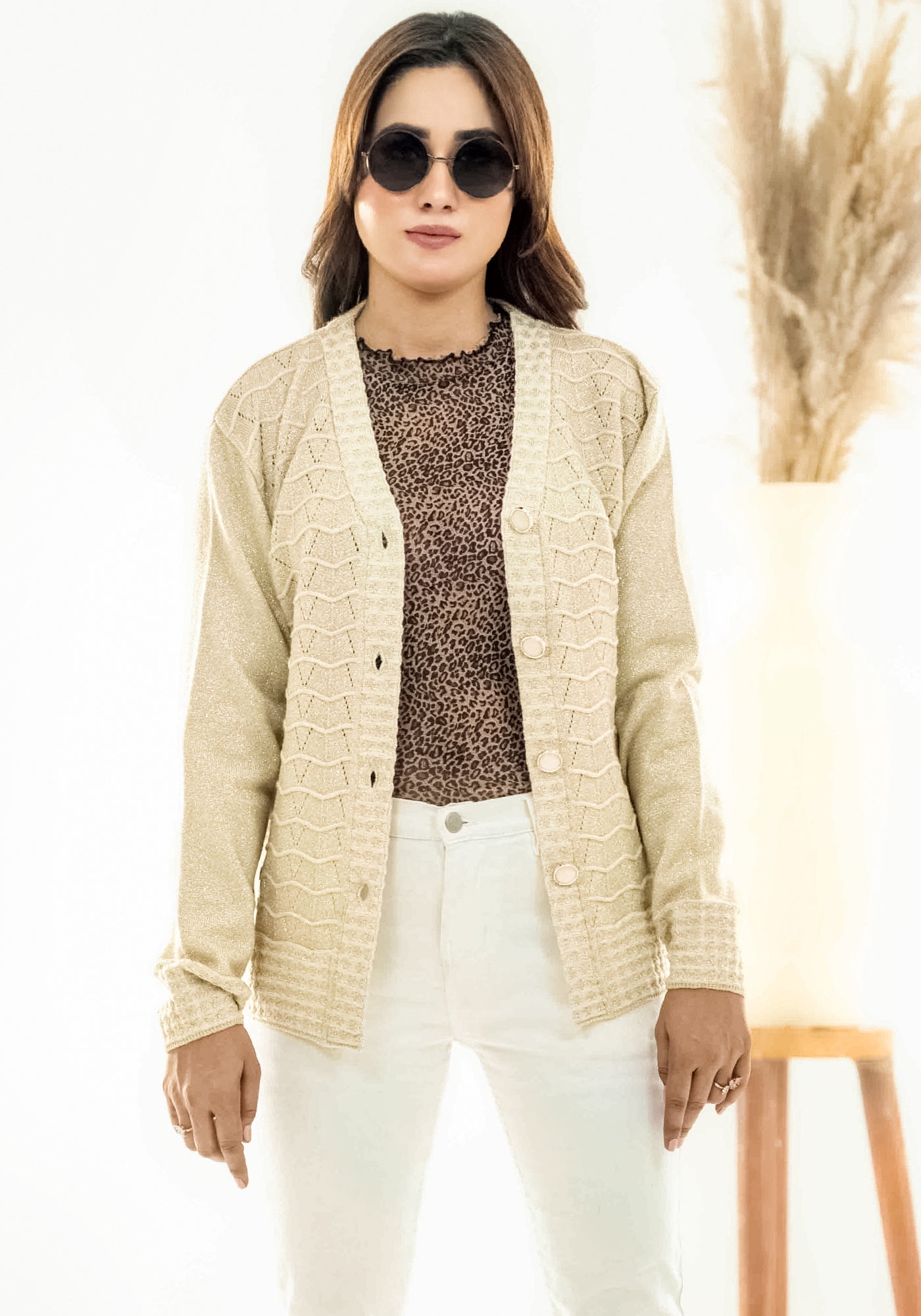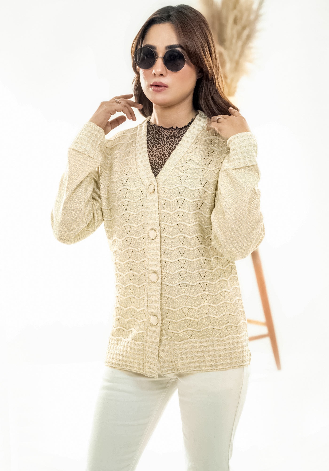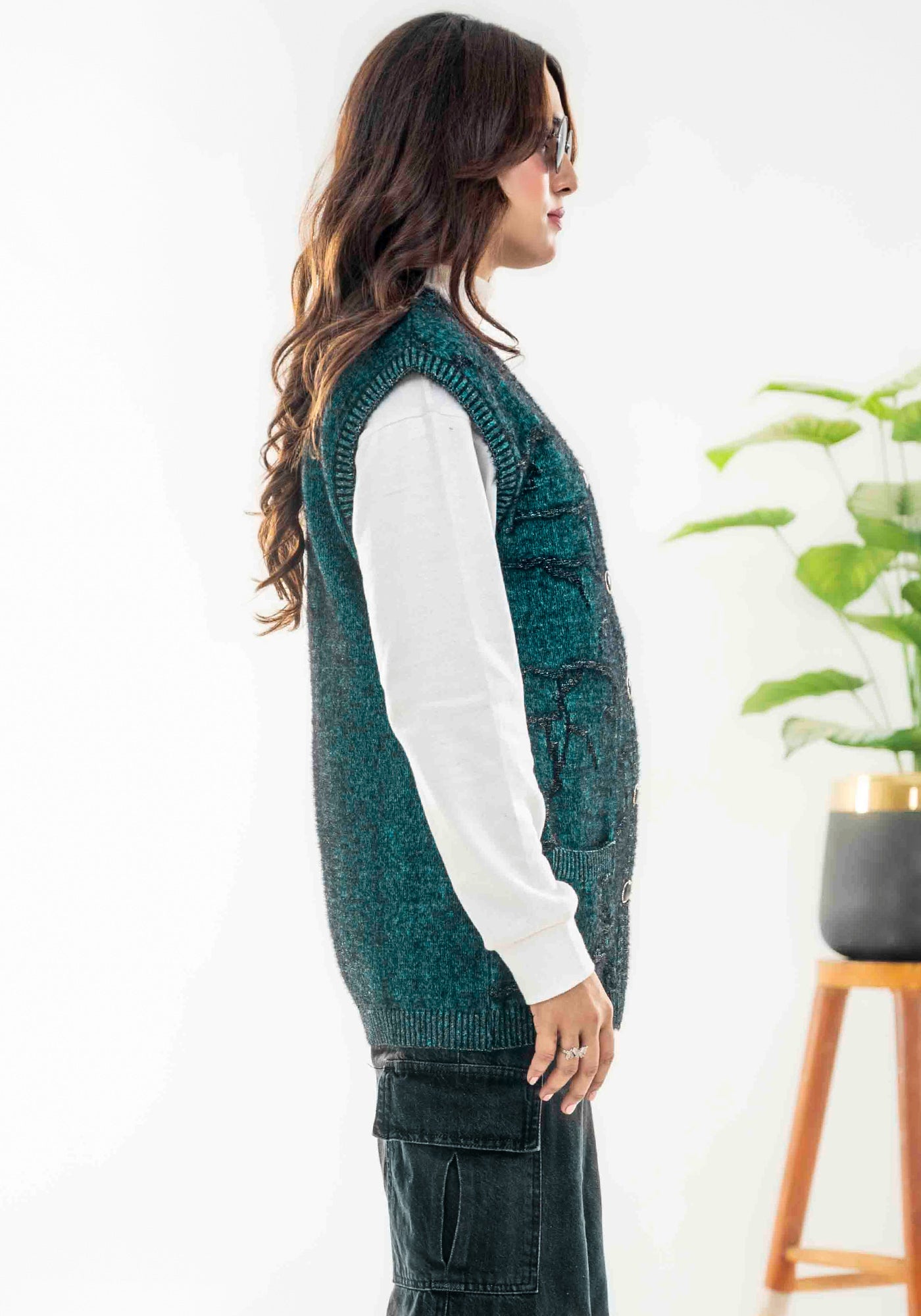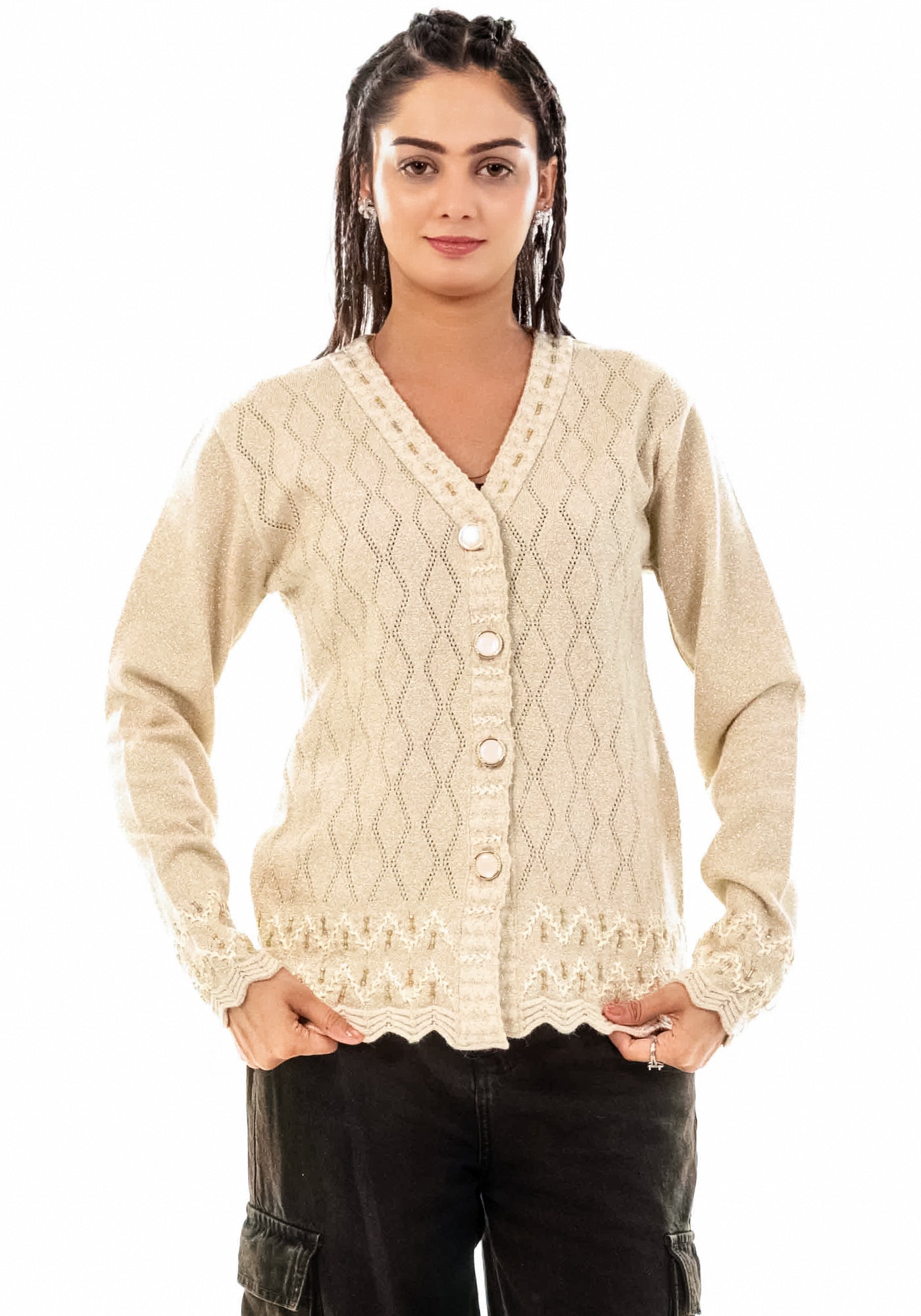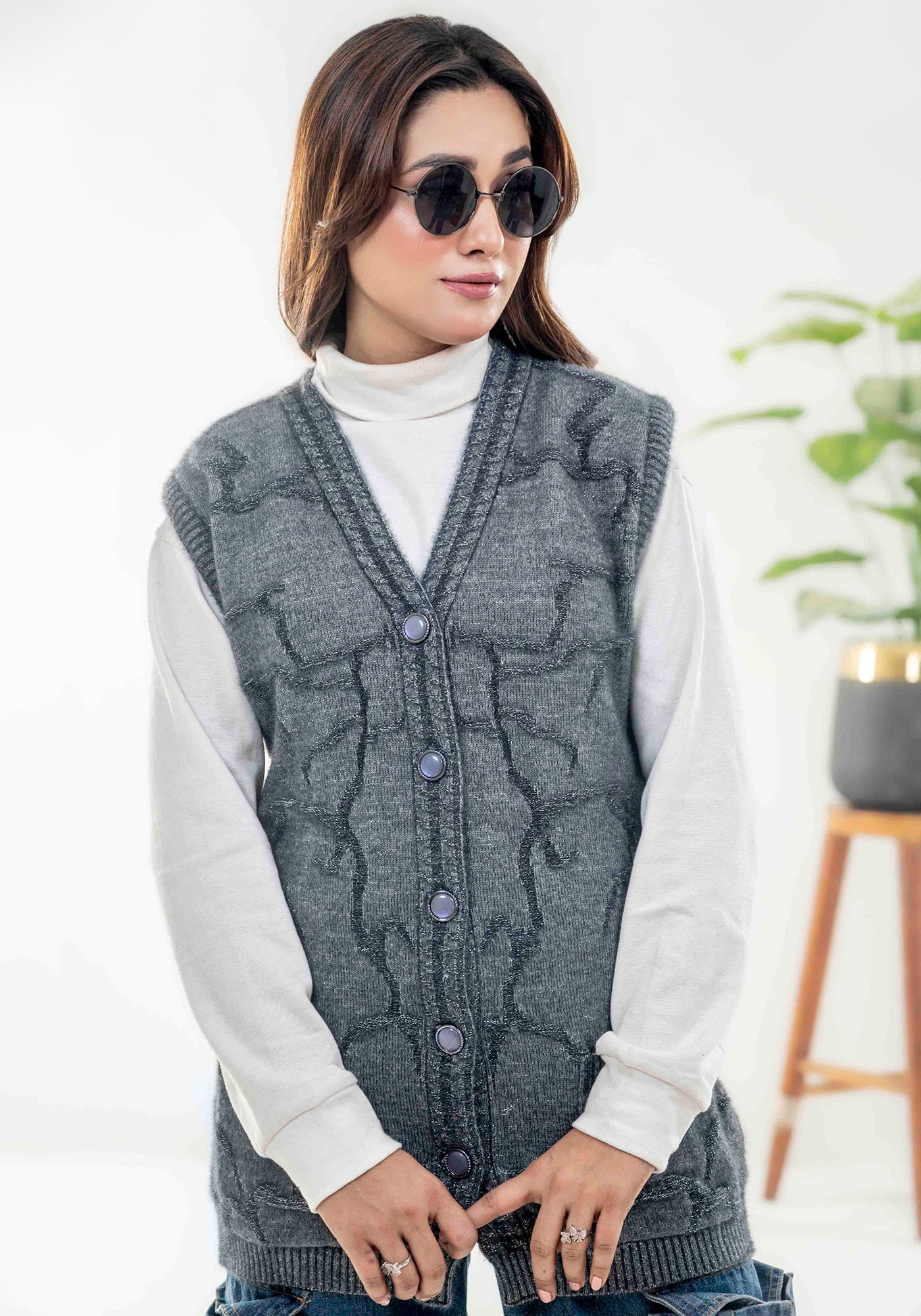 Soft Acrylic Wool Off White Sleeveless Cardigan