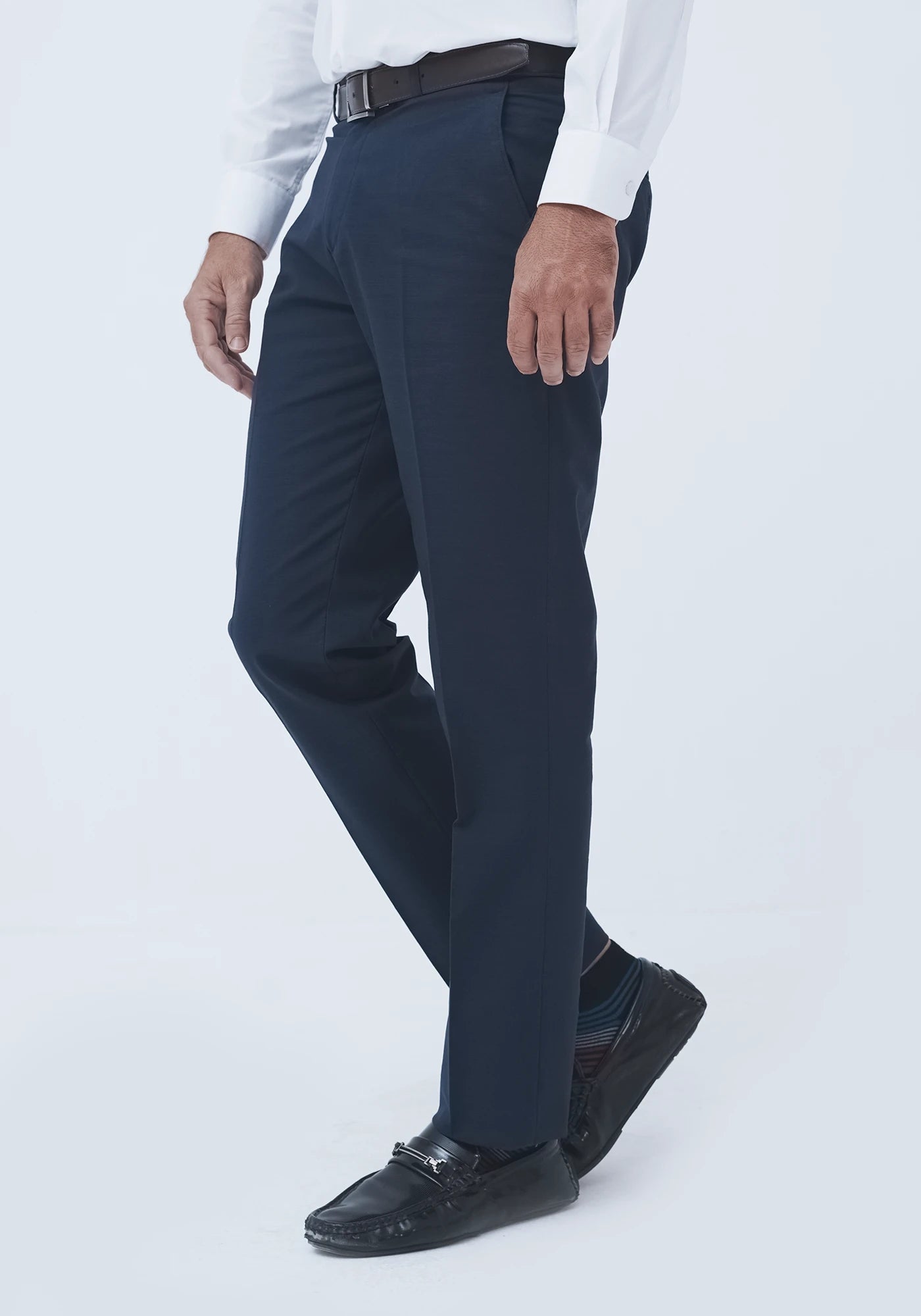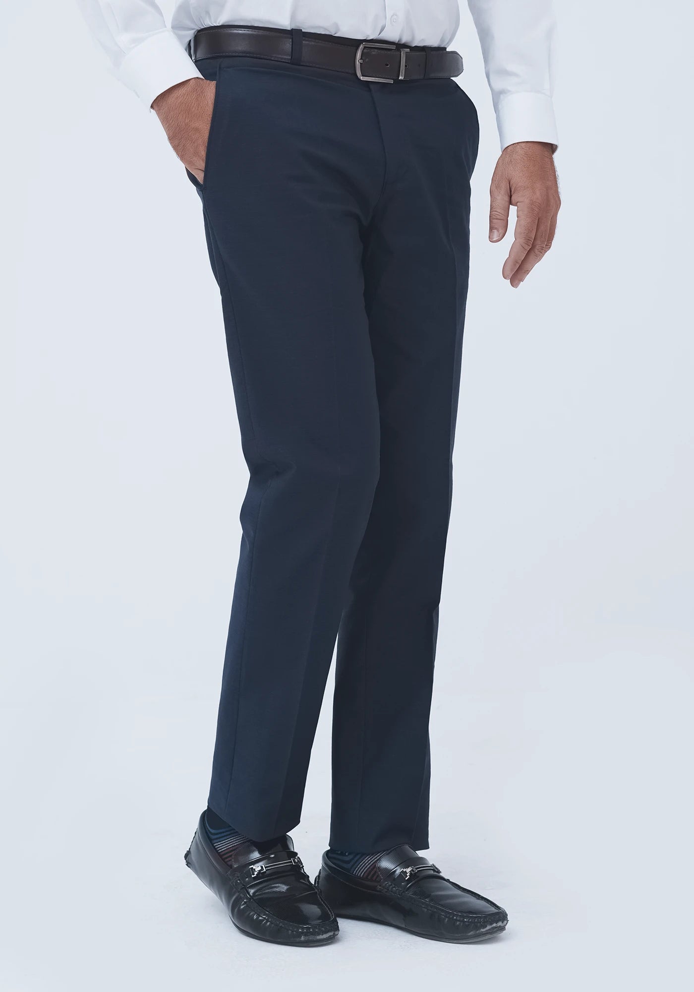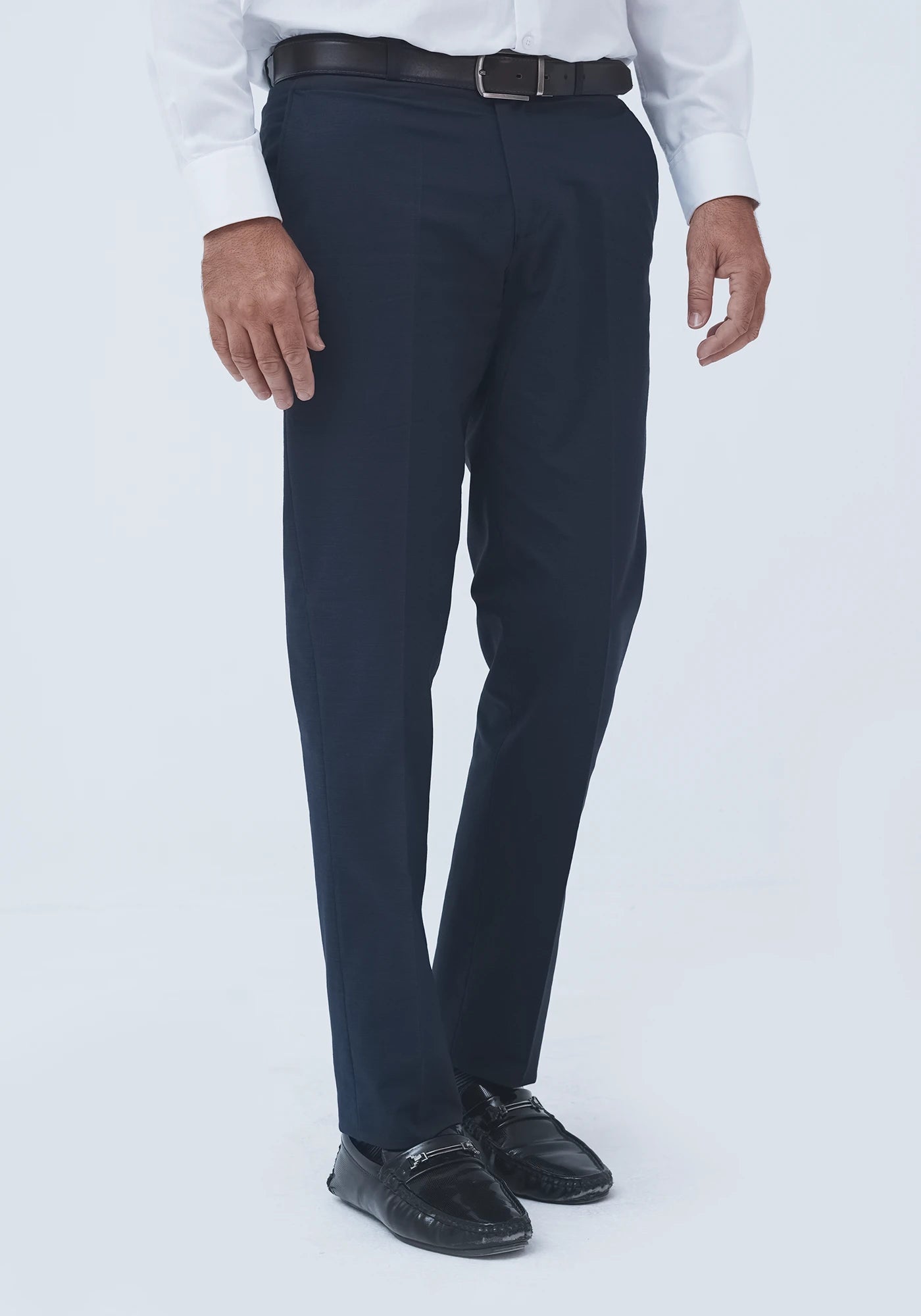 Blended Regular Fit Plain Navy Blue Dress Trouser