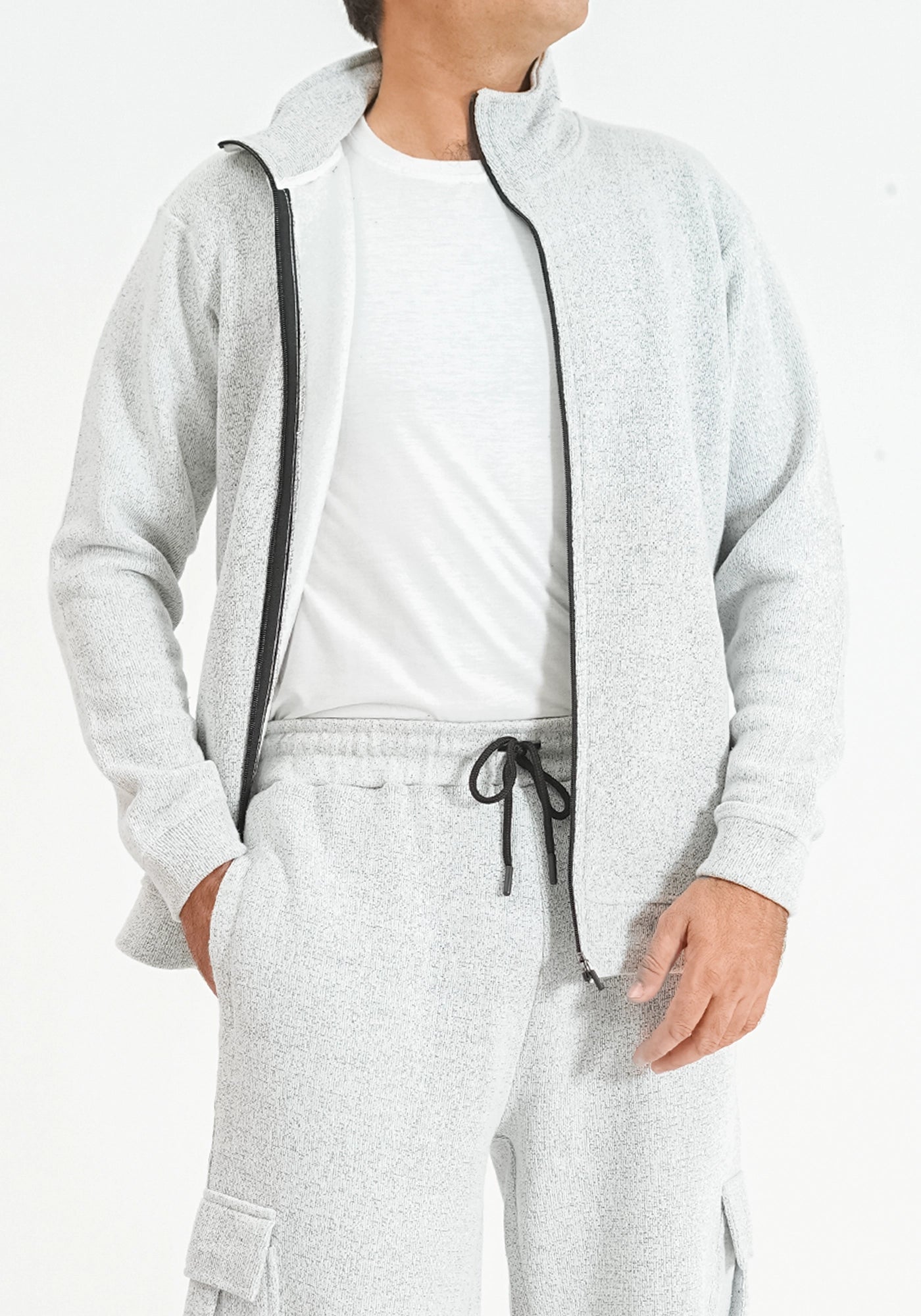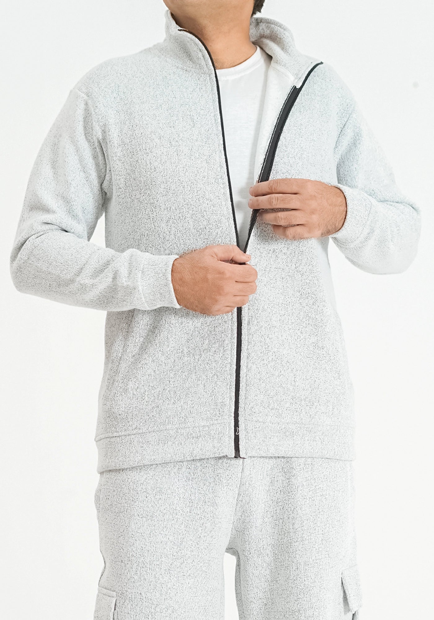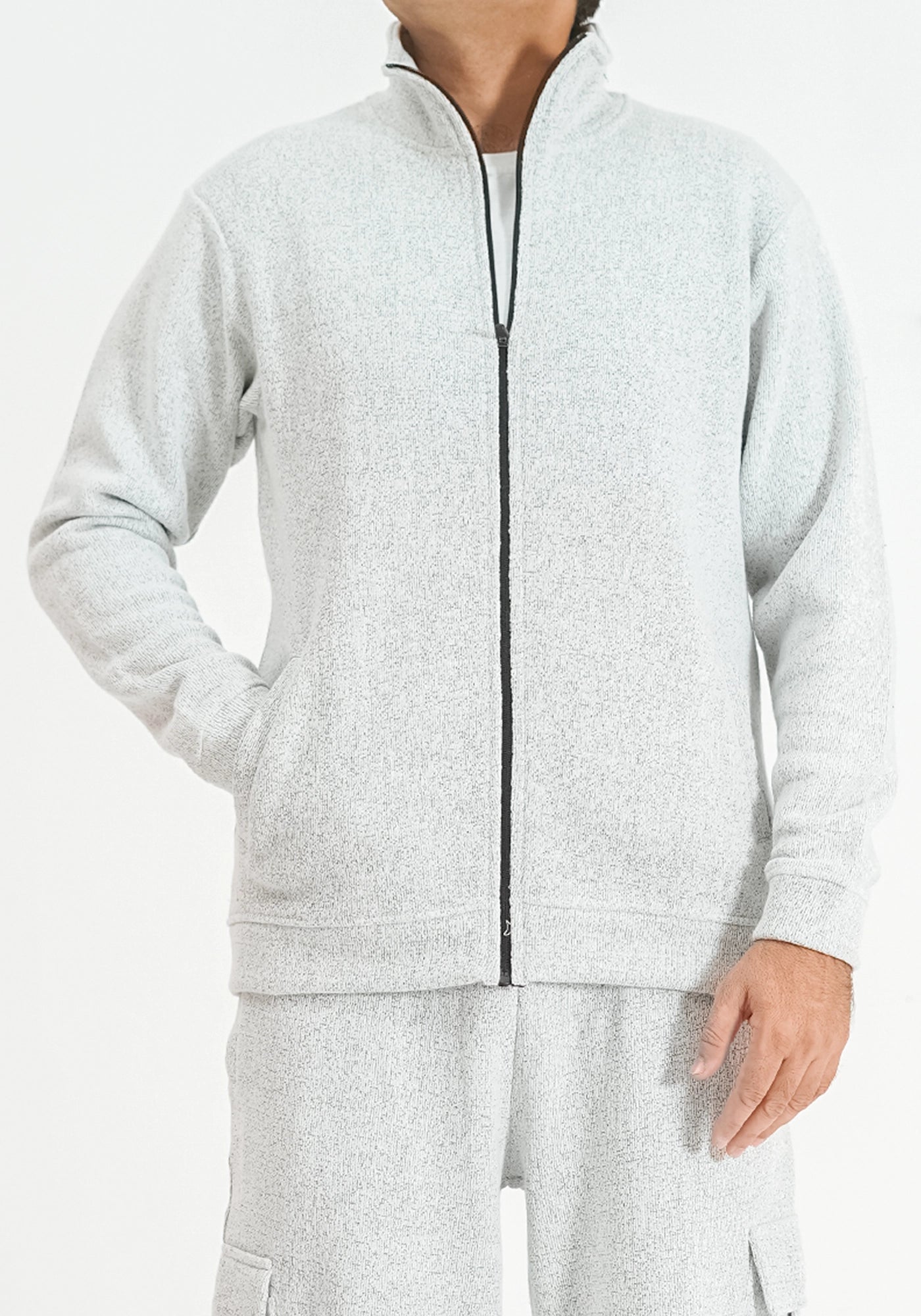 Knitted Zip-Up Lt Gray Jacket