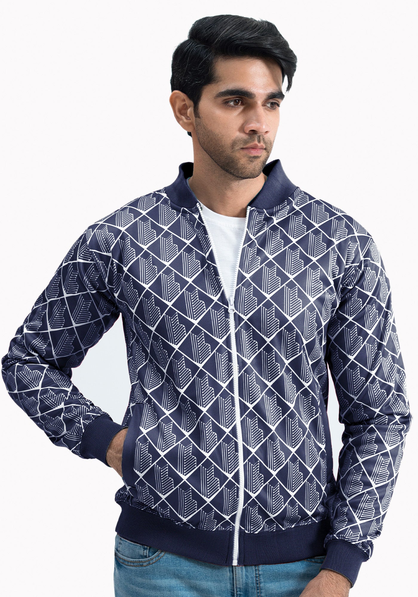 Sublimation Print Navy Blue Men Jacket