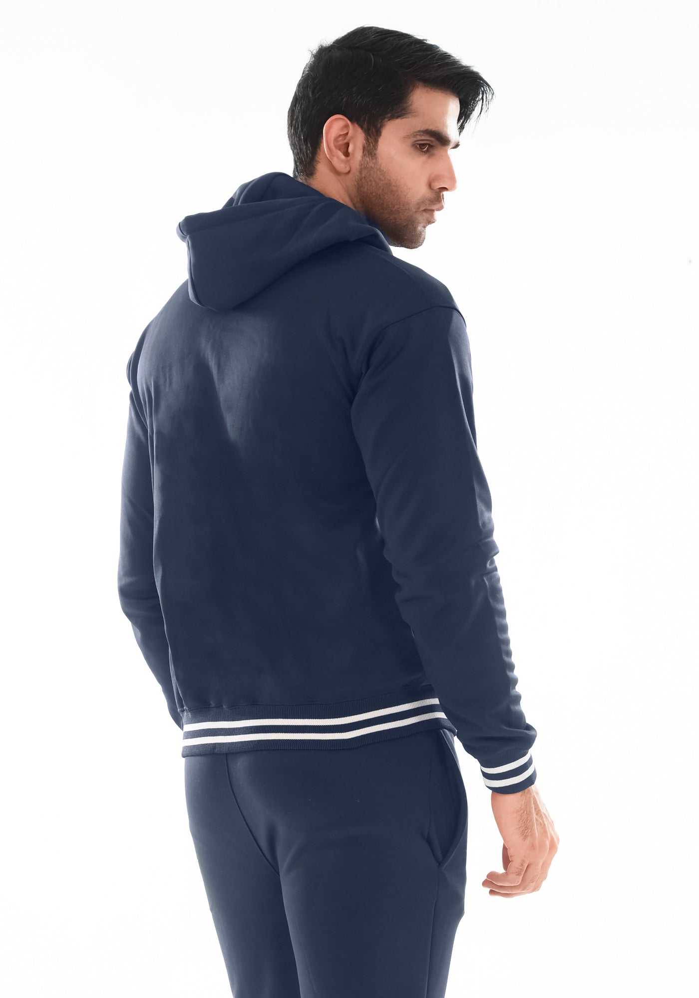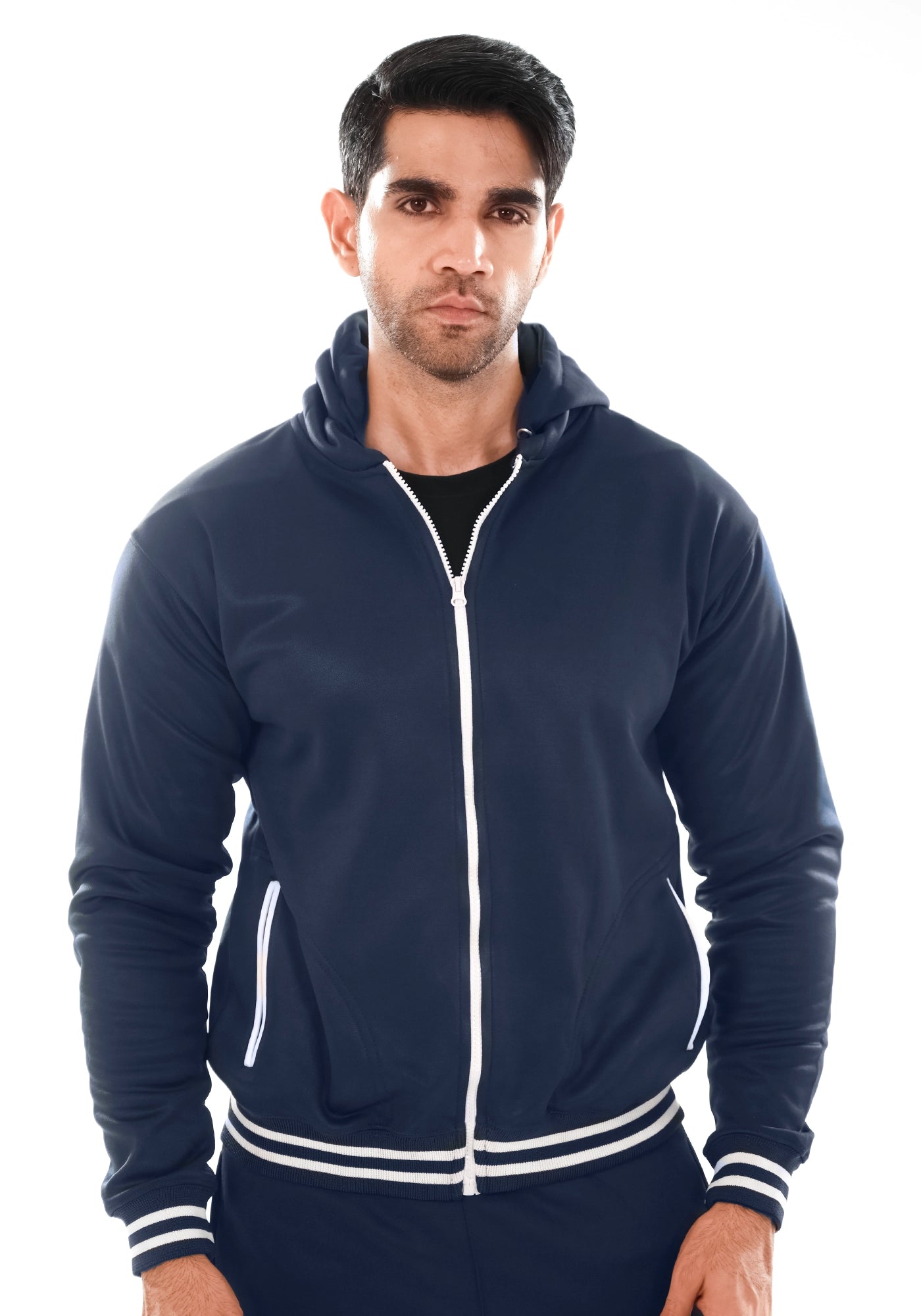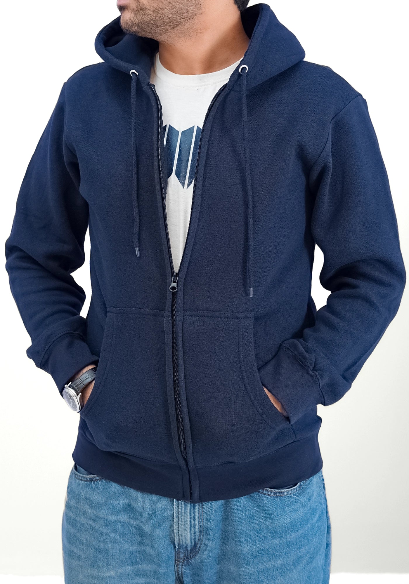 Navy Blue Fleece Jacket With Hoodie