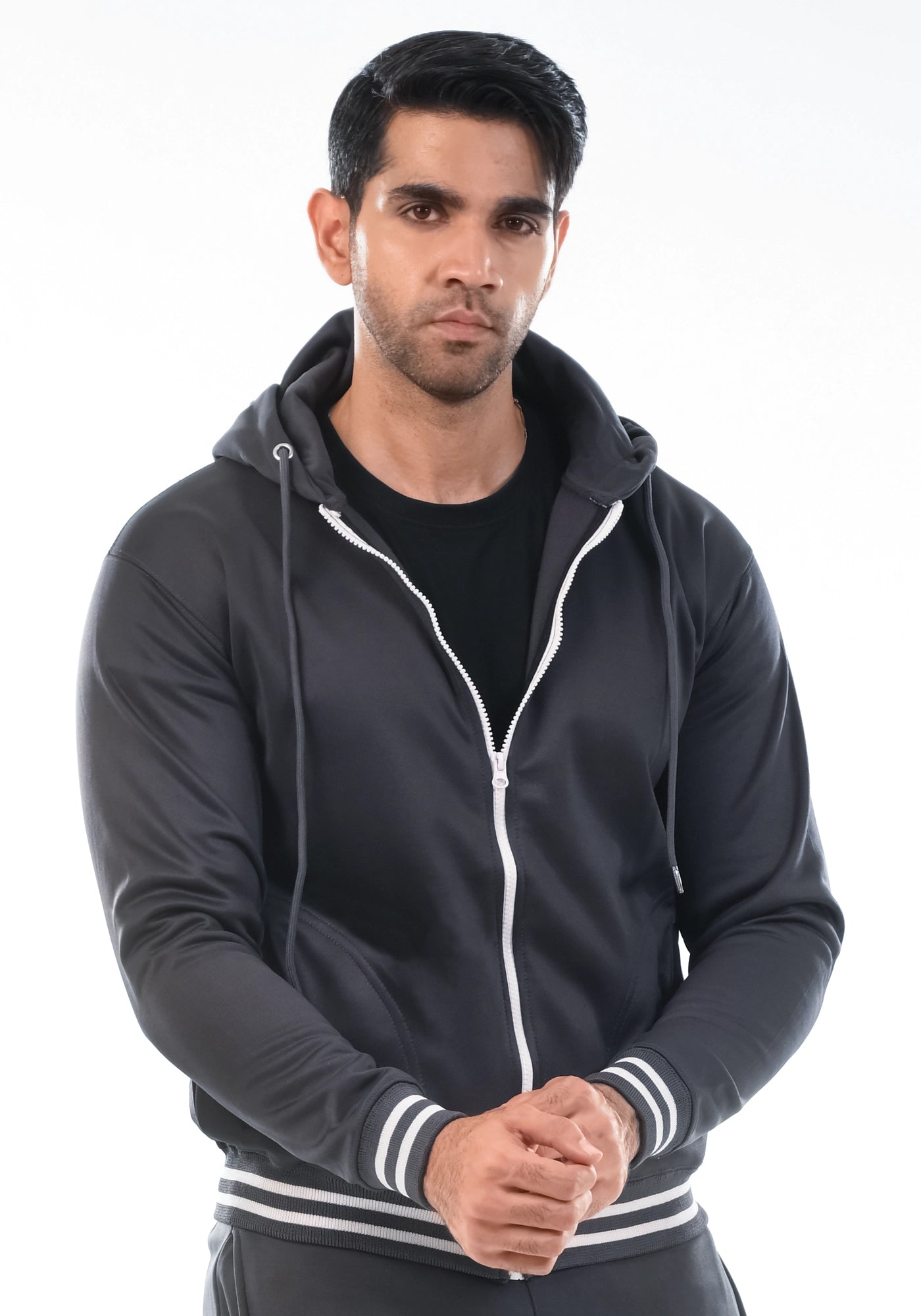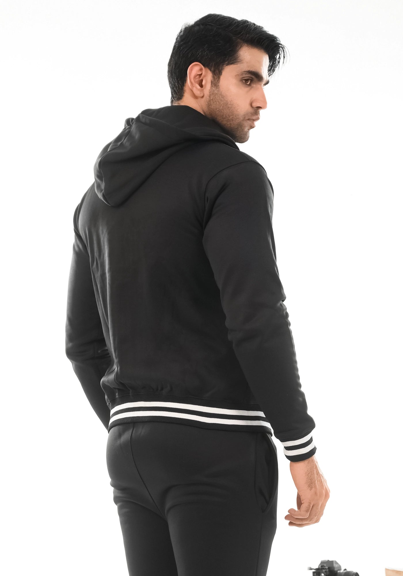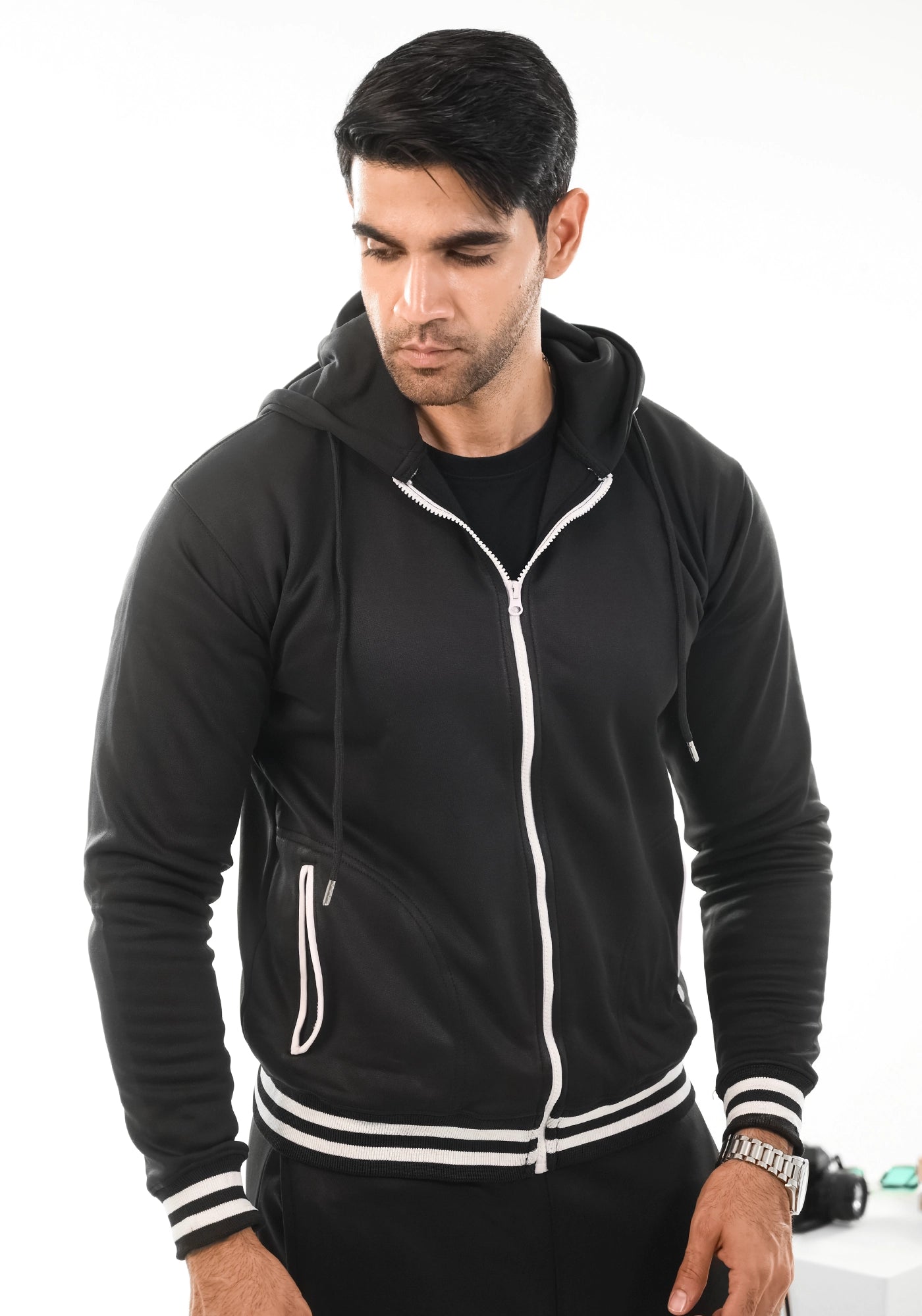 Black Fleece Jacket With Hoodie