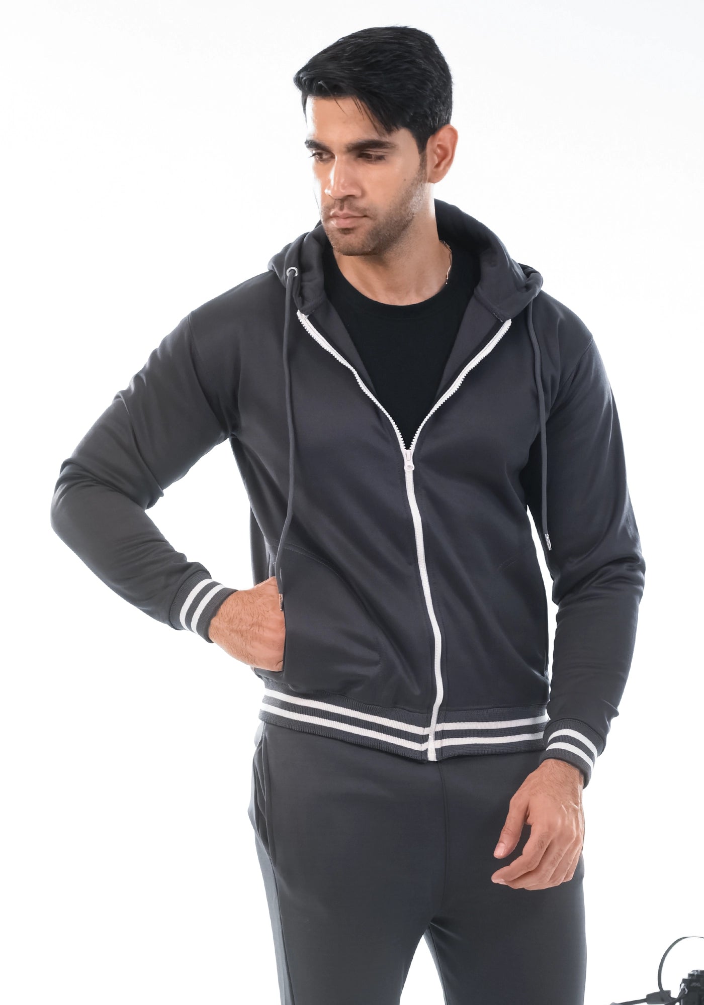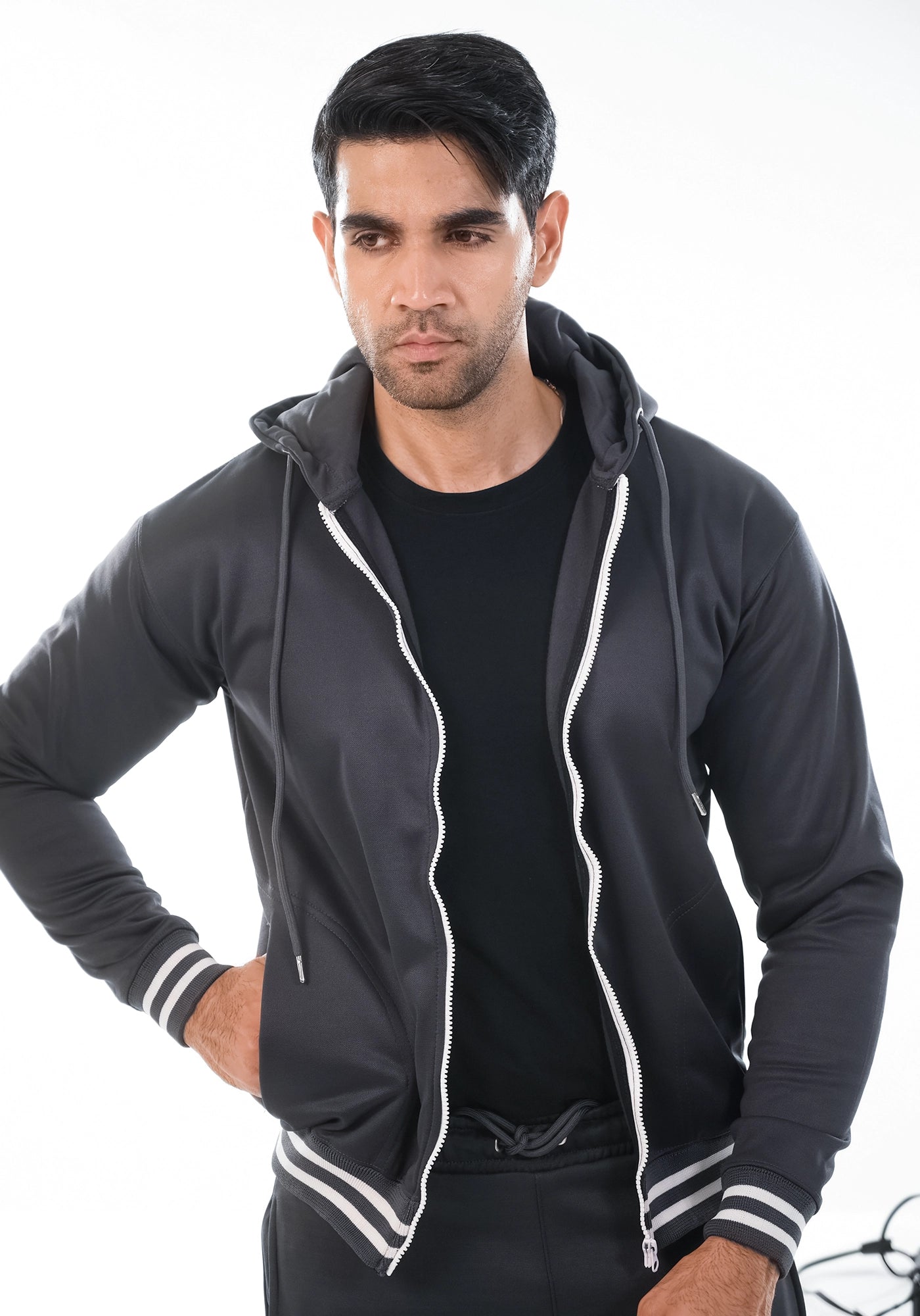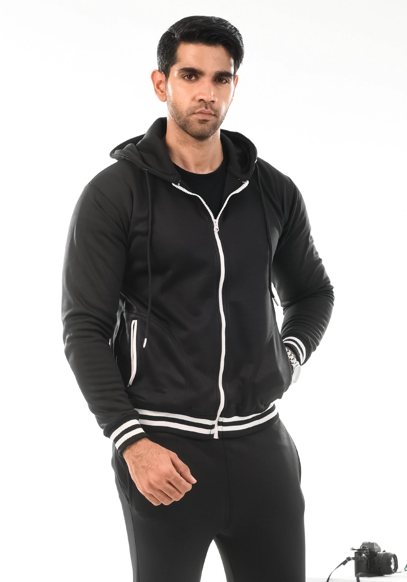 Black Fleece Jacket With Hoodie