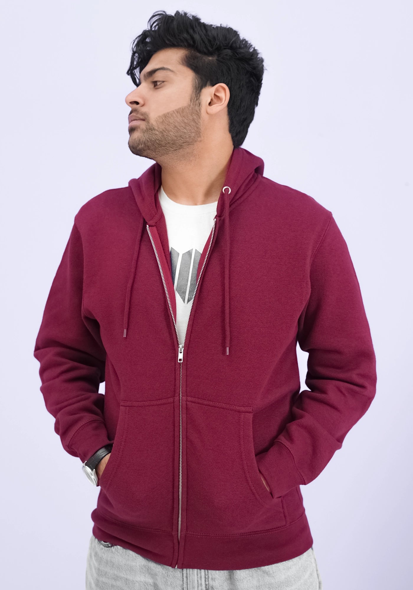 Maroon Fleece Jacket With Hoodie
