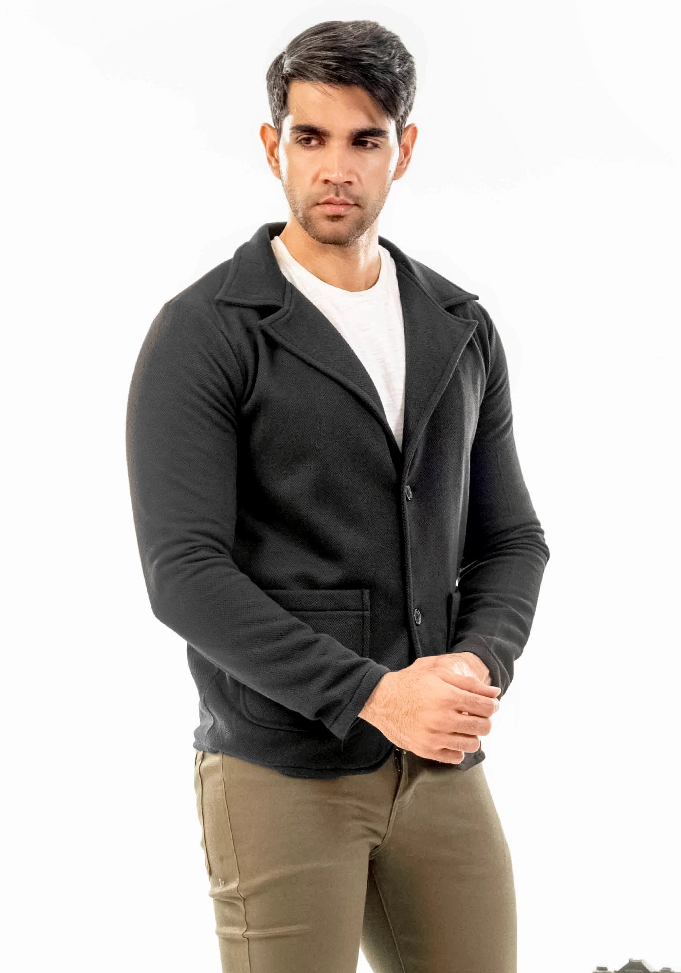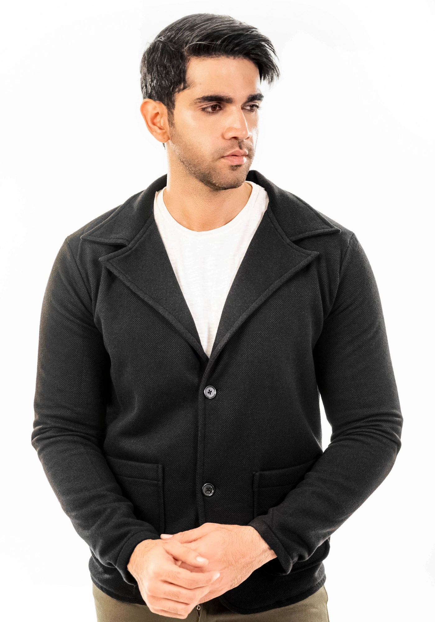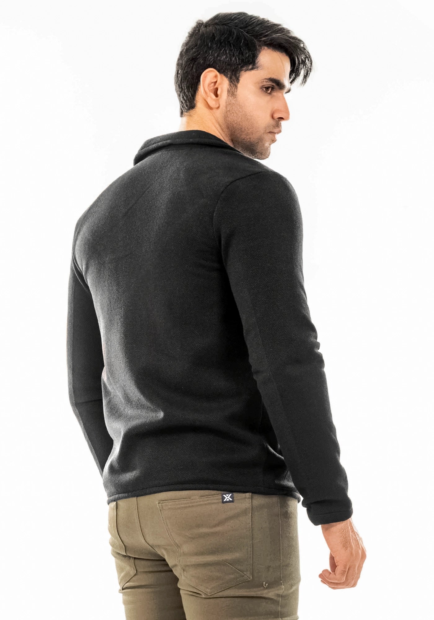 Pique Fleece Casual Black Coat
