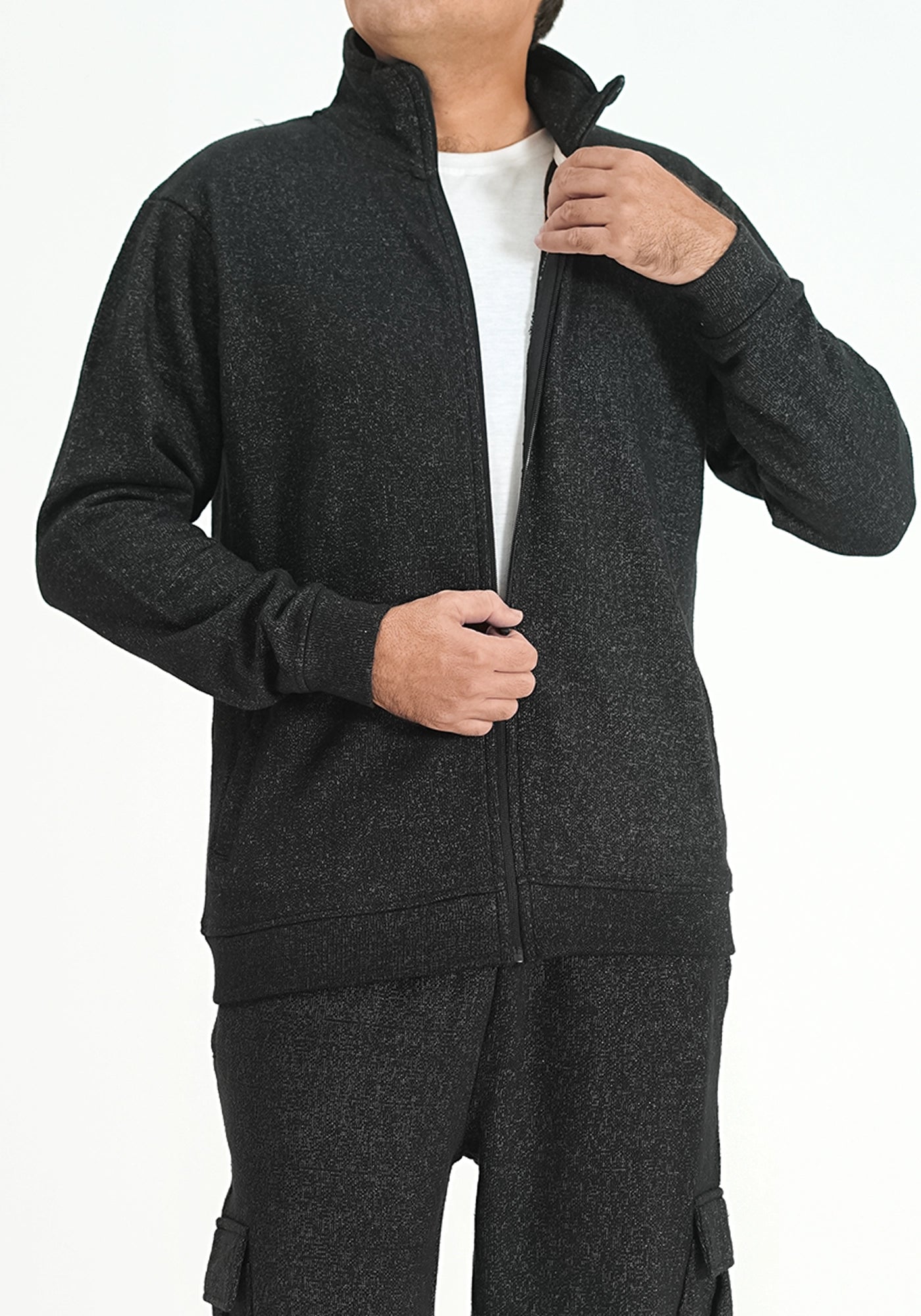 Knitted Zip-Up Charcoal Jacket