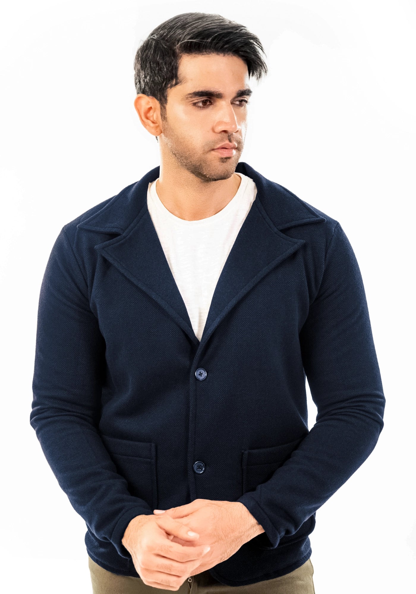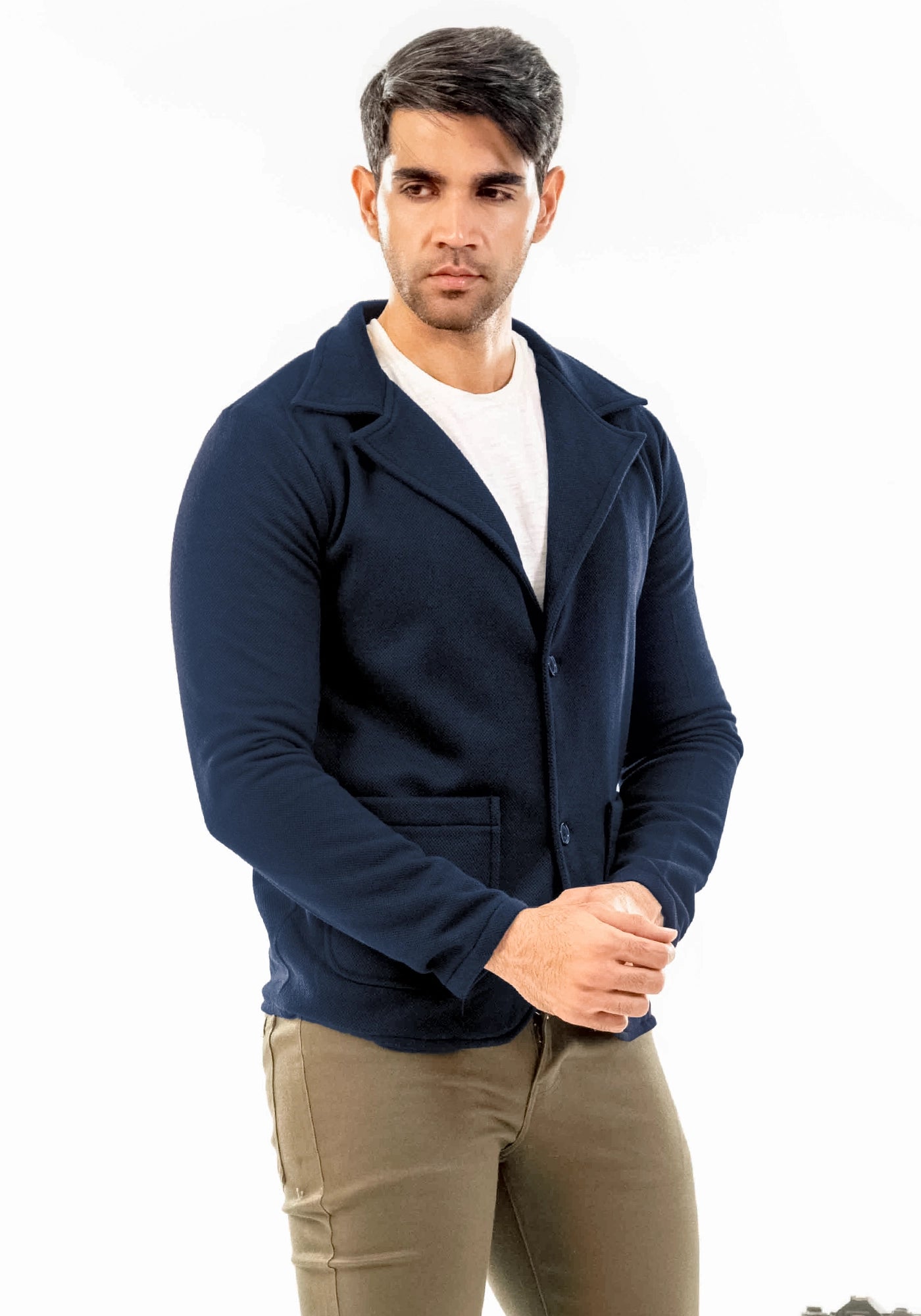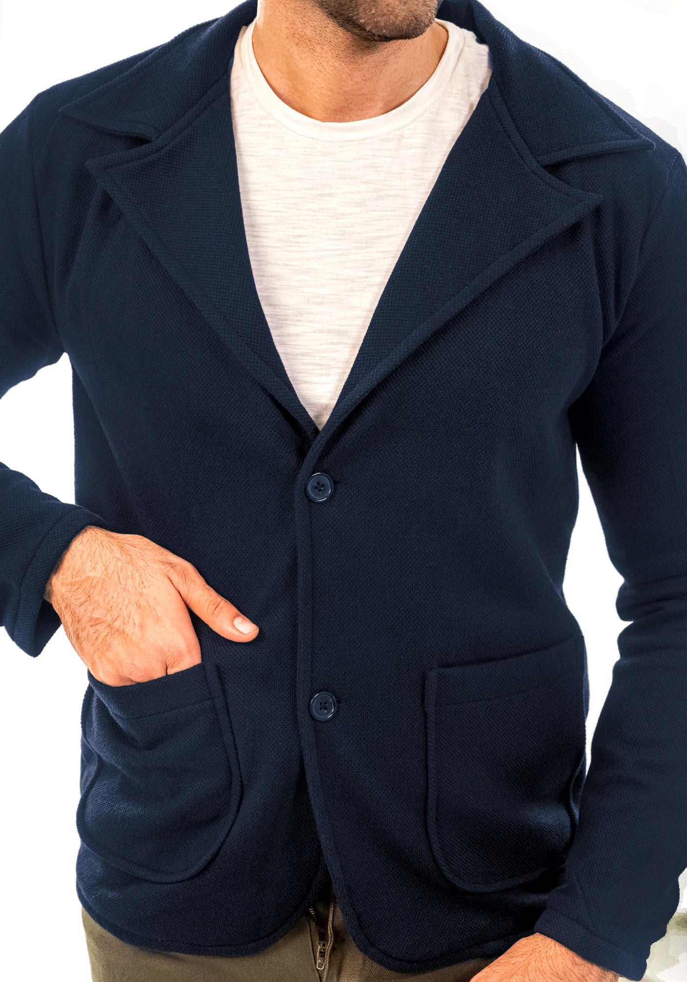 Pique Fleece Casual Navy Coat