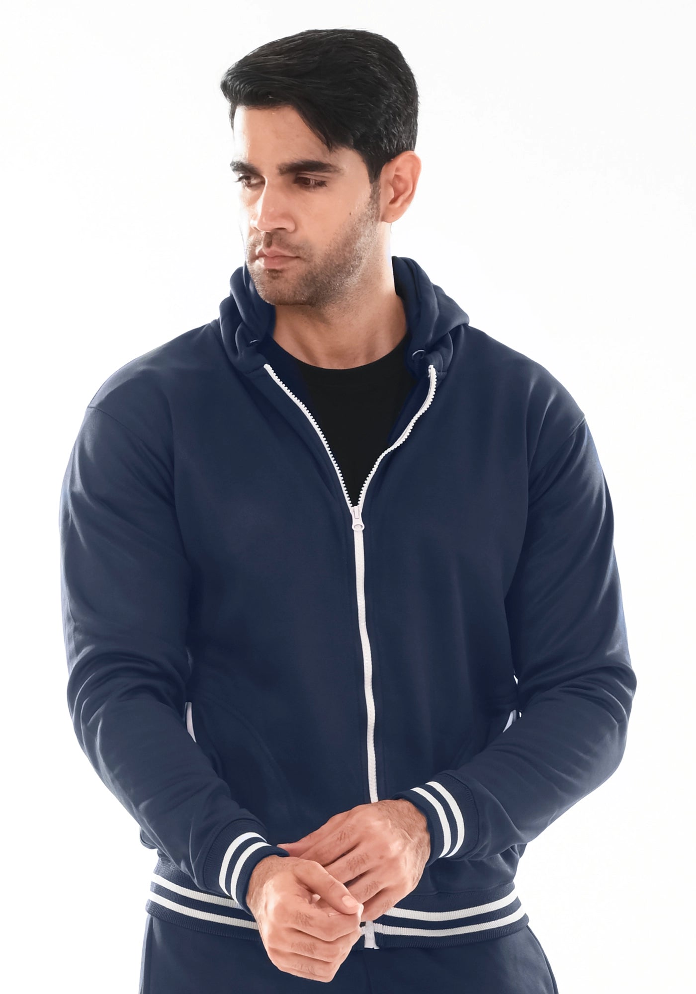 Fleece Jacket With Hoodie Navy