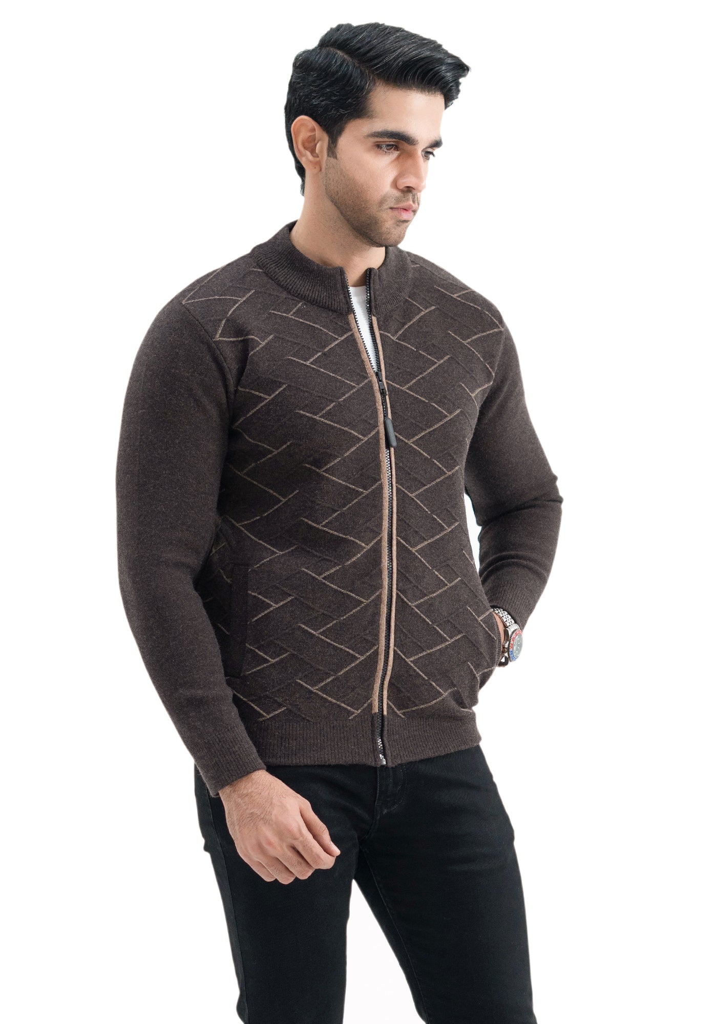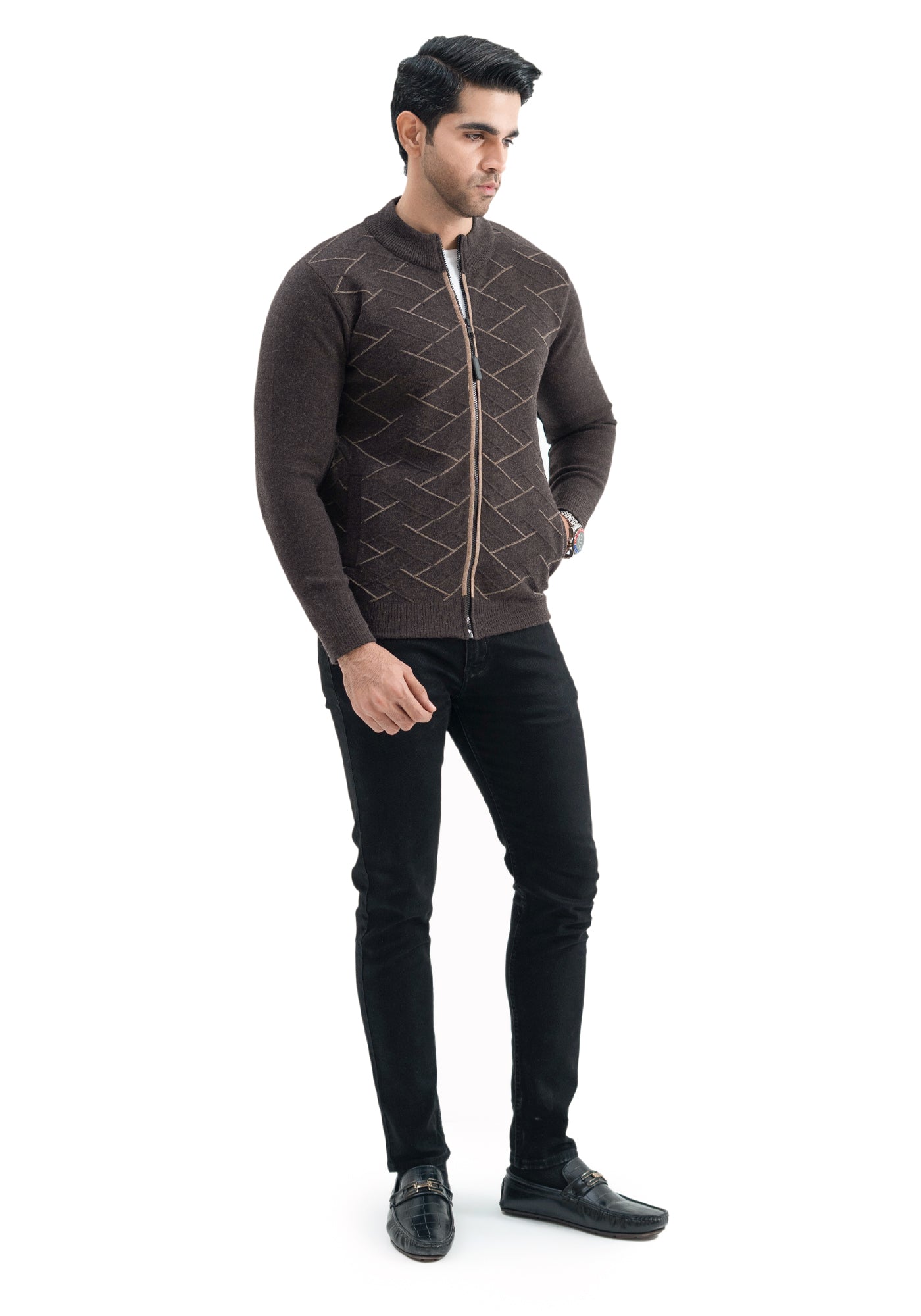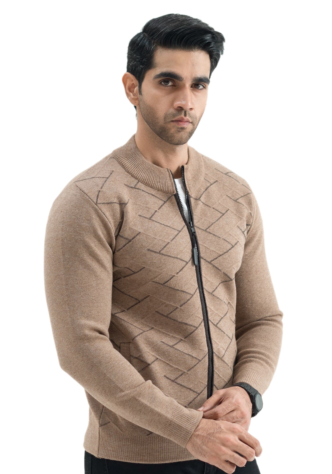 Soft Acrylic Wool Brown Zipper Sweater