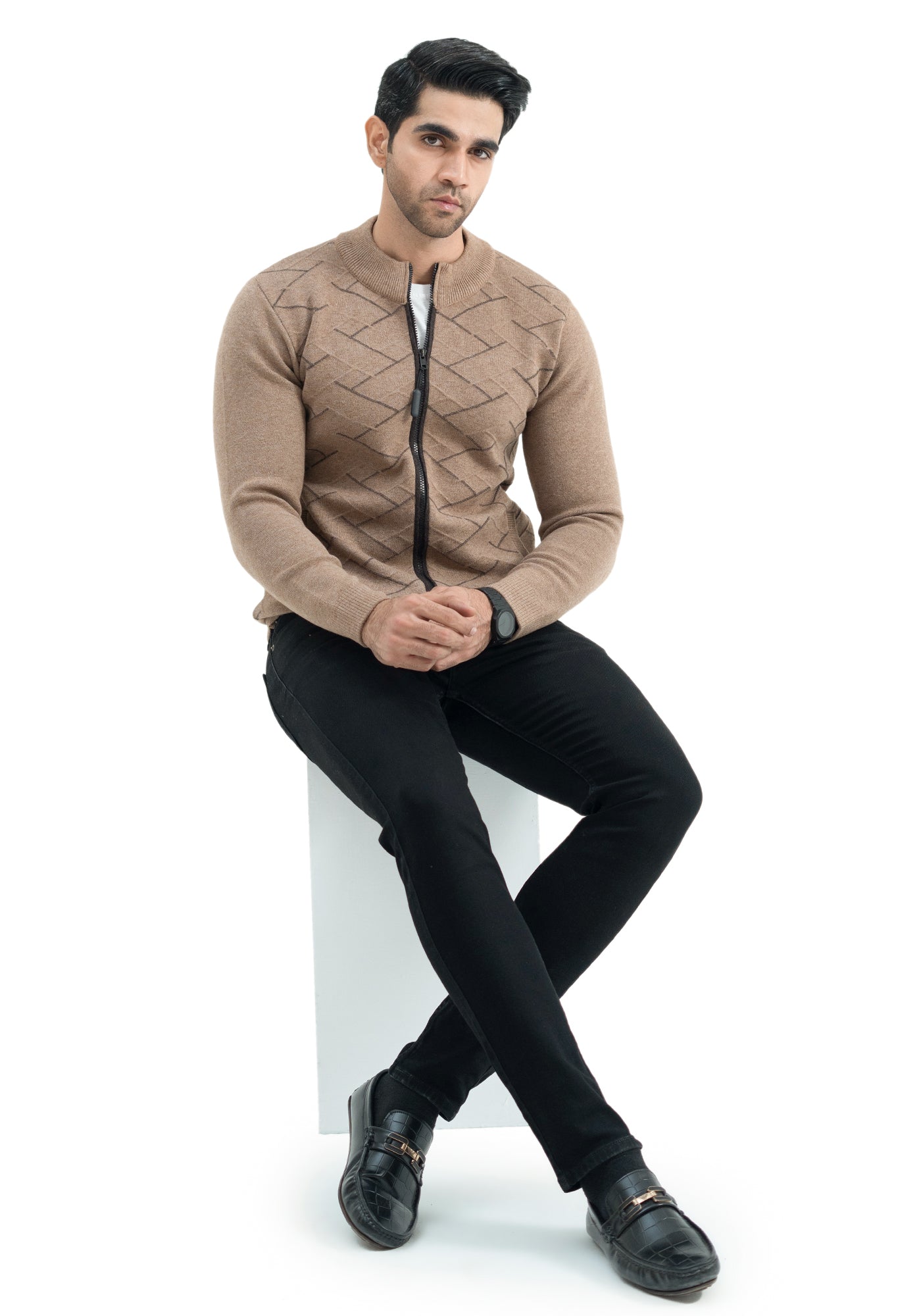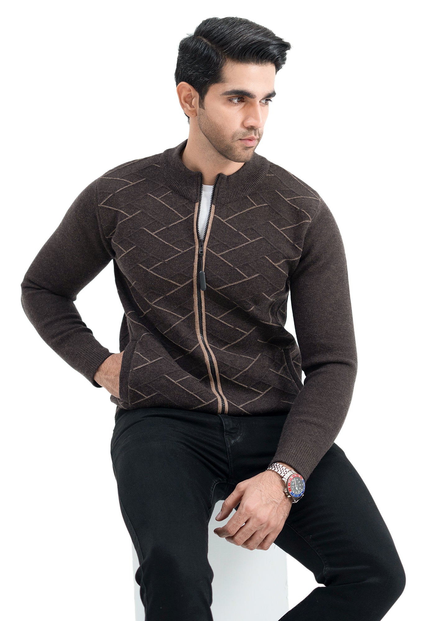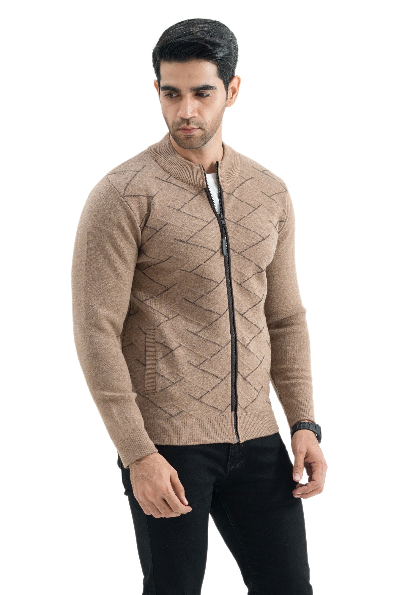Soft Acrylic Wool Brown Zipper Sweater