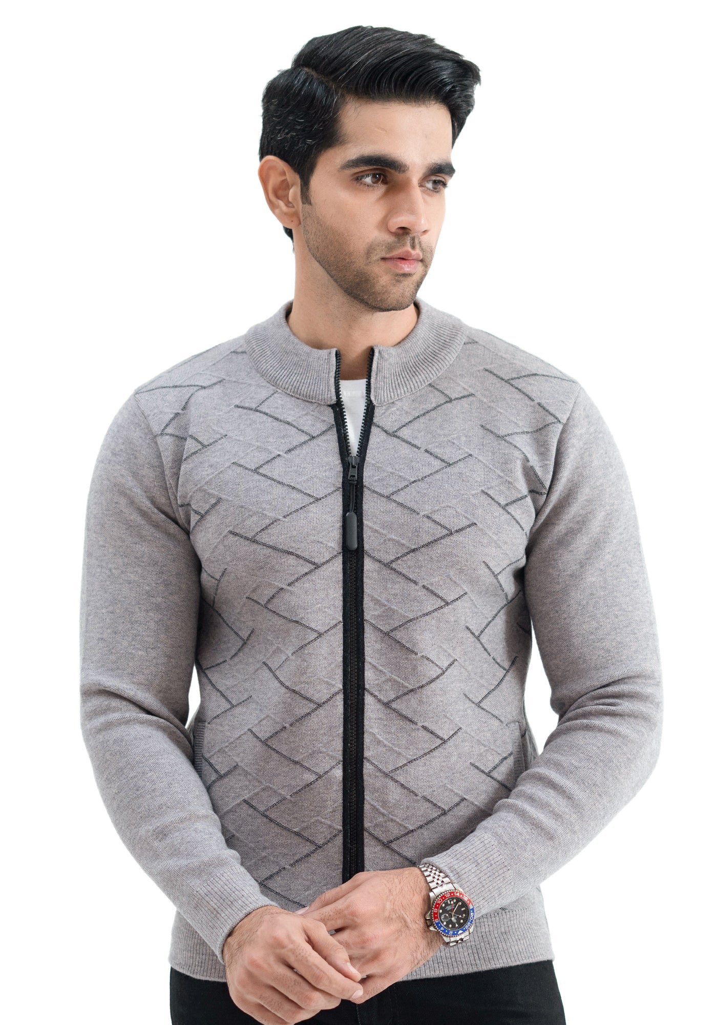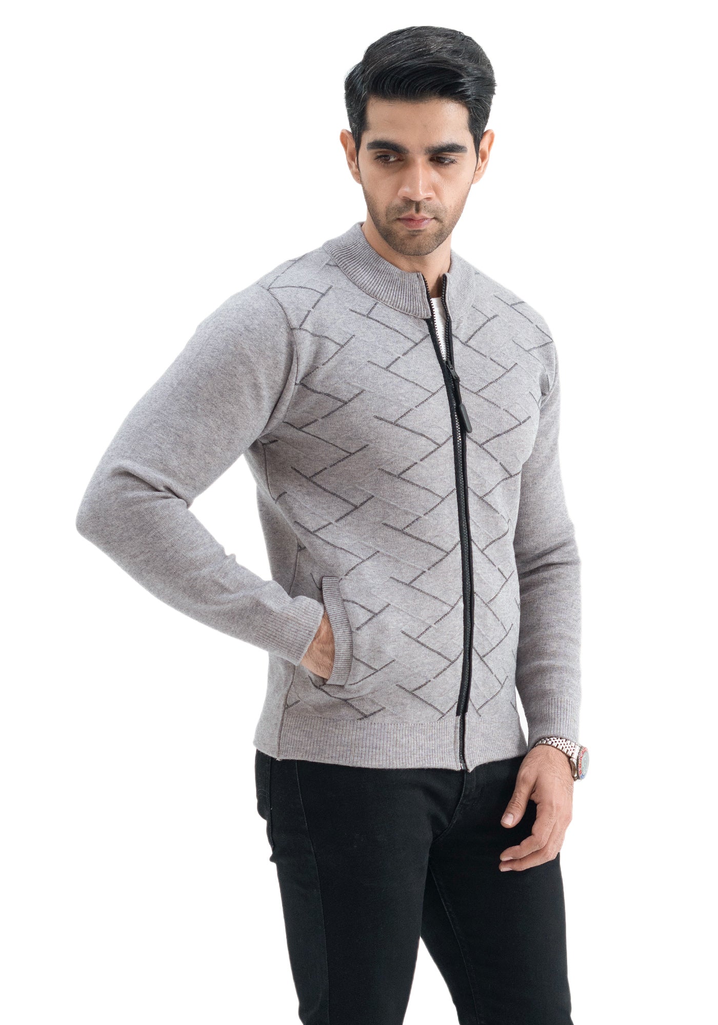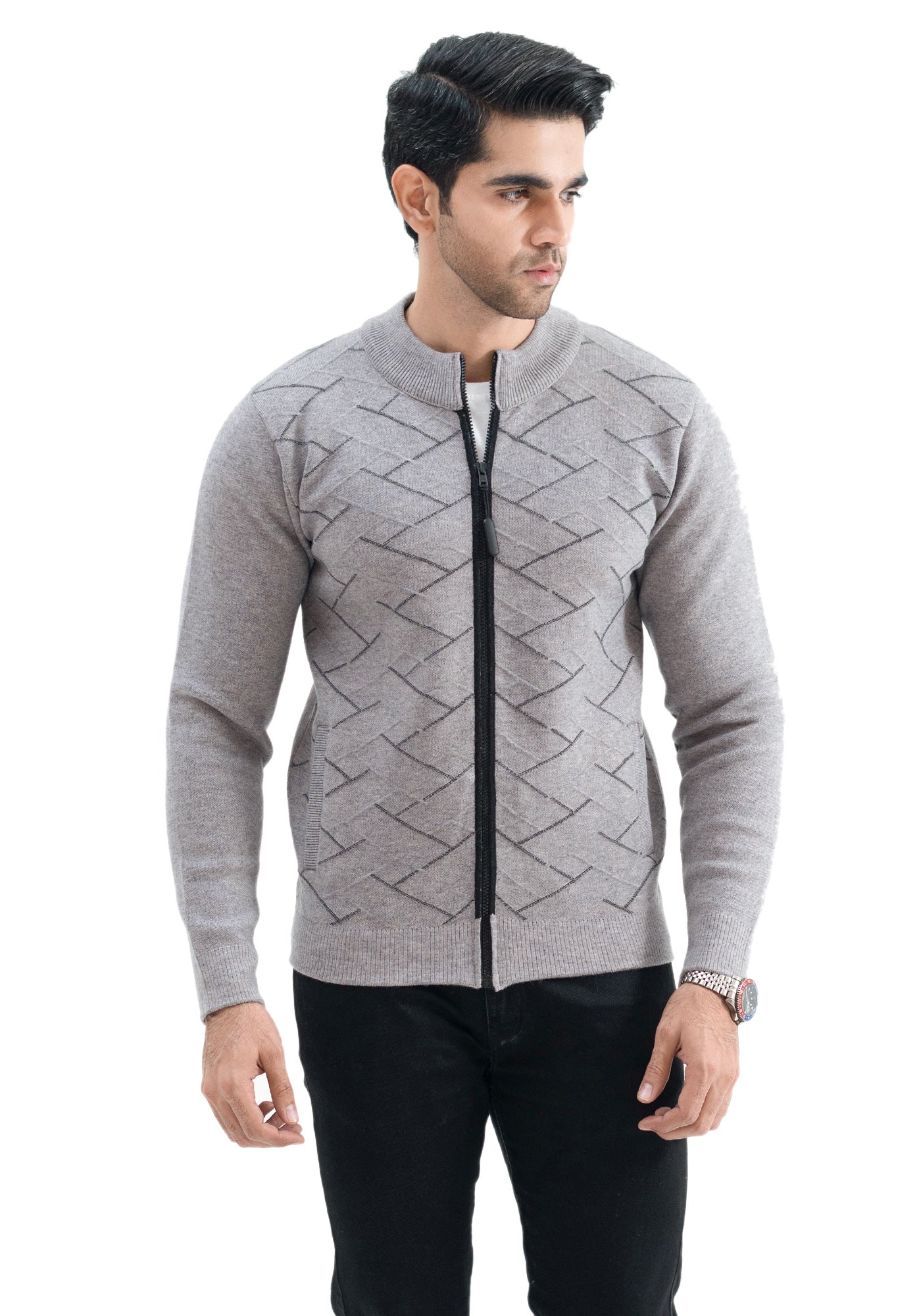 Soft Acrylic Wool Charcoal Zipper Sweater