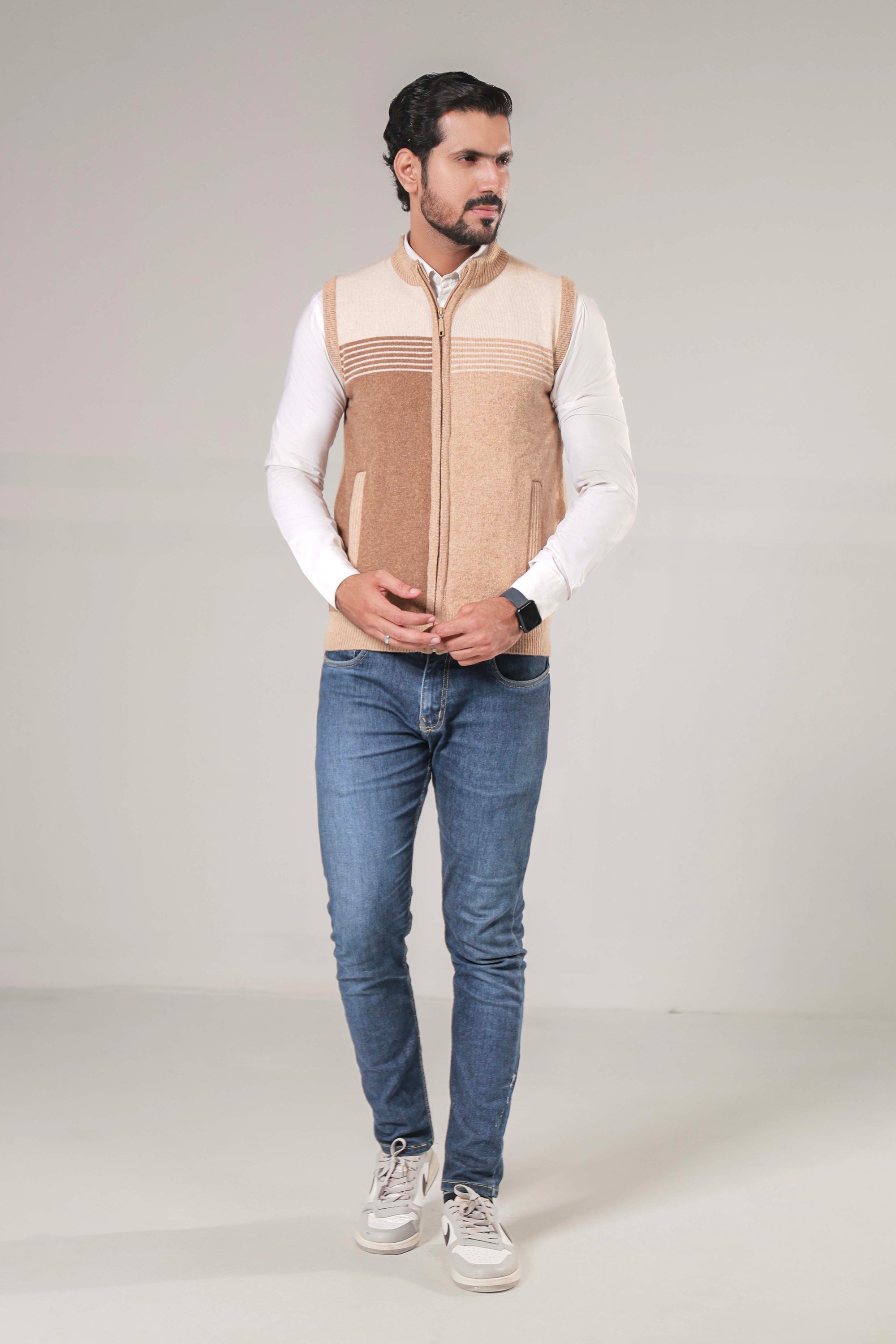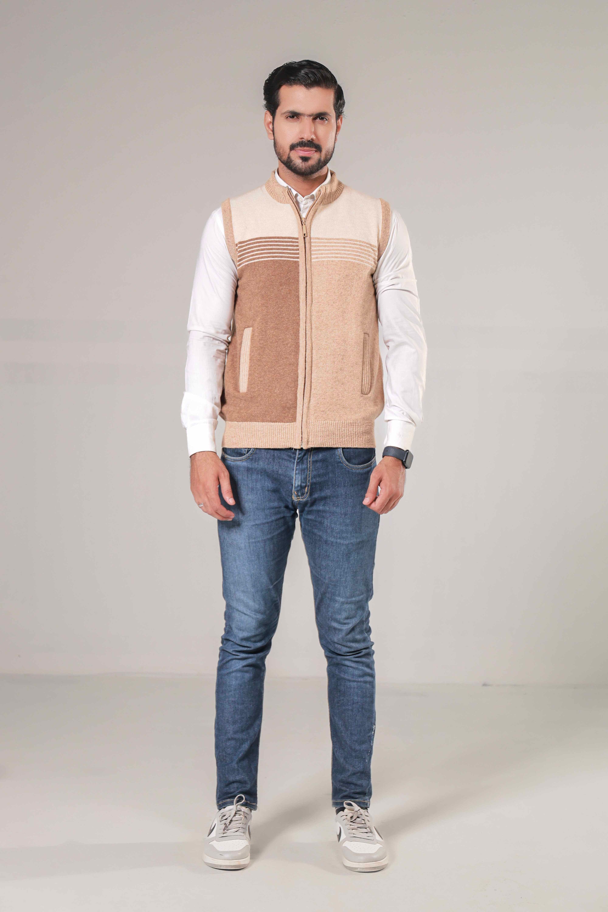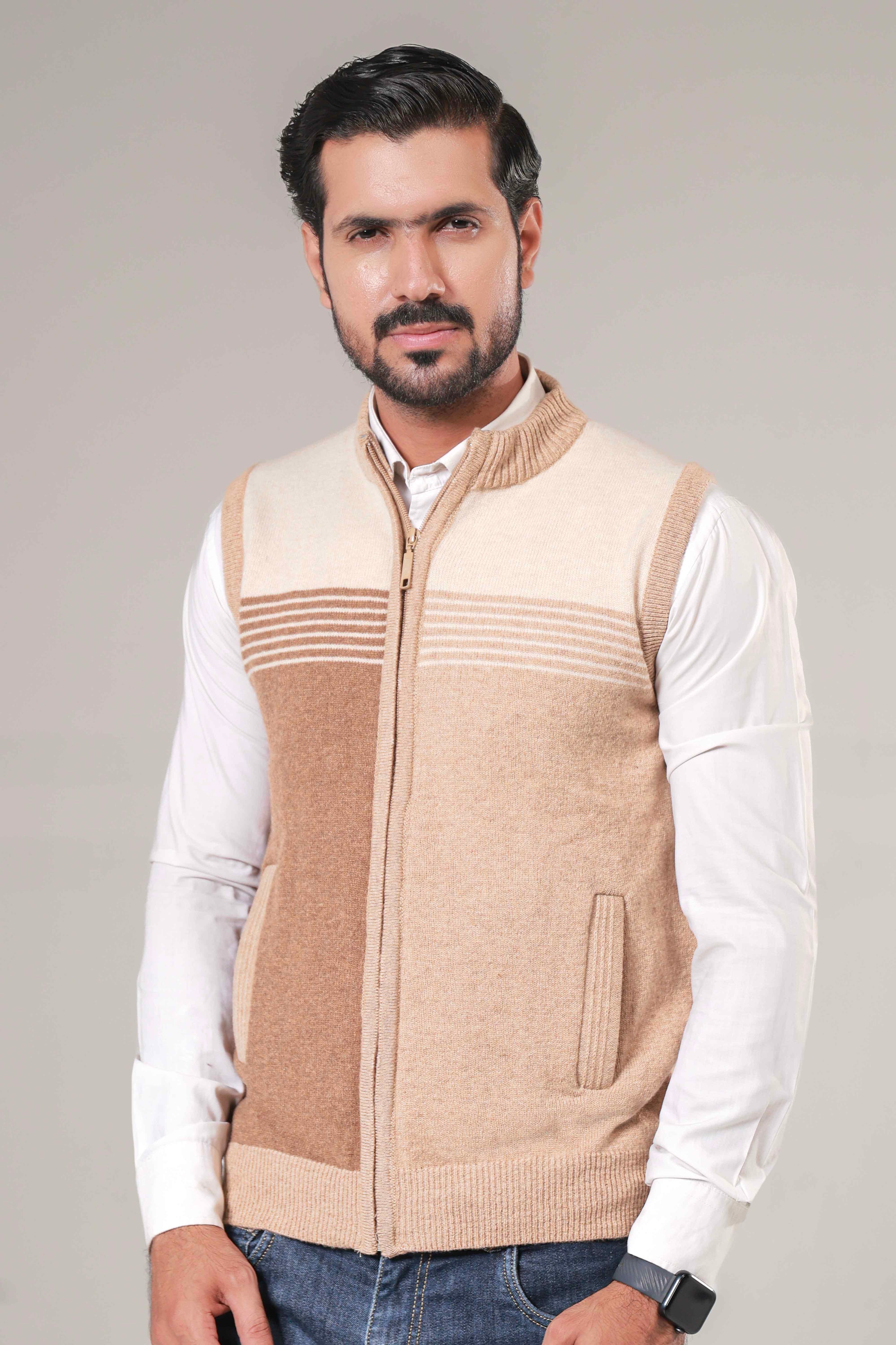 Soft Acrylic Wool Sleeveless Zipper Sweater