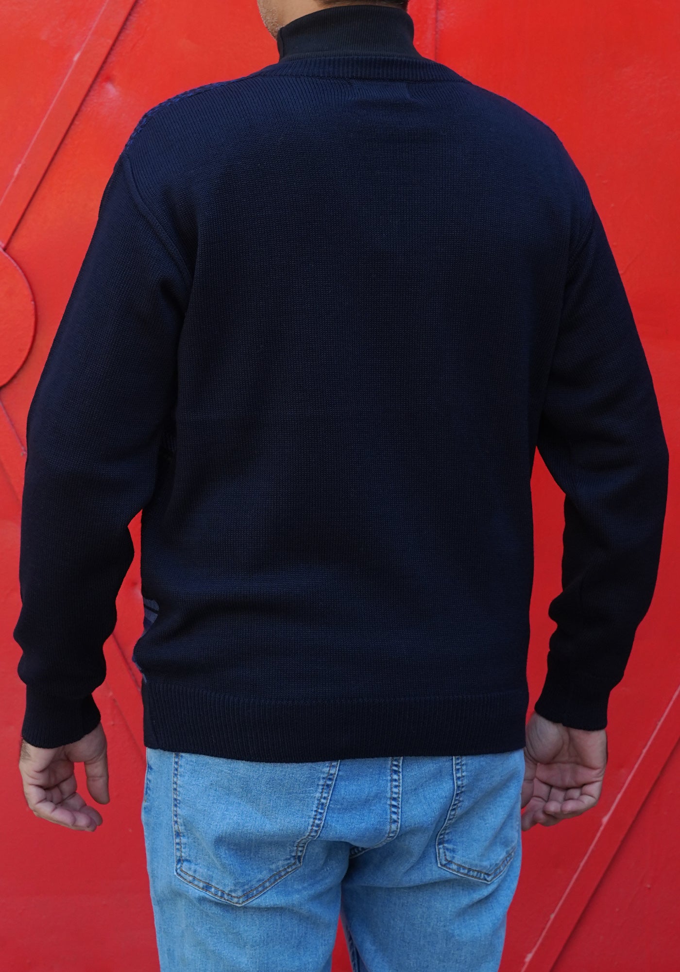 Super Fine Wool Hoodie Zipper Sweater Blue