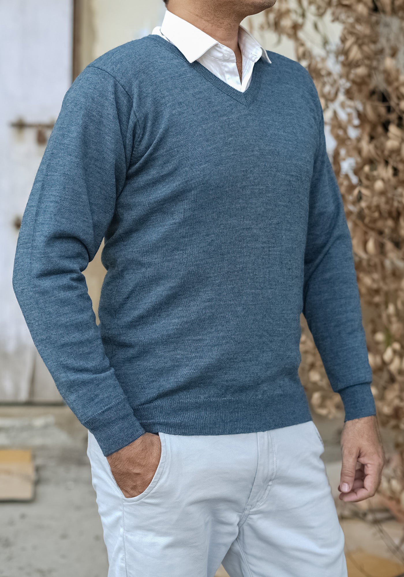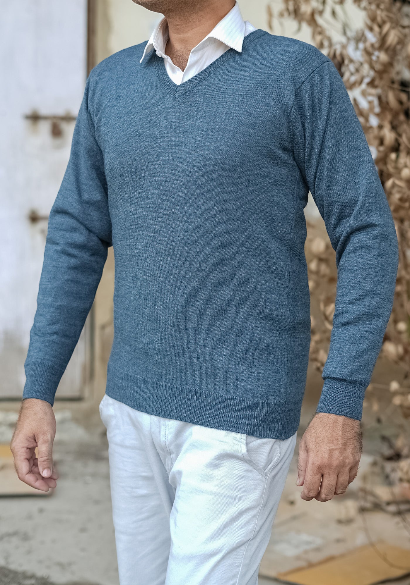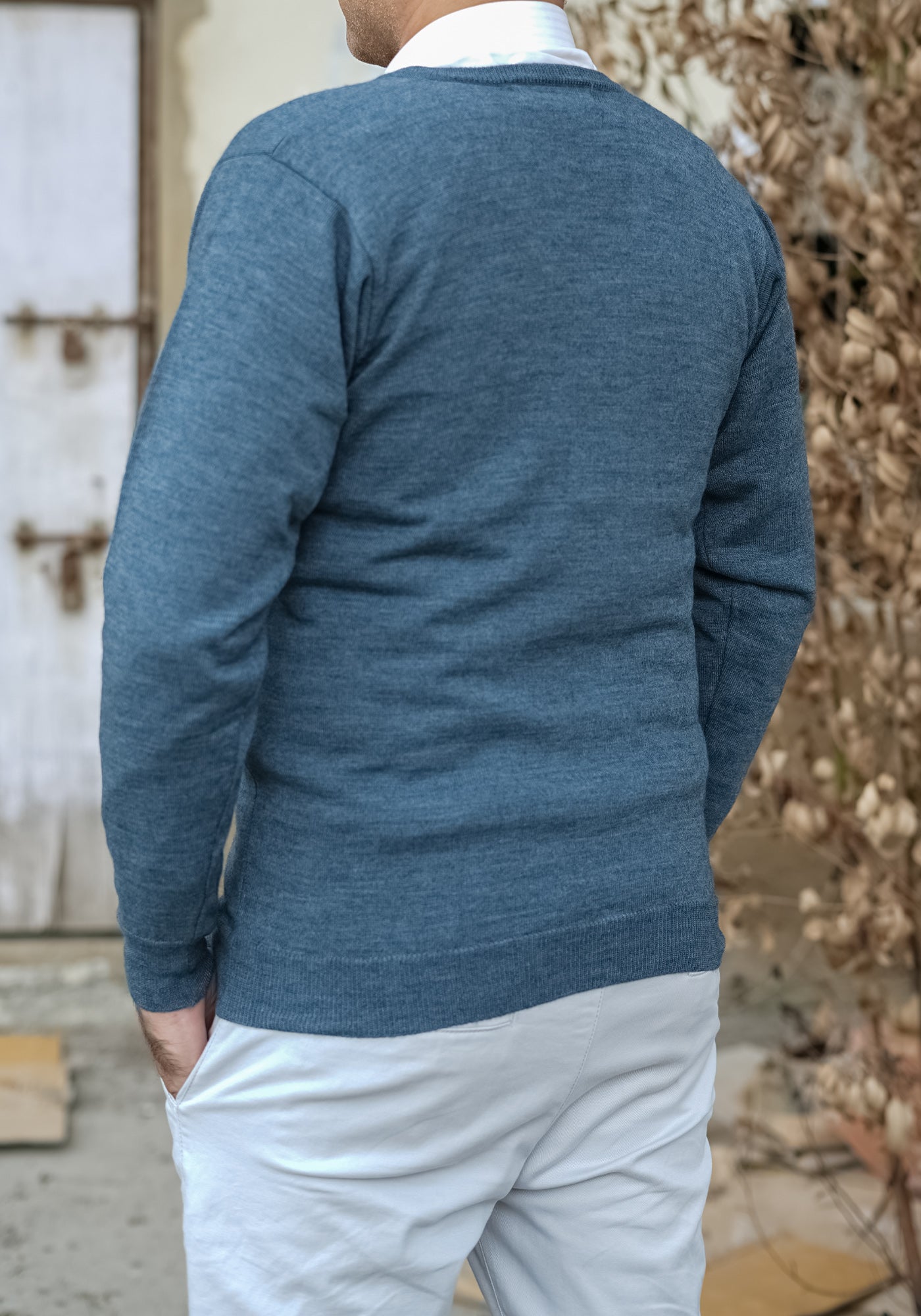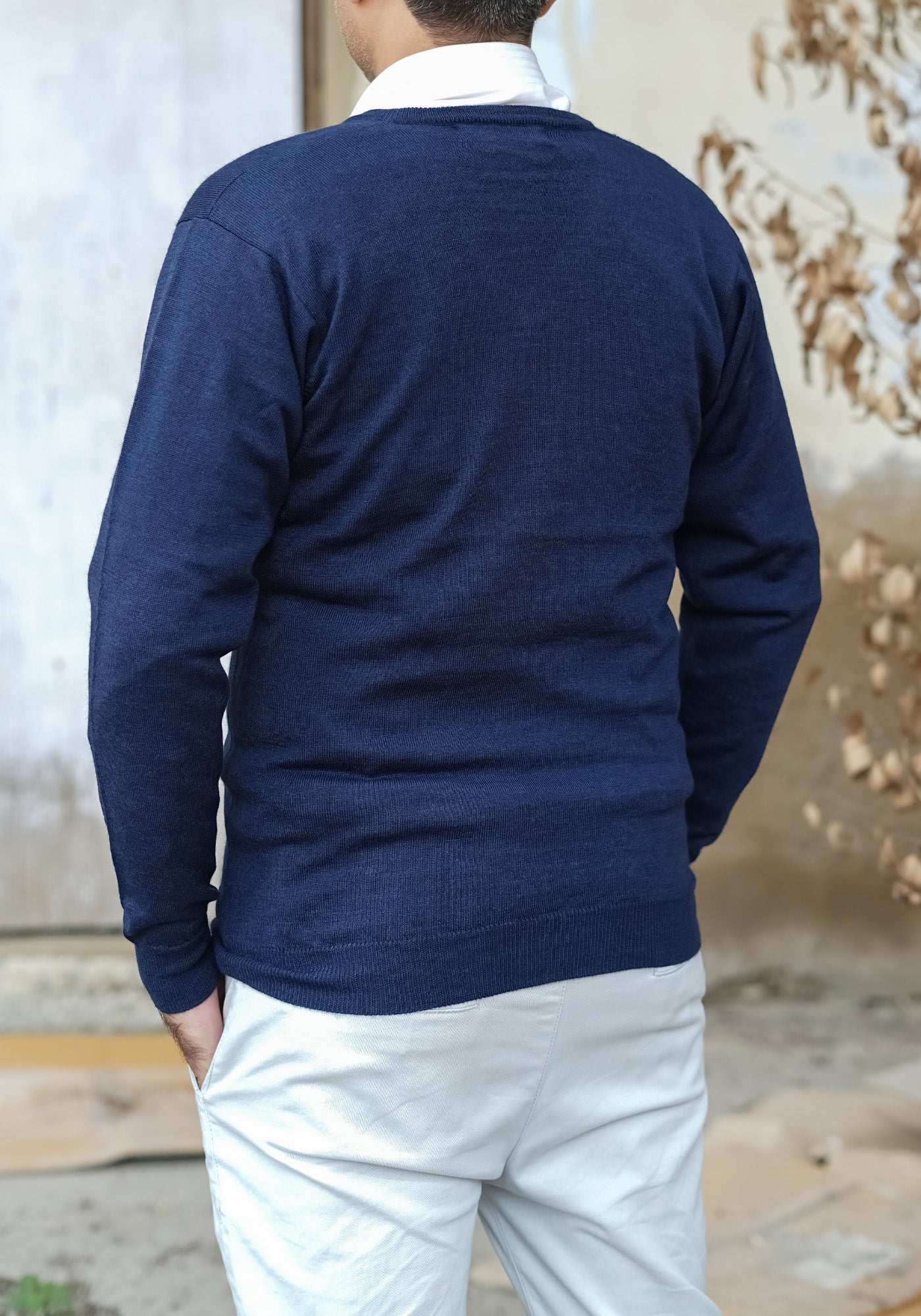 Super Fine Wool Hoodie Zipper Sweater Blue