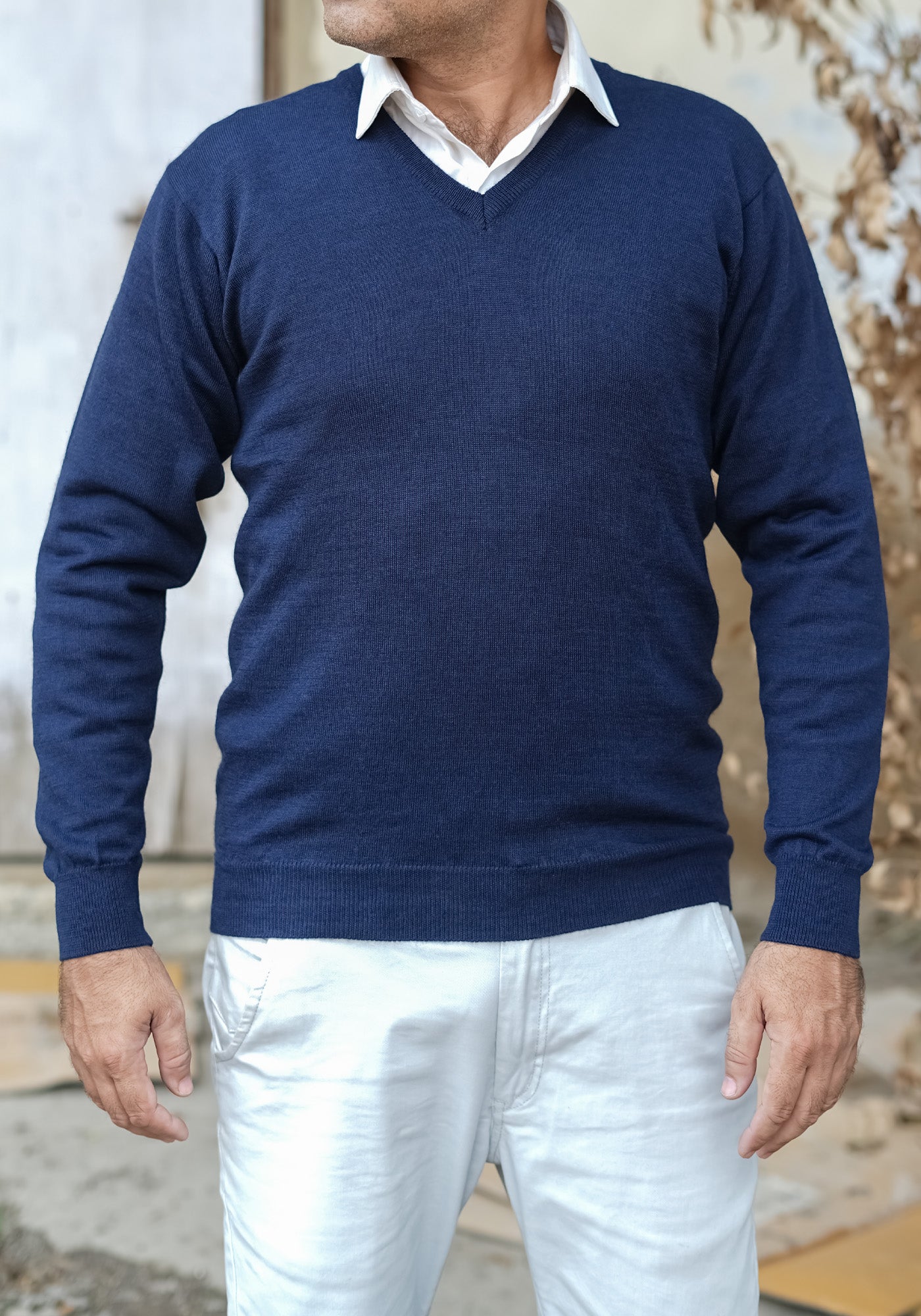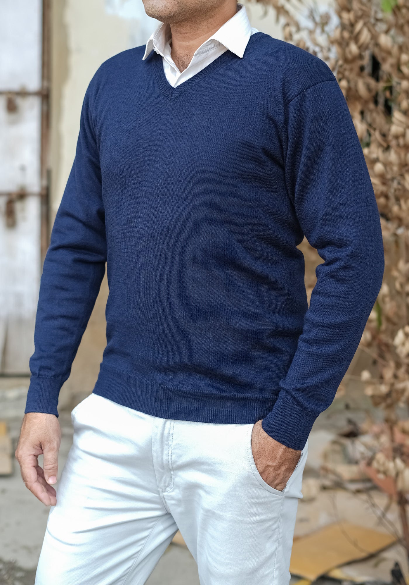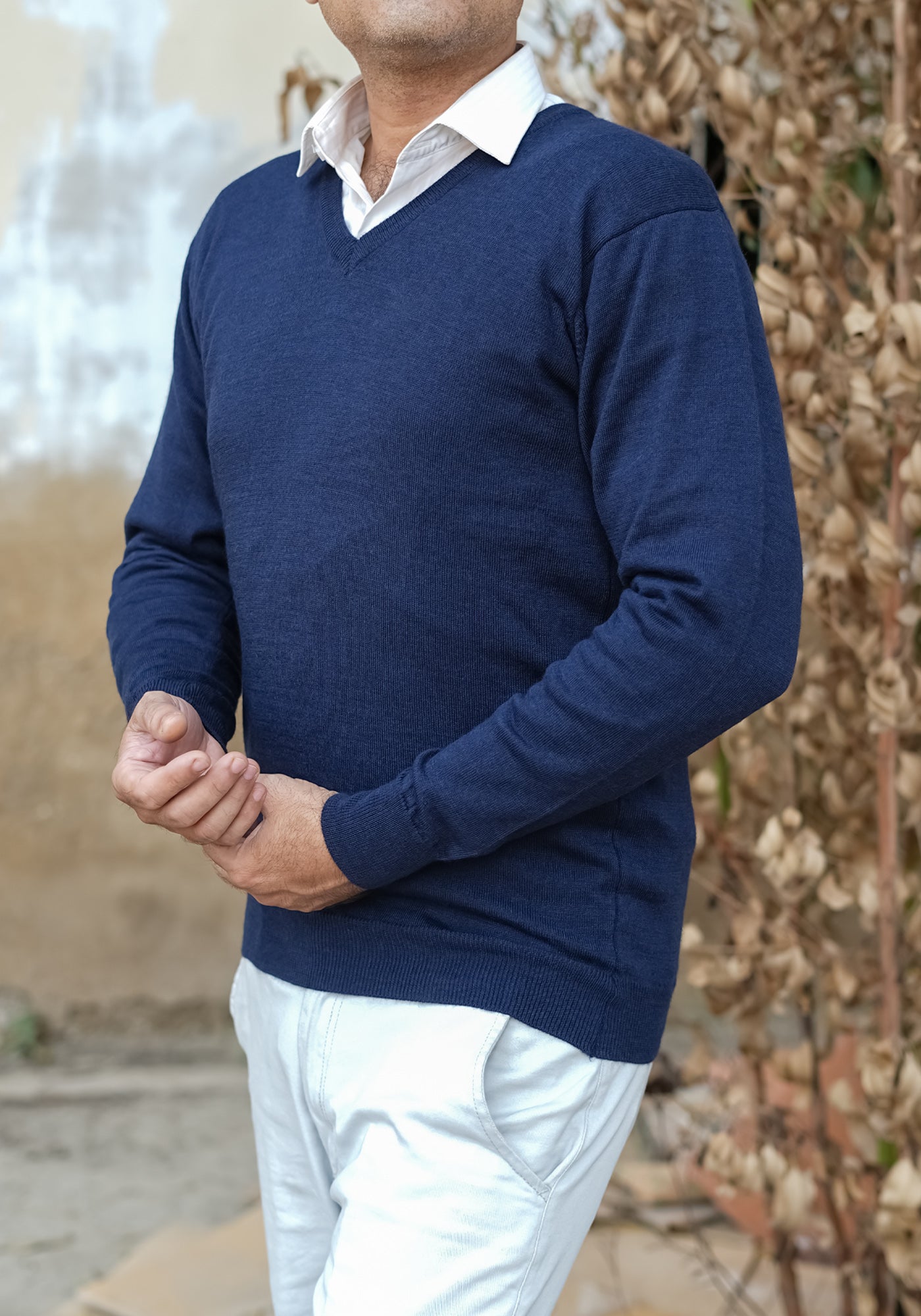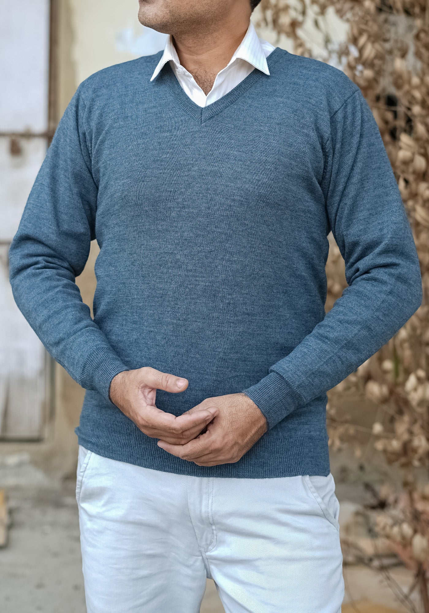 Super Fine Wool Hoodie Zipper Sweater Blue