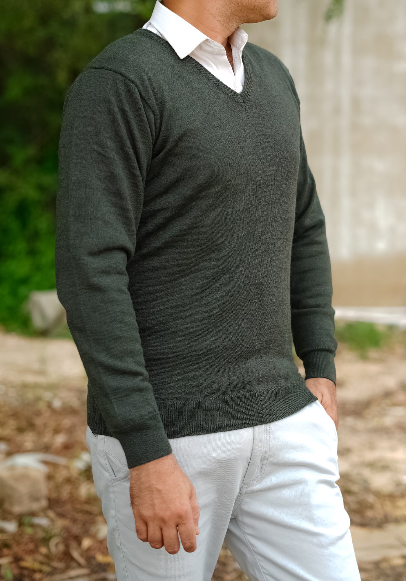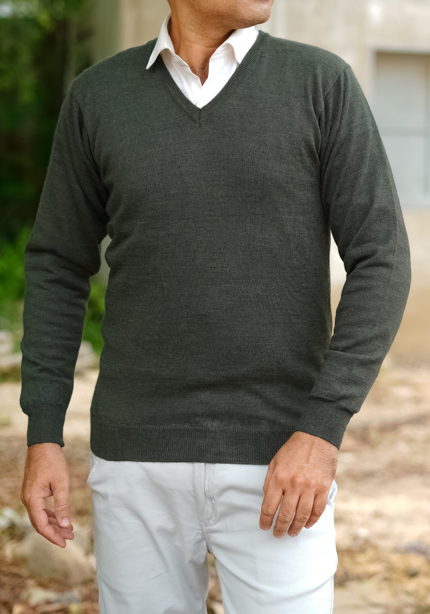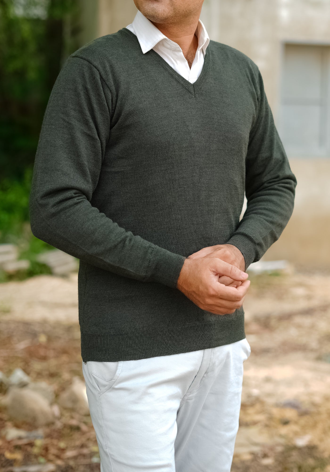 Super Fine Wool Hoodie Zipper Sweater D Olive