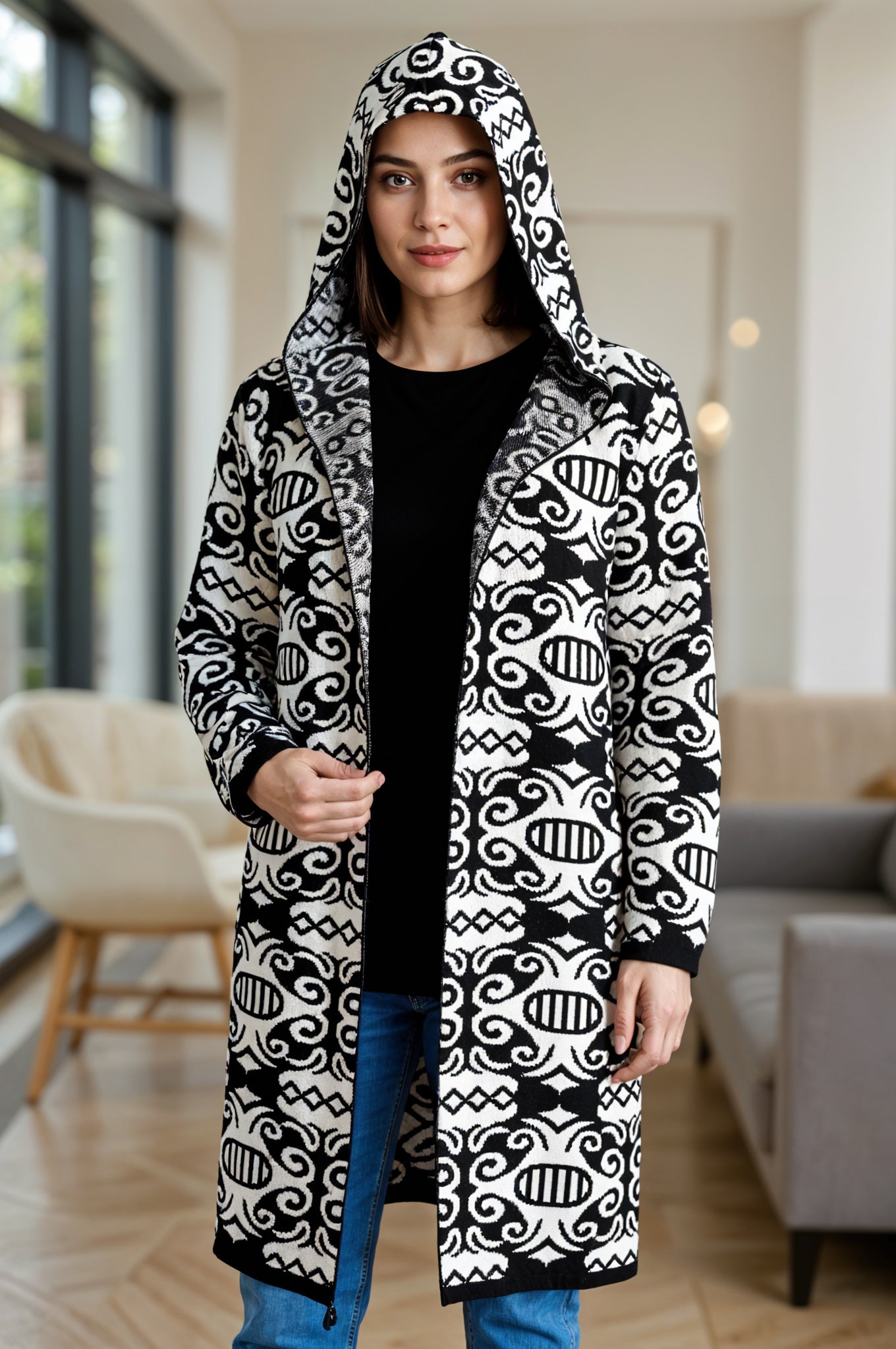 Acrylic Wool Hoodie With Pockets