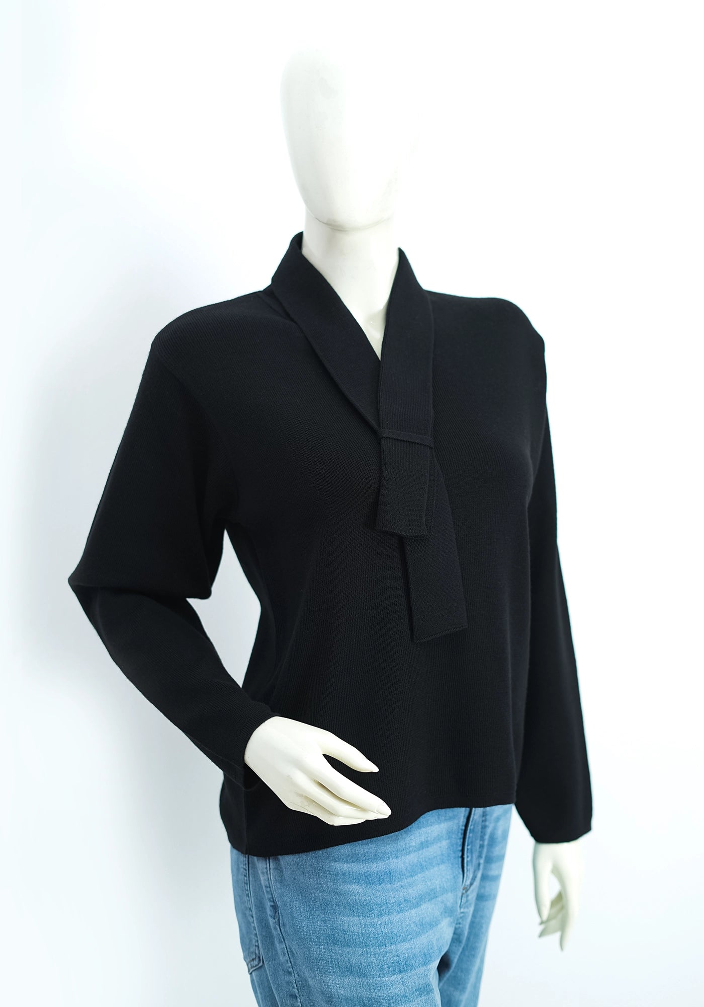 Blend Wool Plain Black Sweater