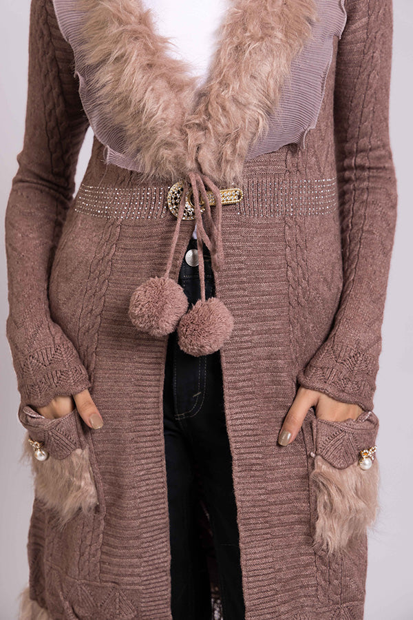 Acrylic Wool Round Neck Long Coat