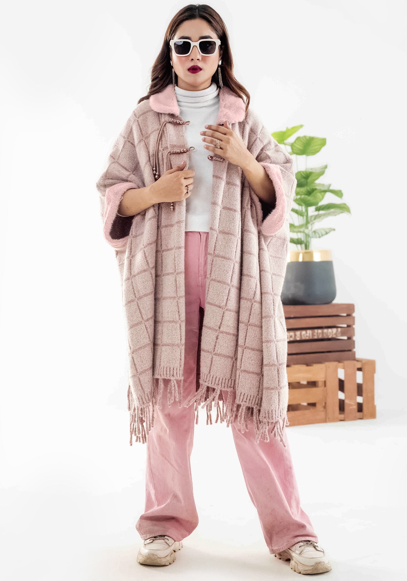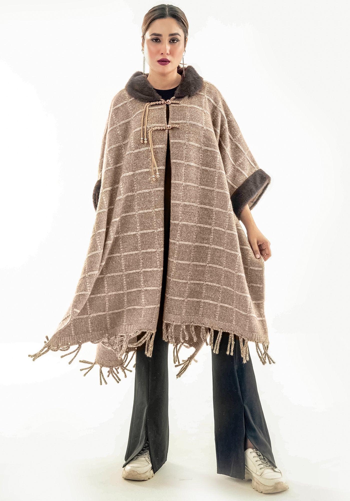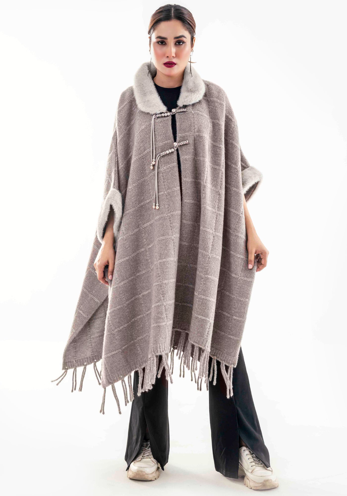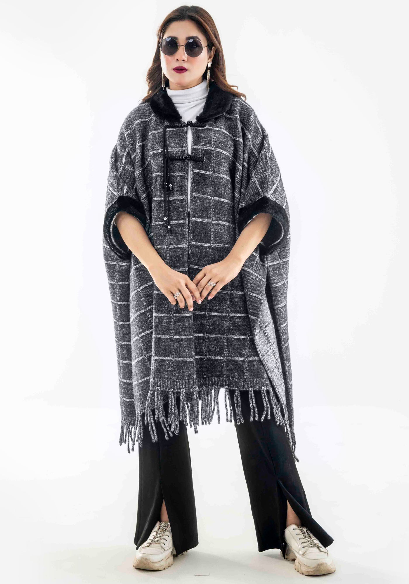 Acrylic Wool Long Ponchoo