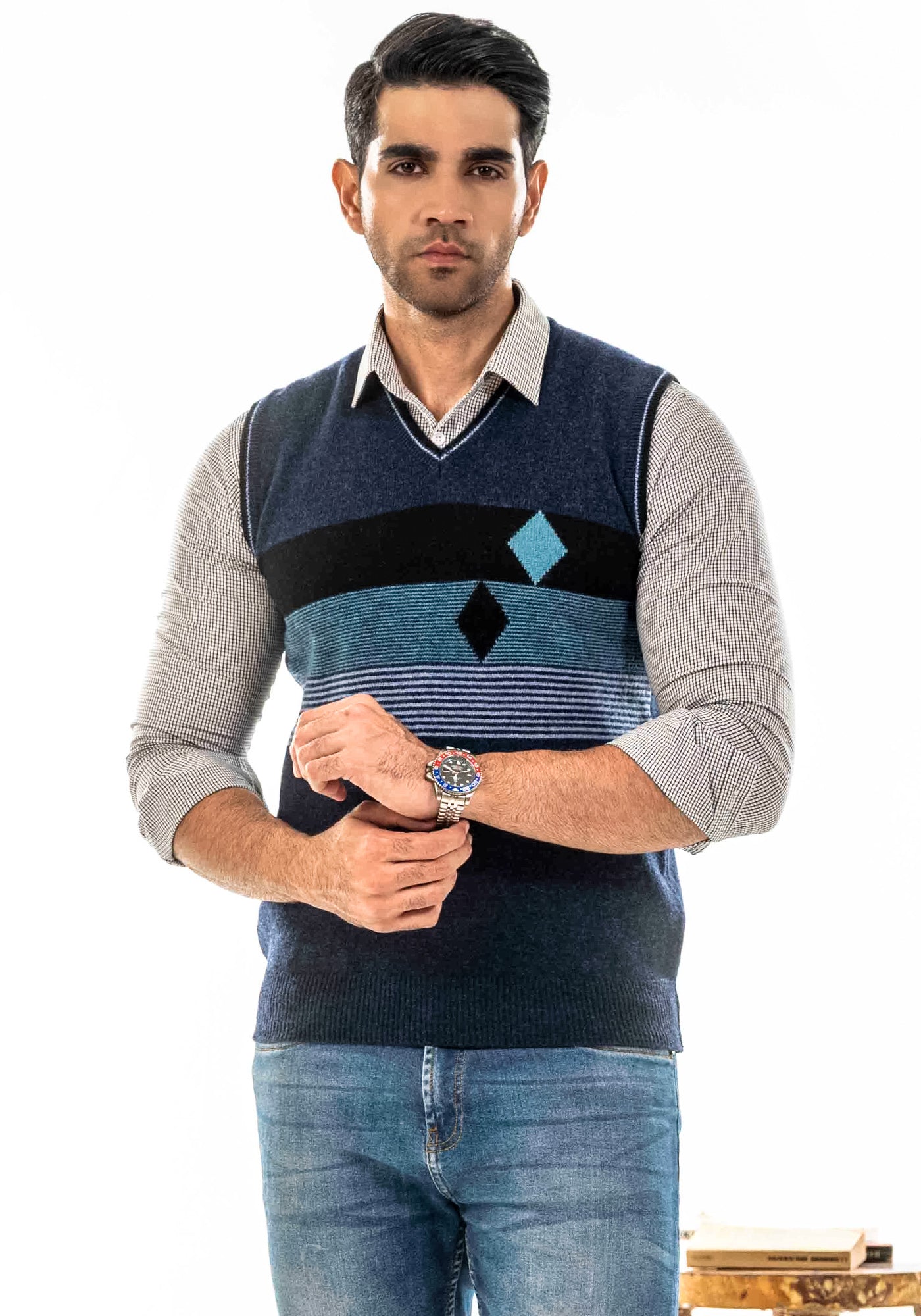 100% Lambswool Blue Sleeveless