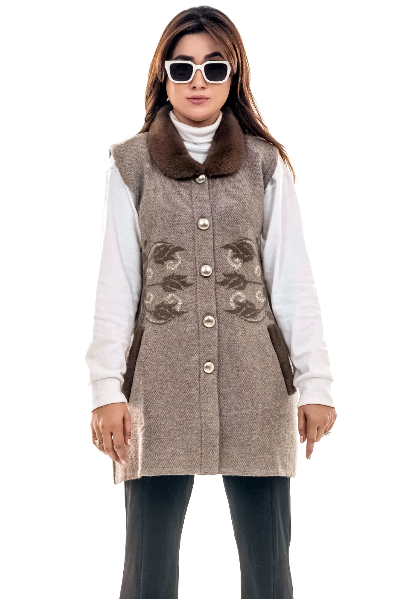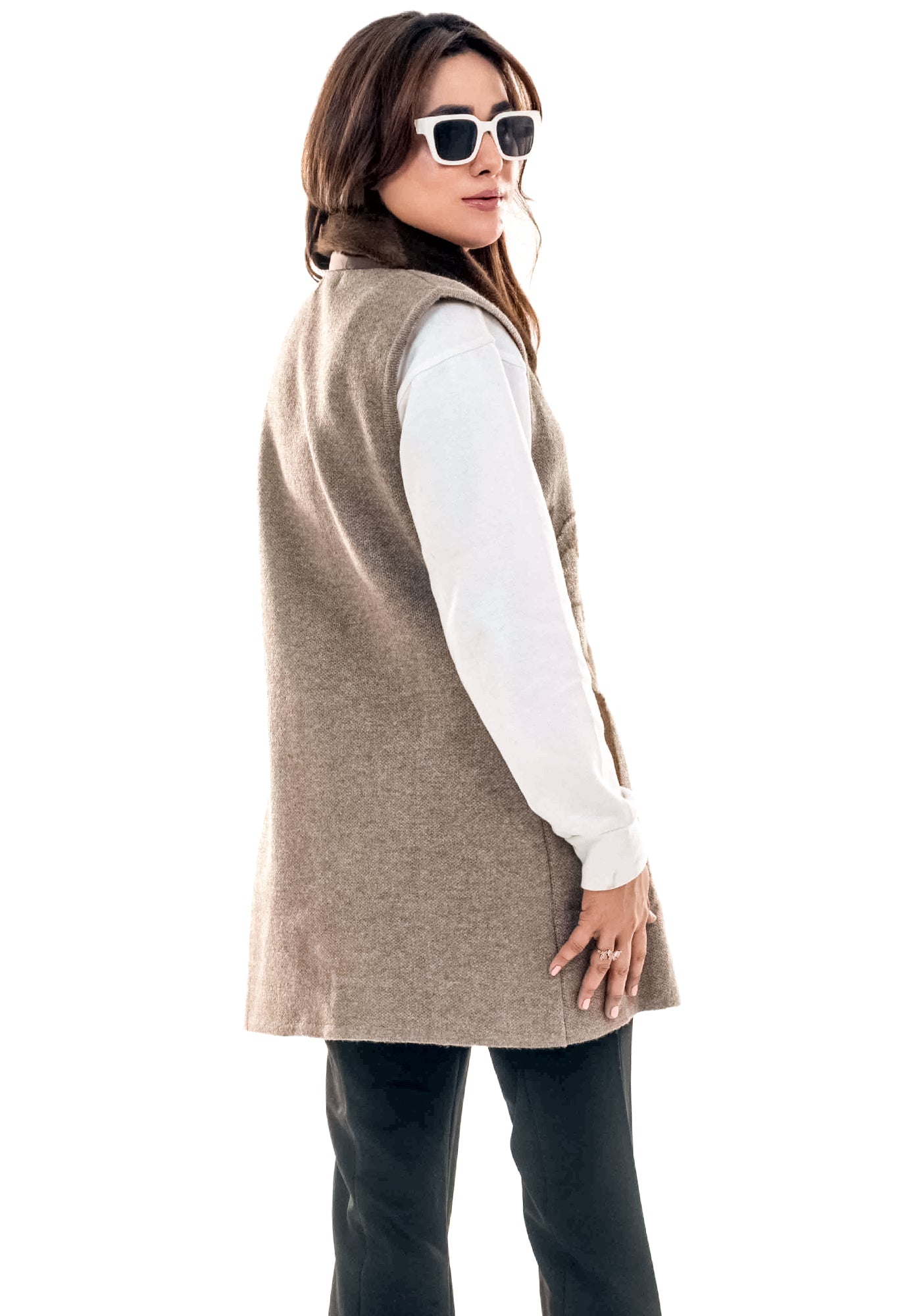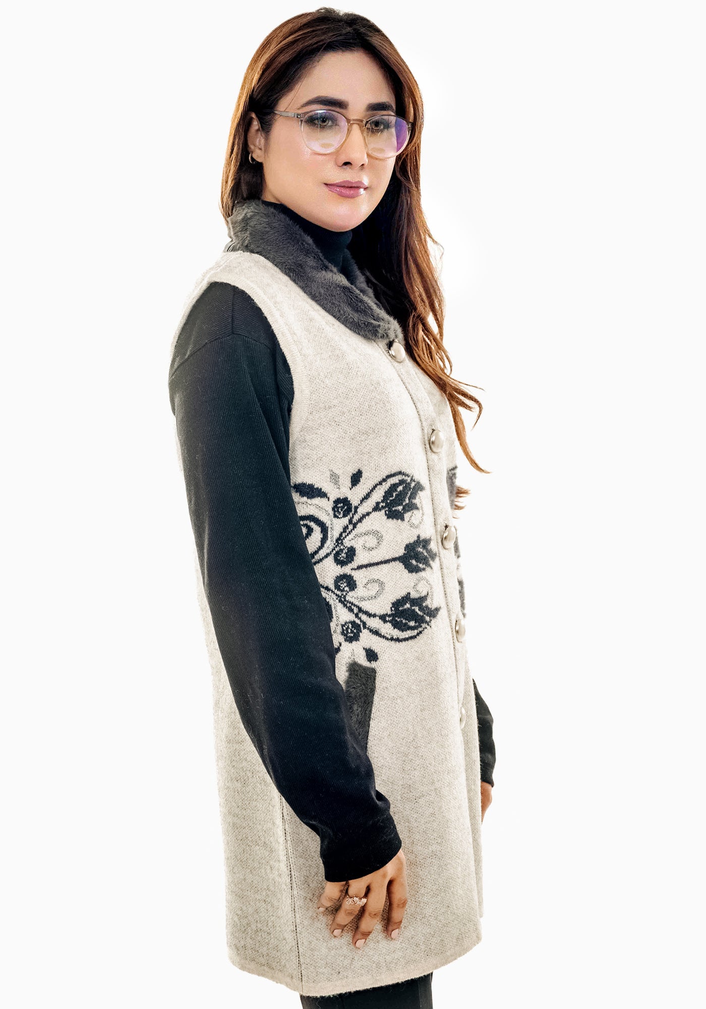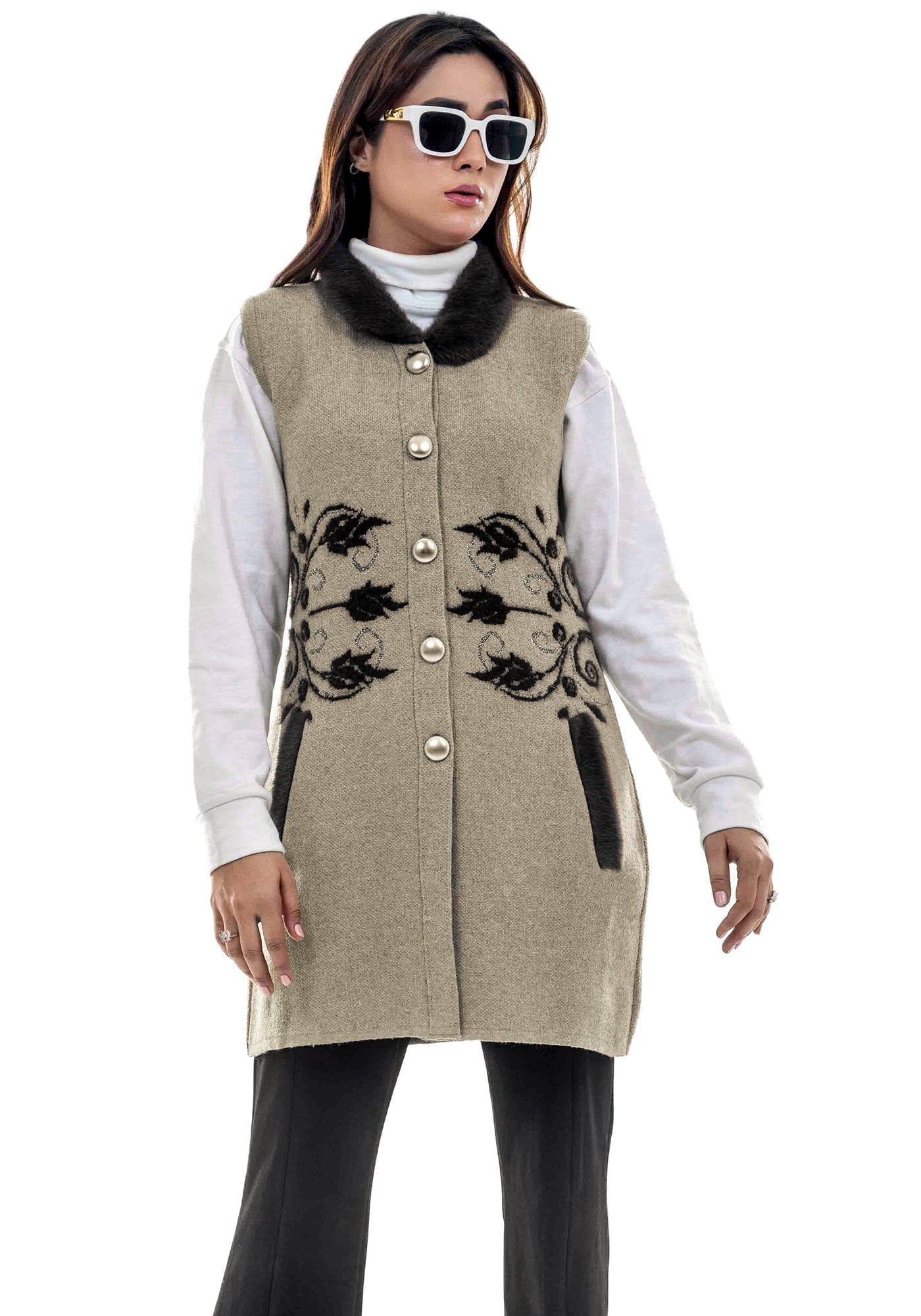 Soft Acrylic Wool Sleeve Less Cardigan