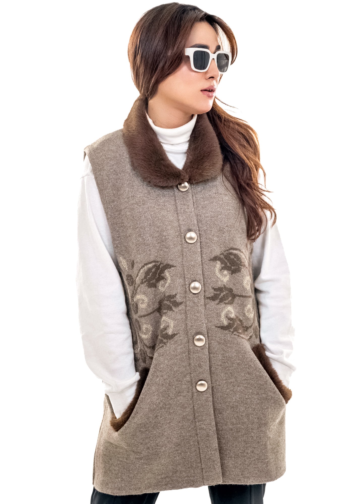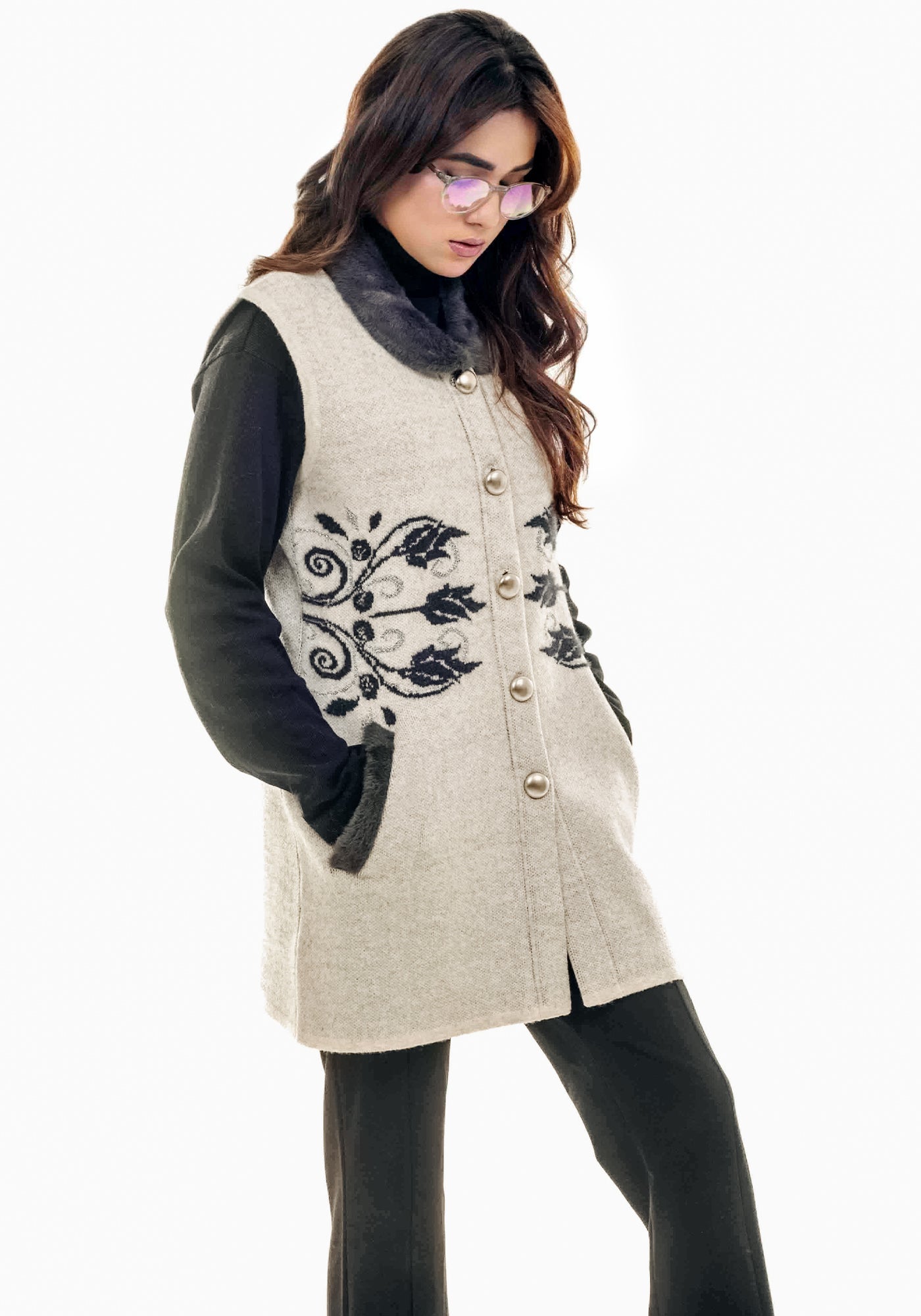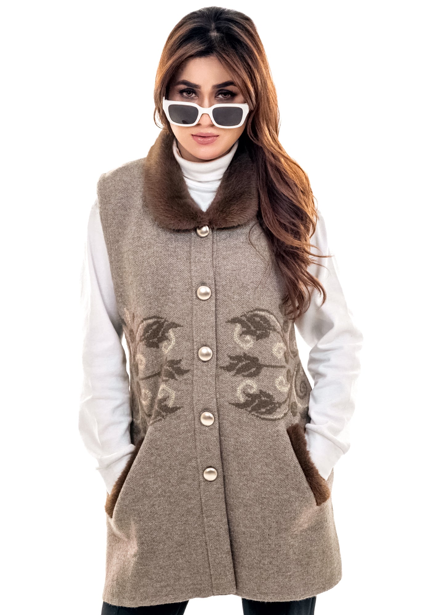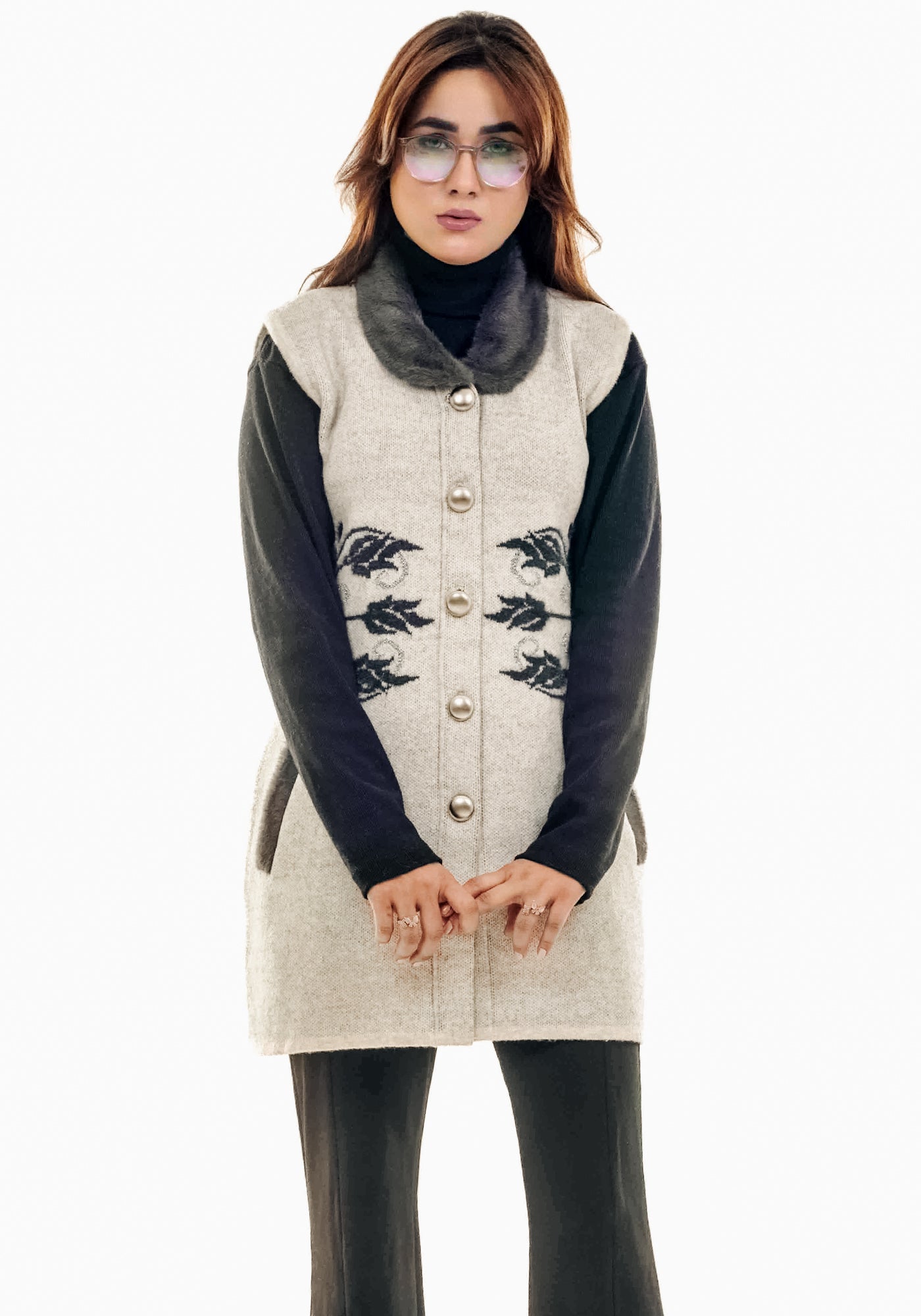 Soft Acrylic Wool Sleeve Less Cardigan