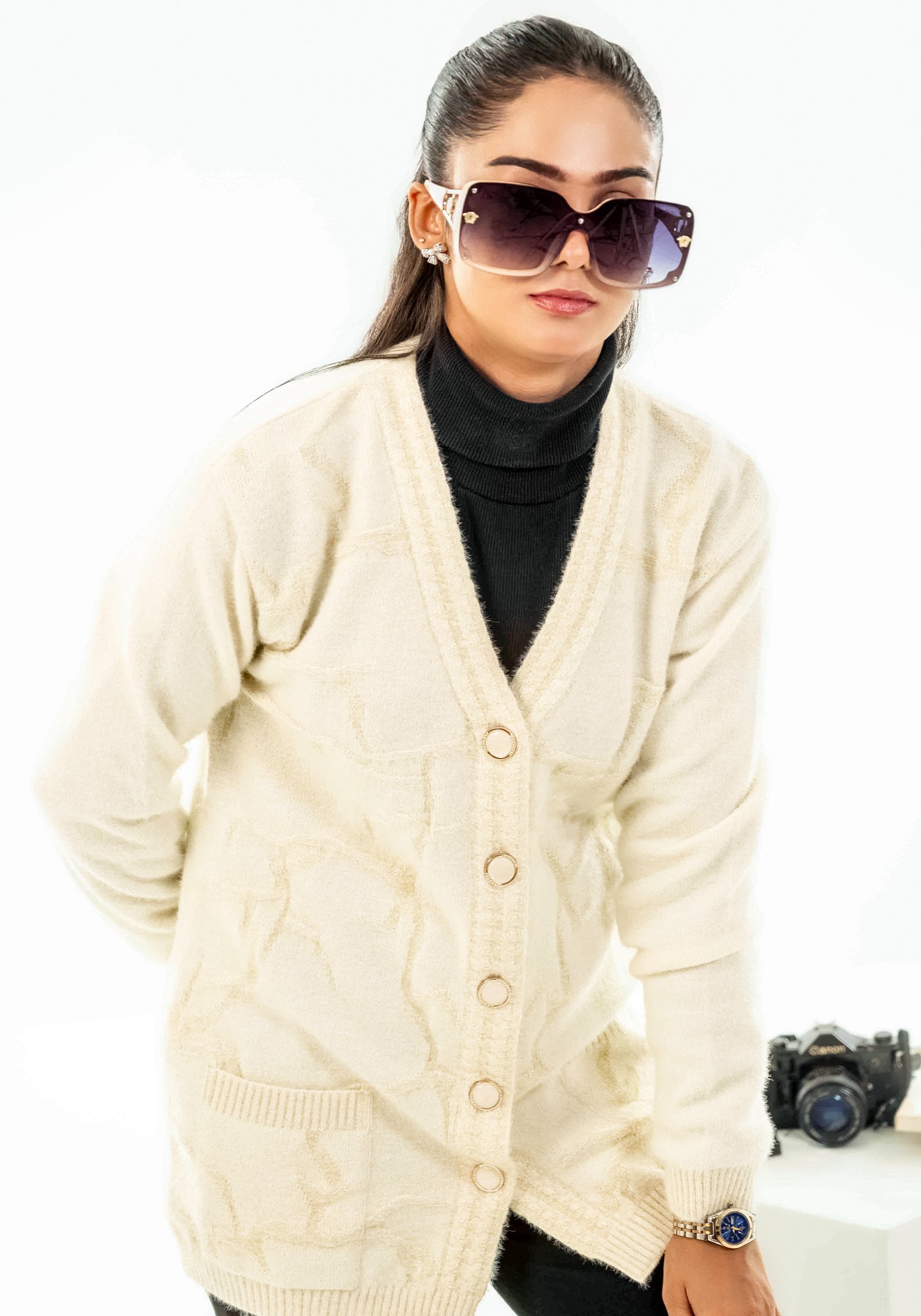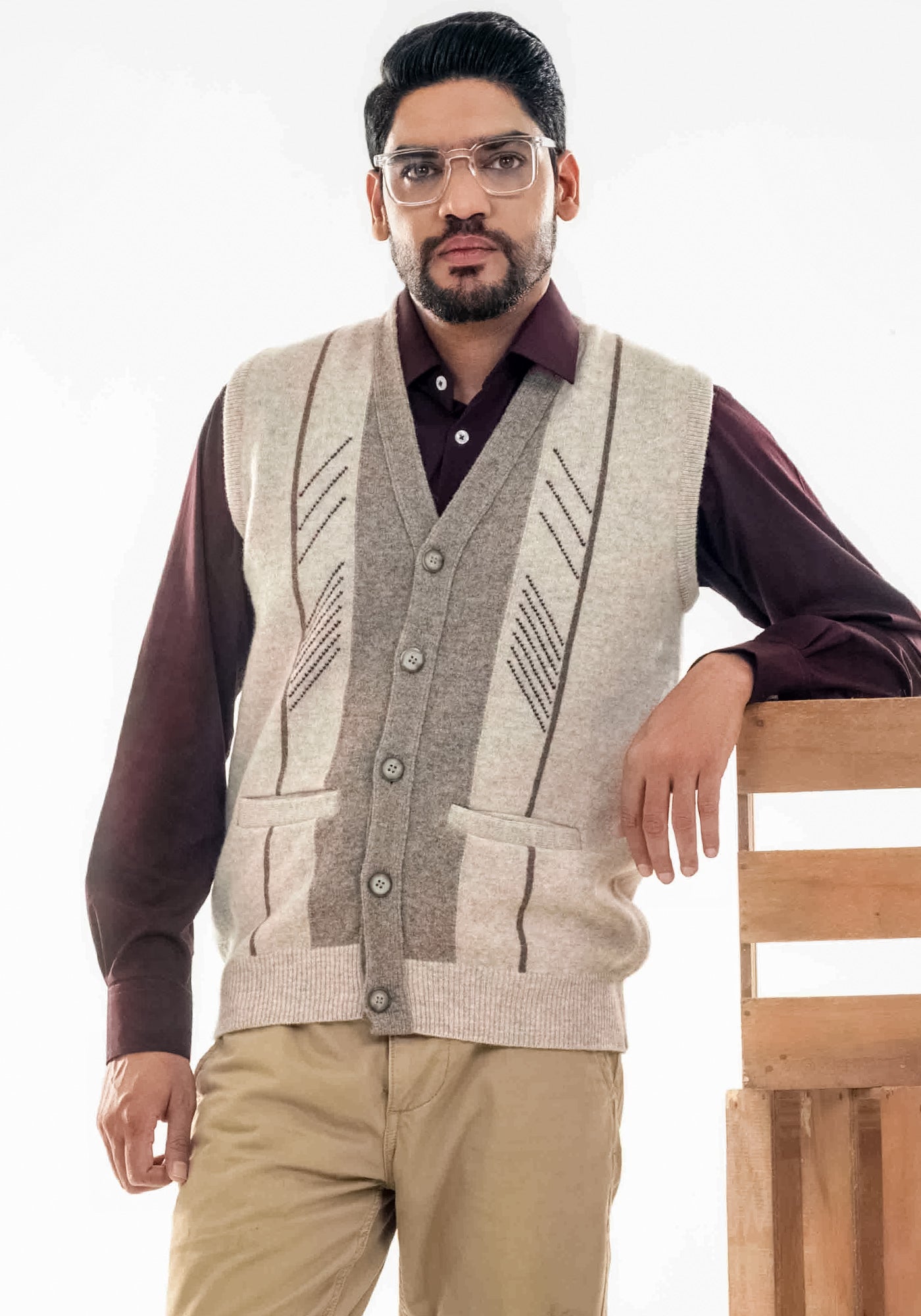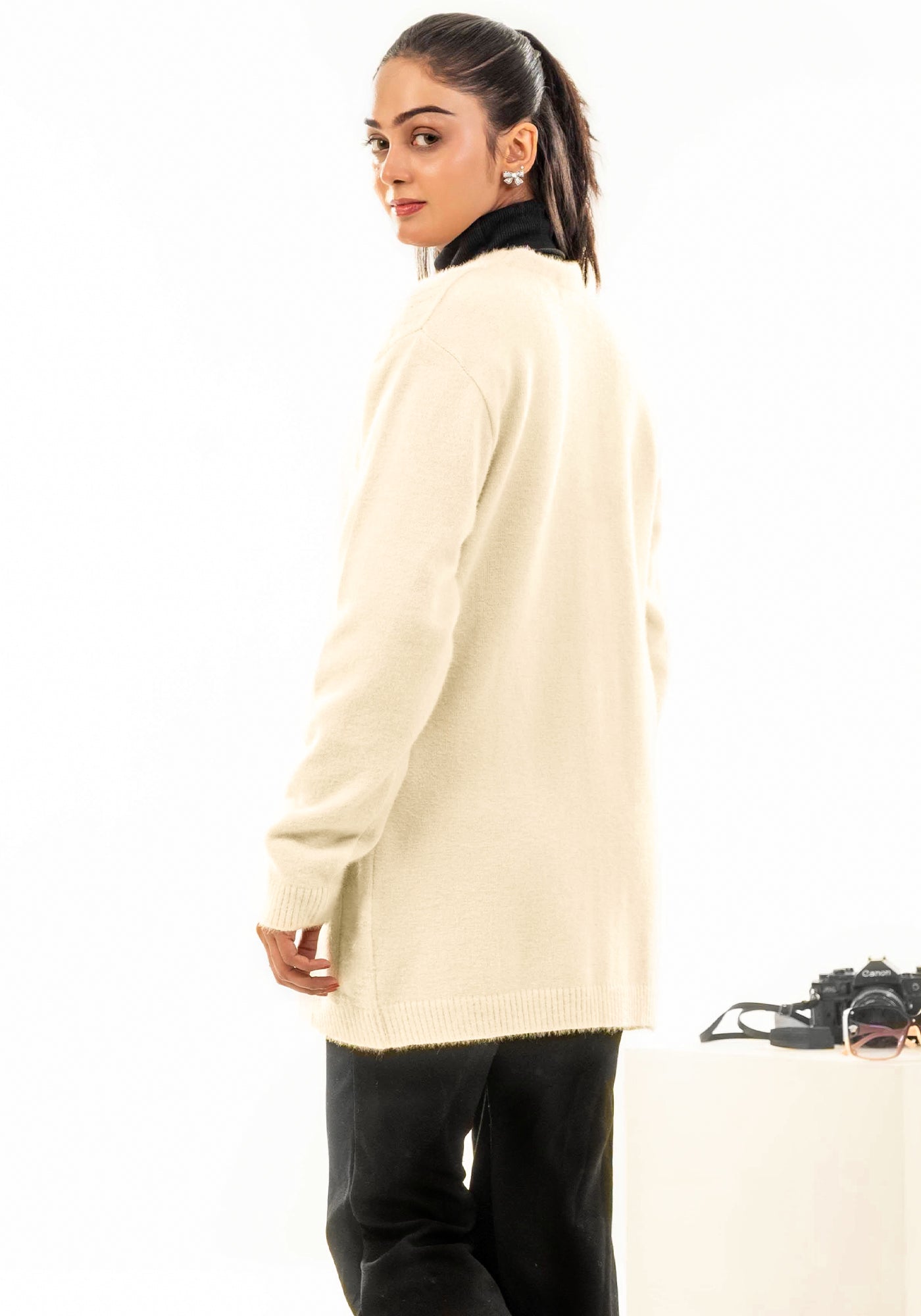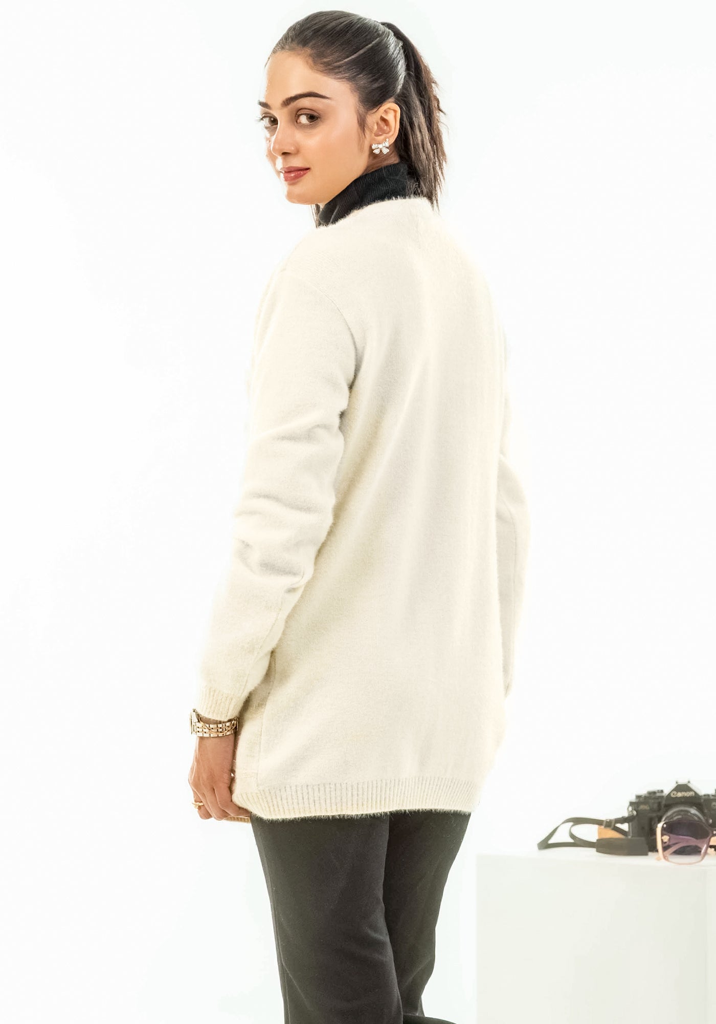 Soft Acrylic Wool Off White Sleeveless Cardigan