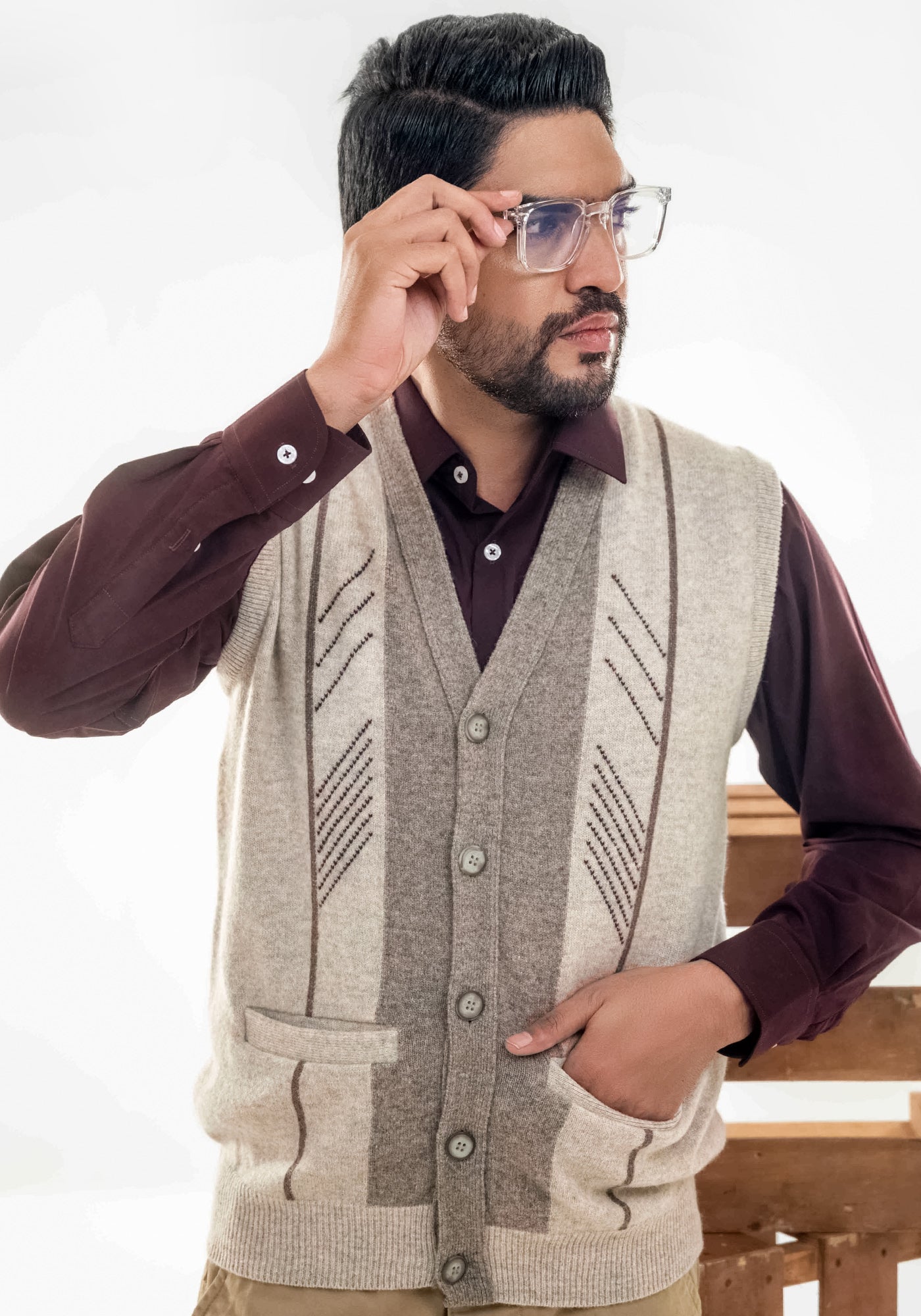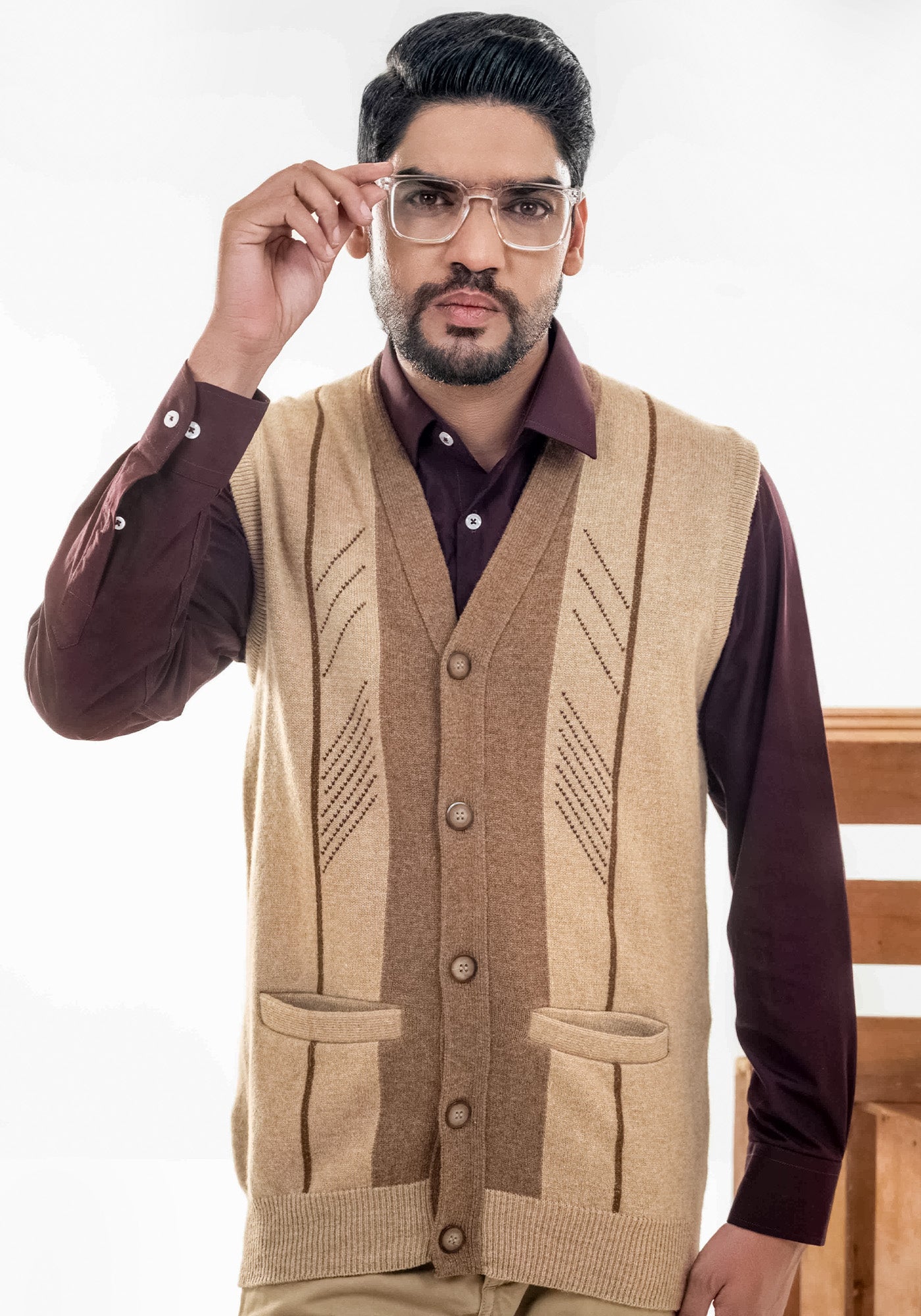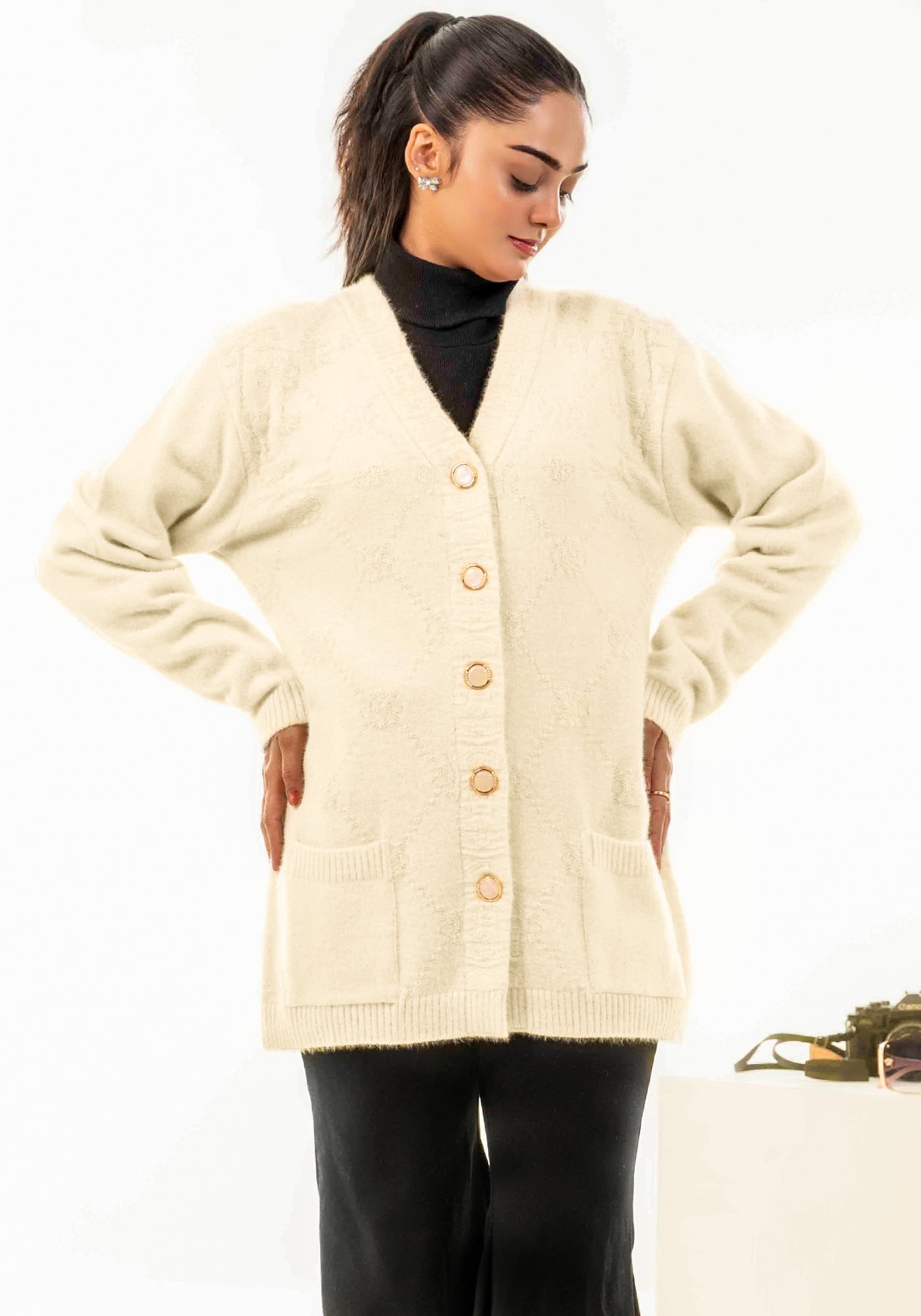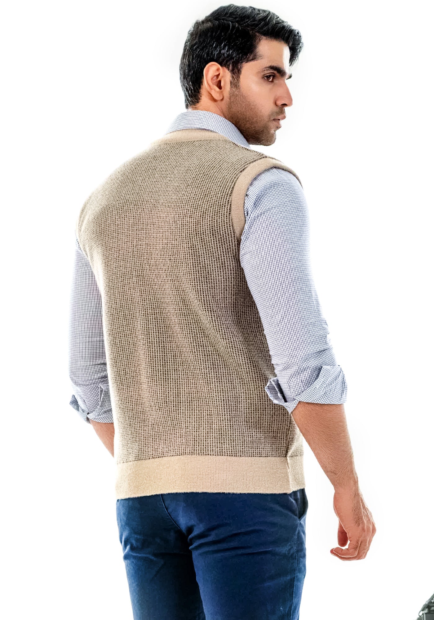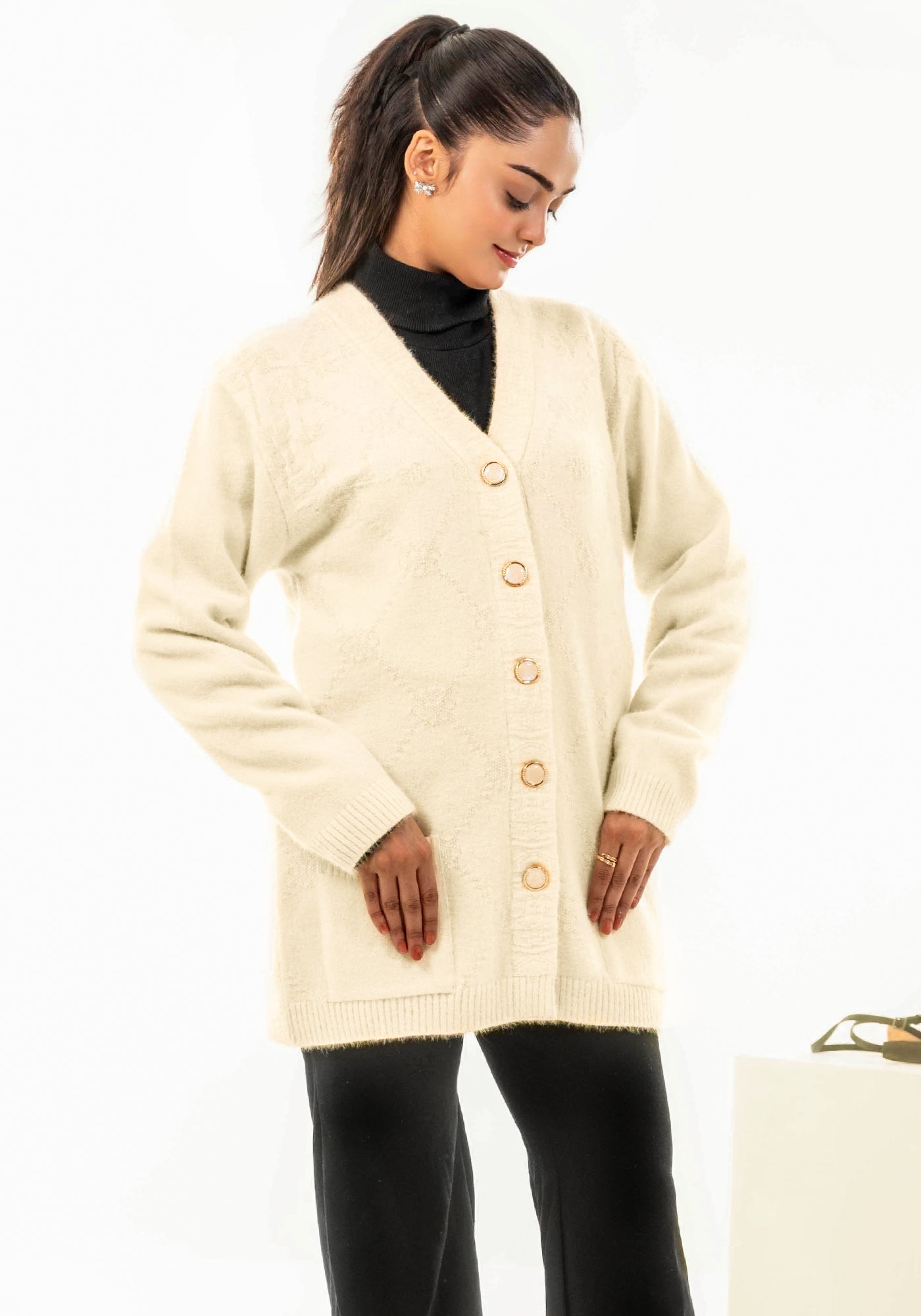 Soft Acrylic Wool Off White Sleeveless Cardigan