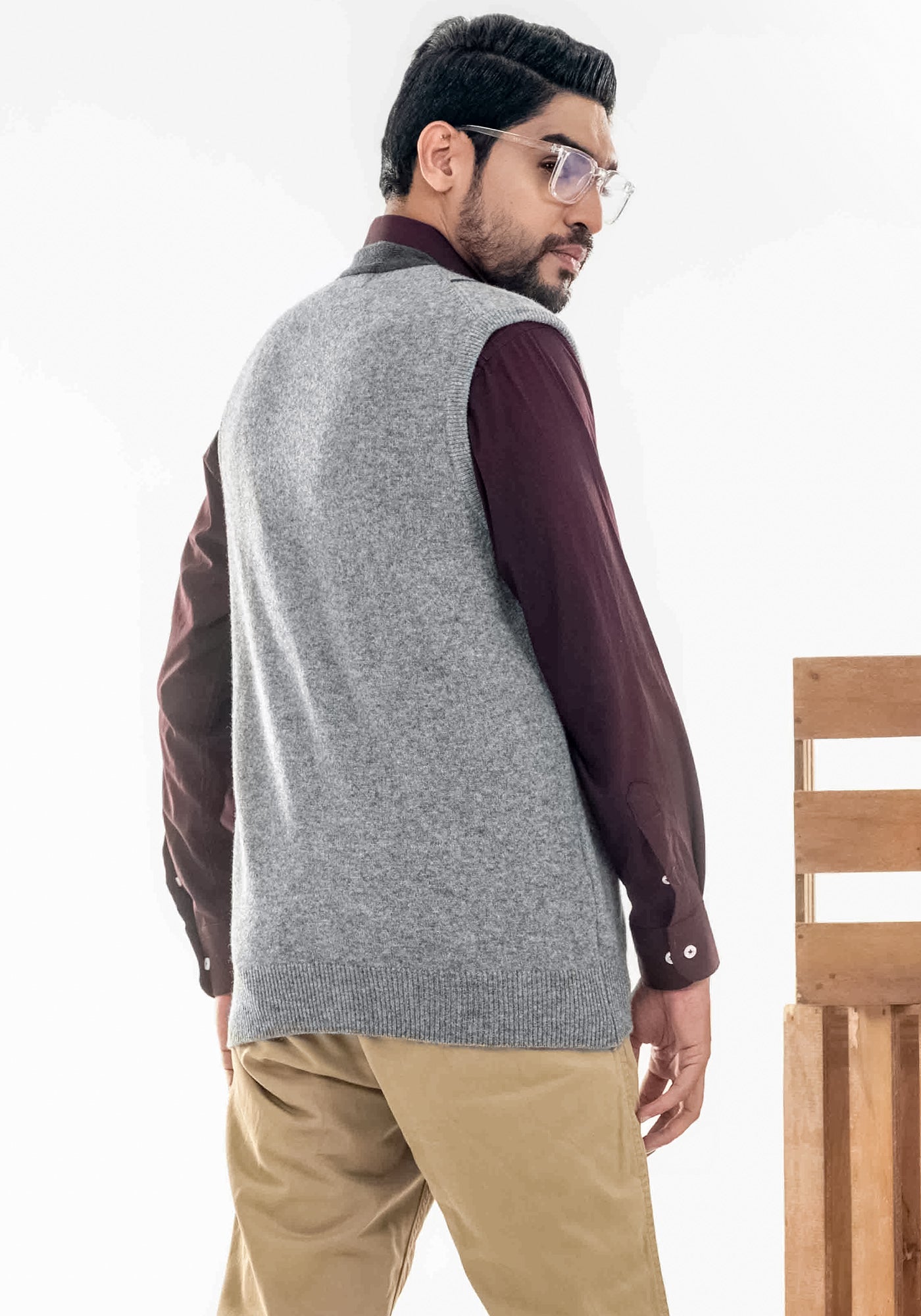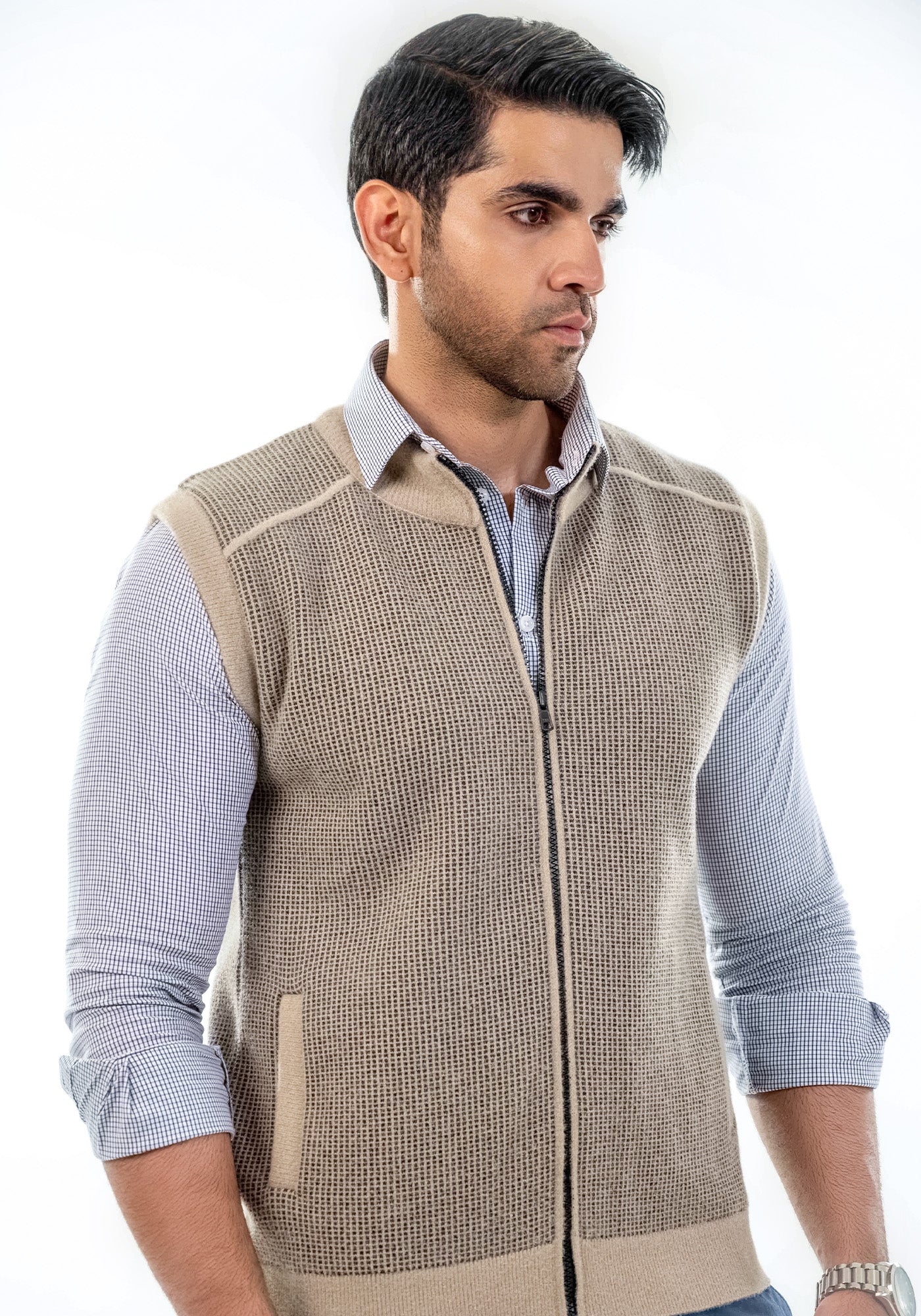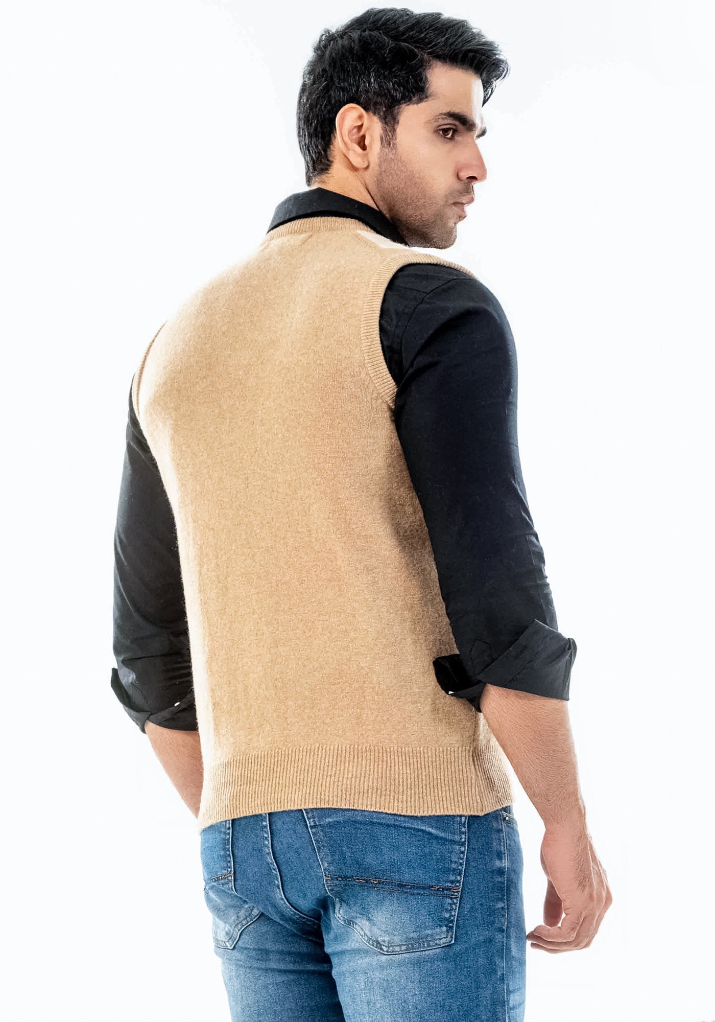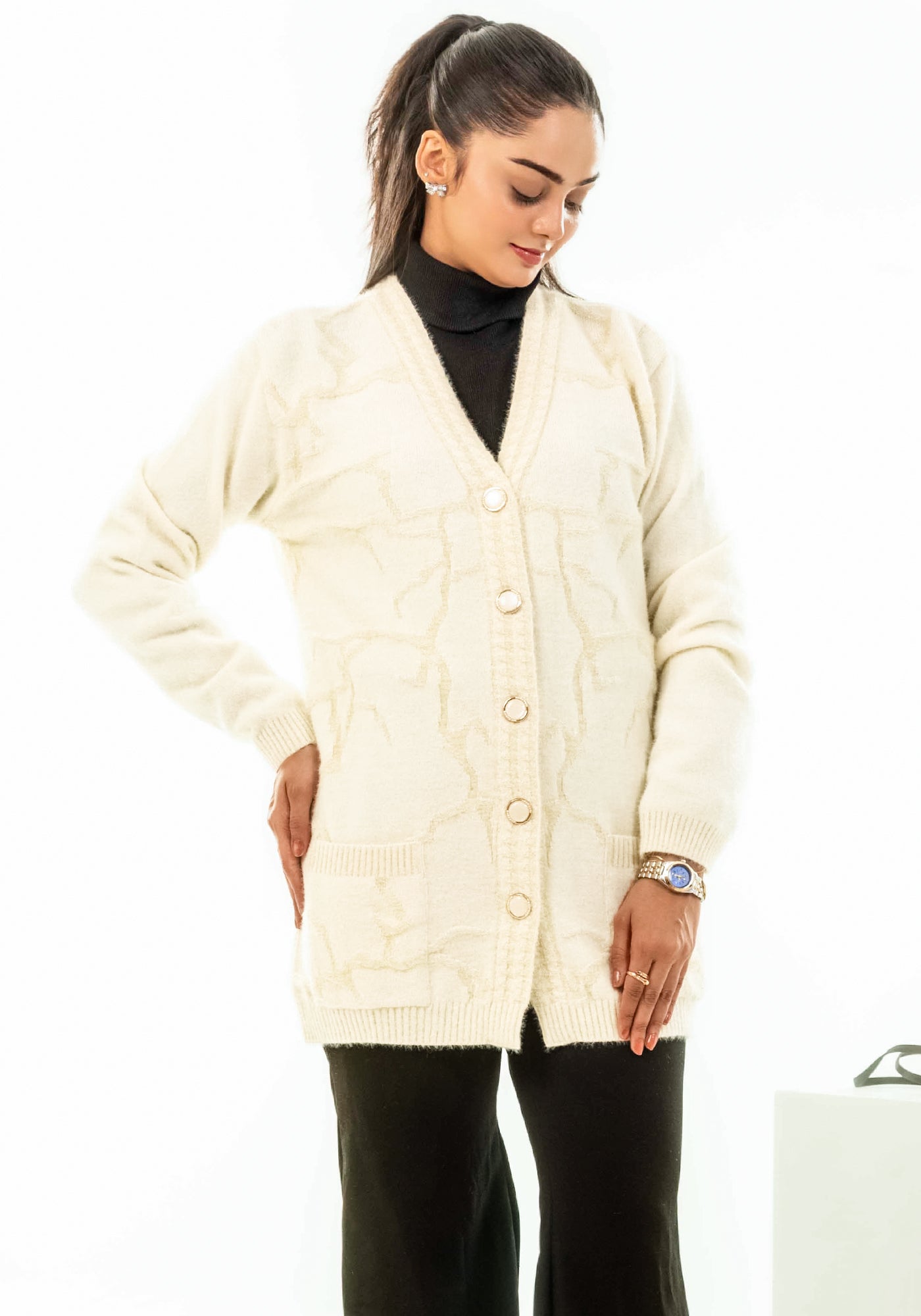 Soft Acrylic Wool Off White Sleeveless Cardigan