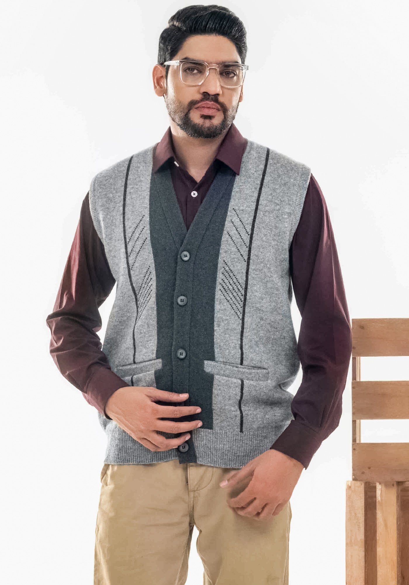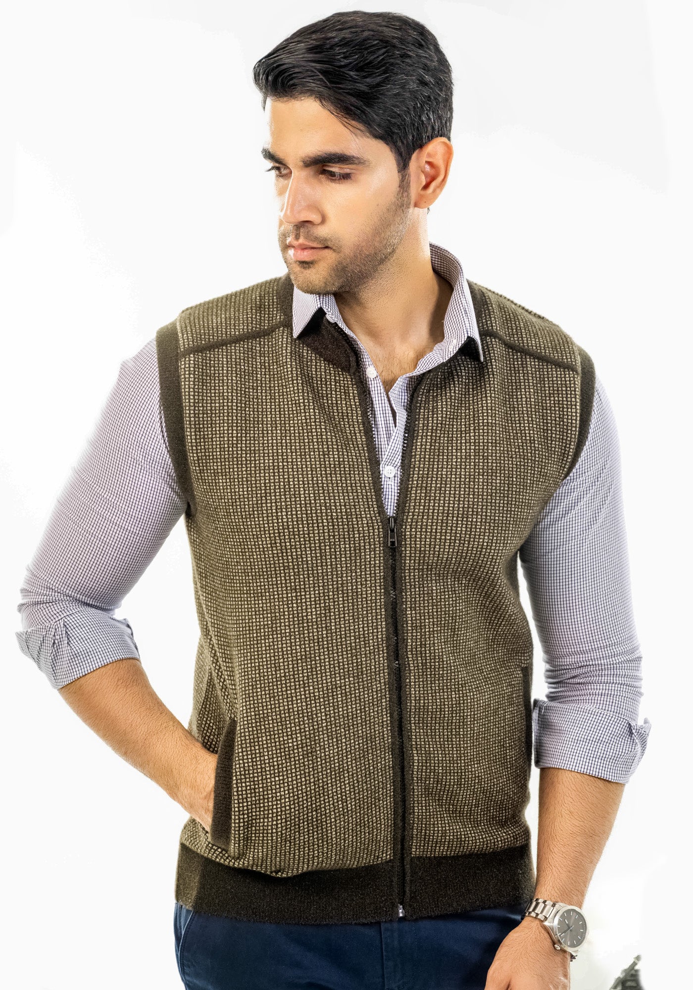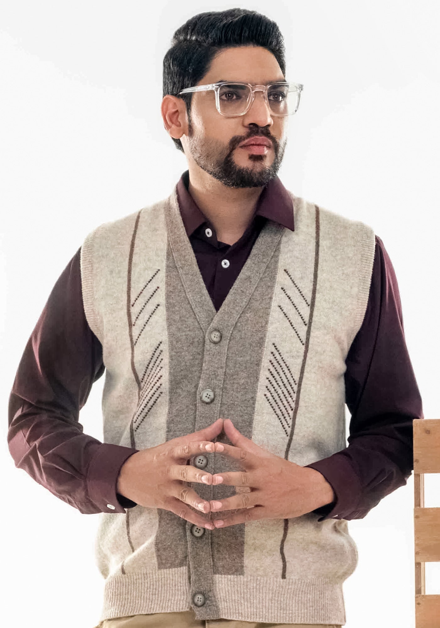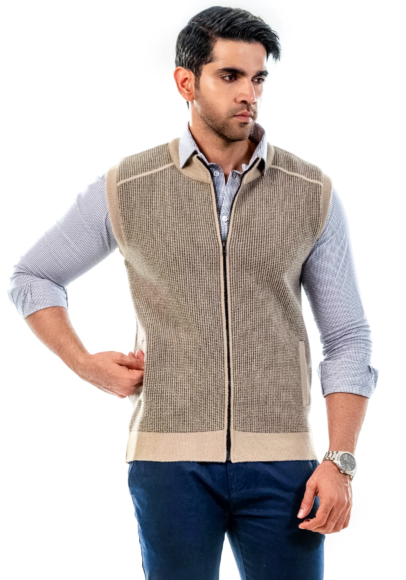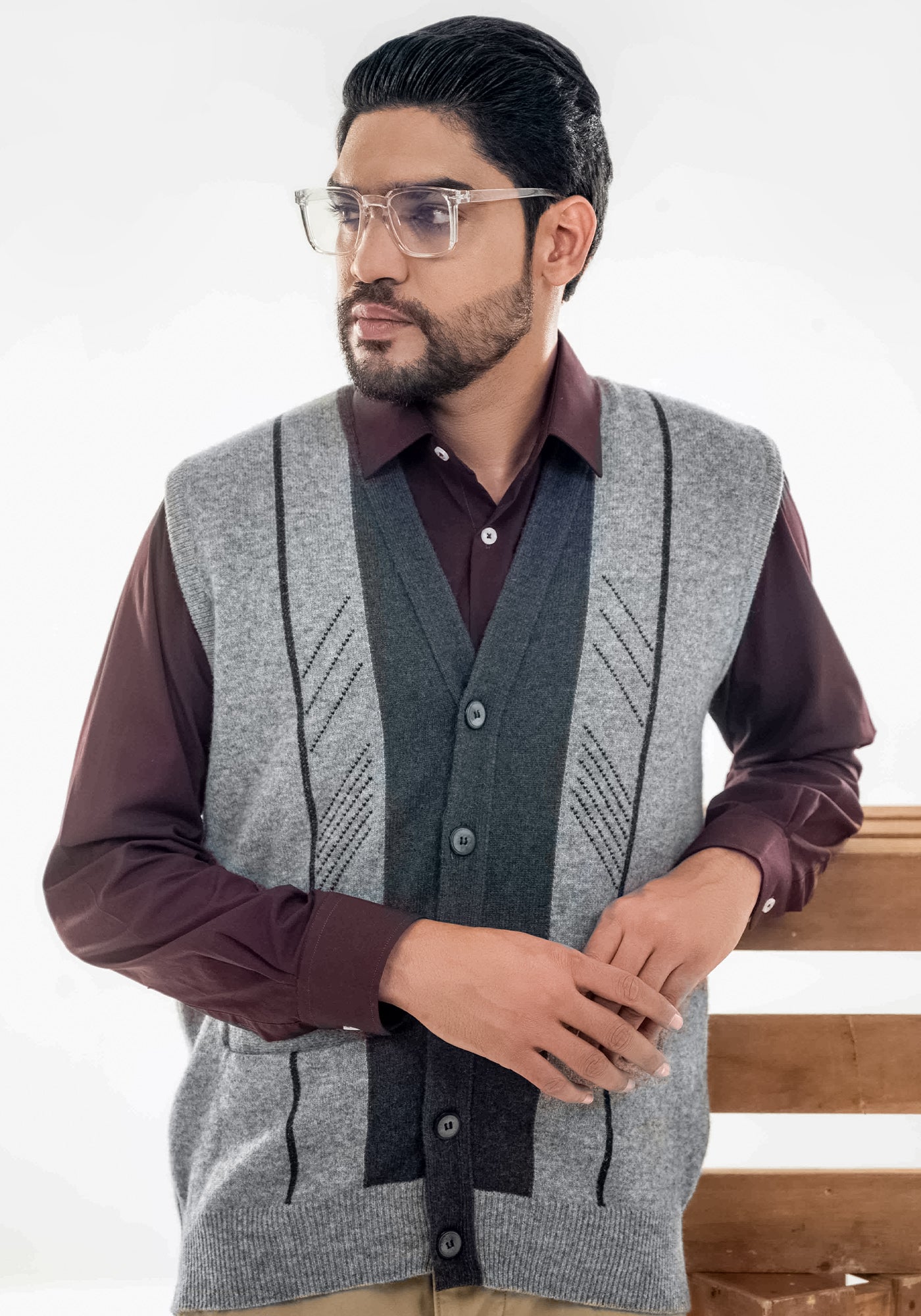 Soft Acrylic Wool Off White Sleeveless Cardigan