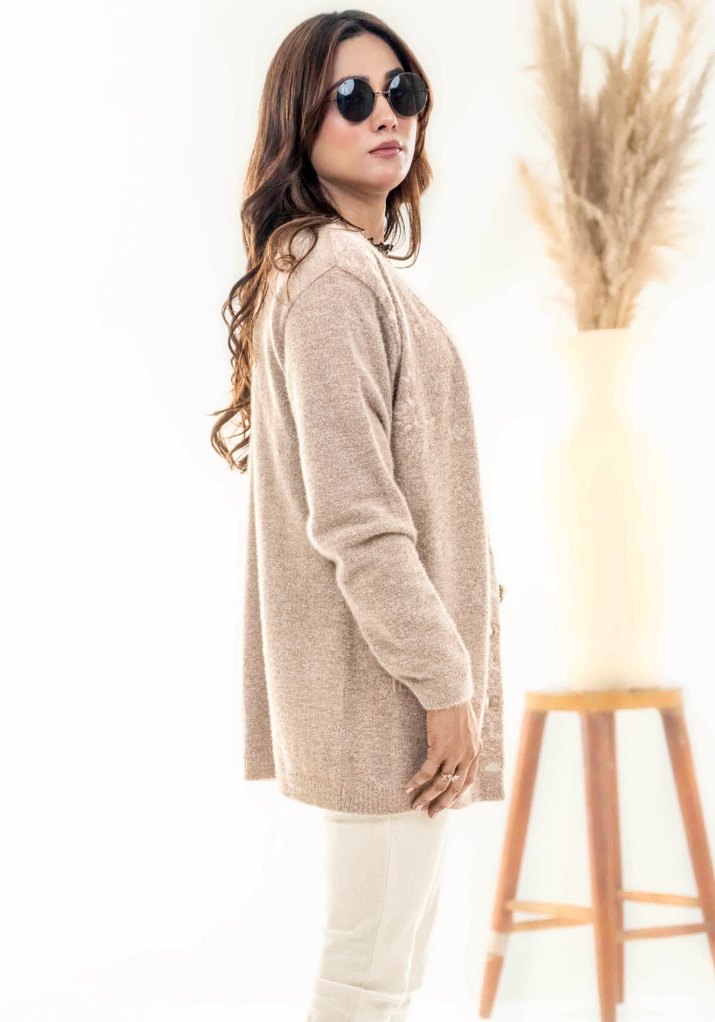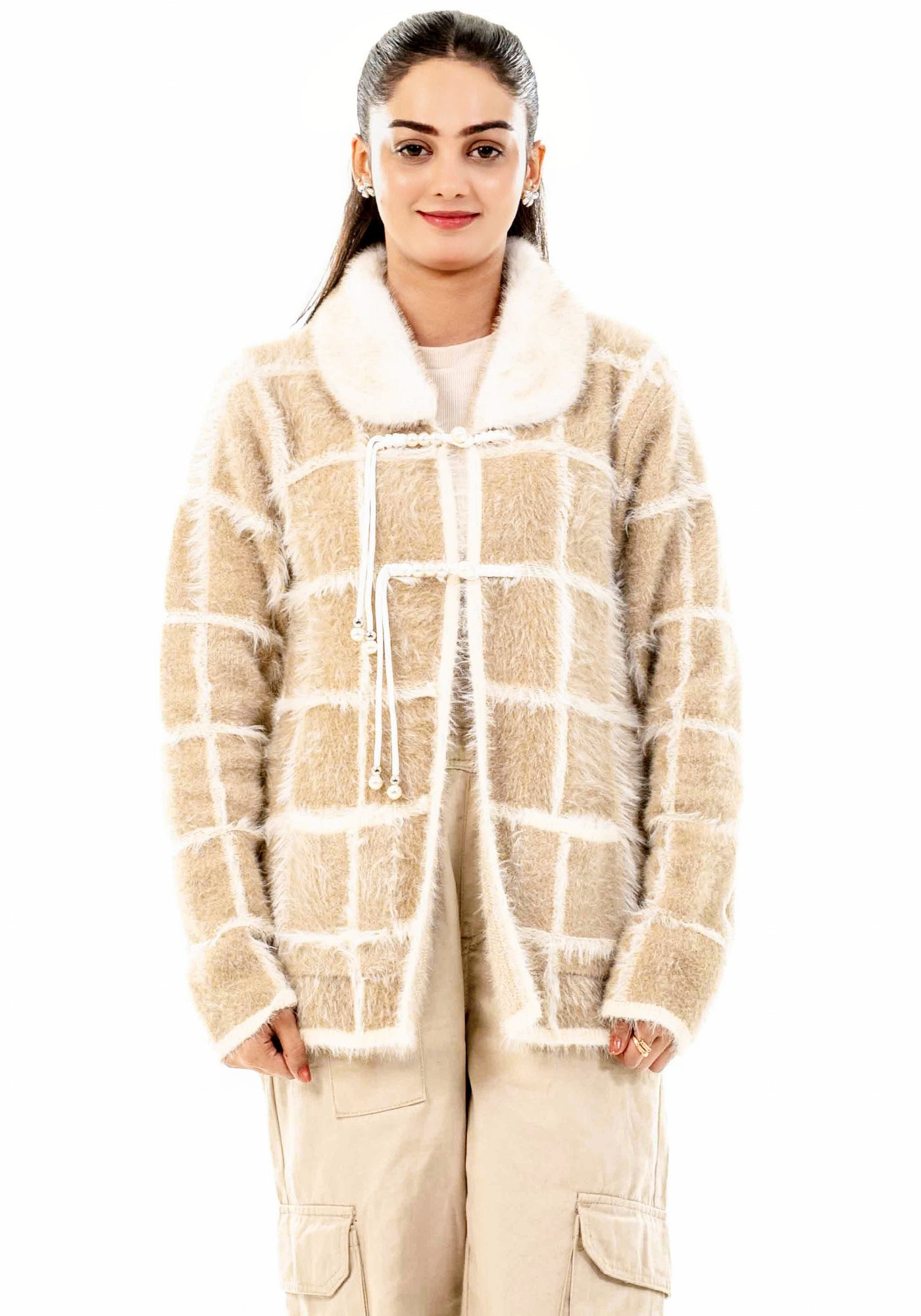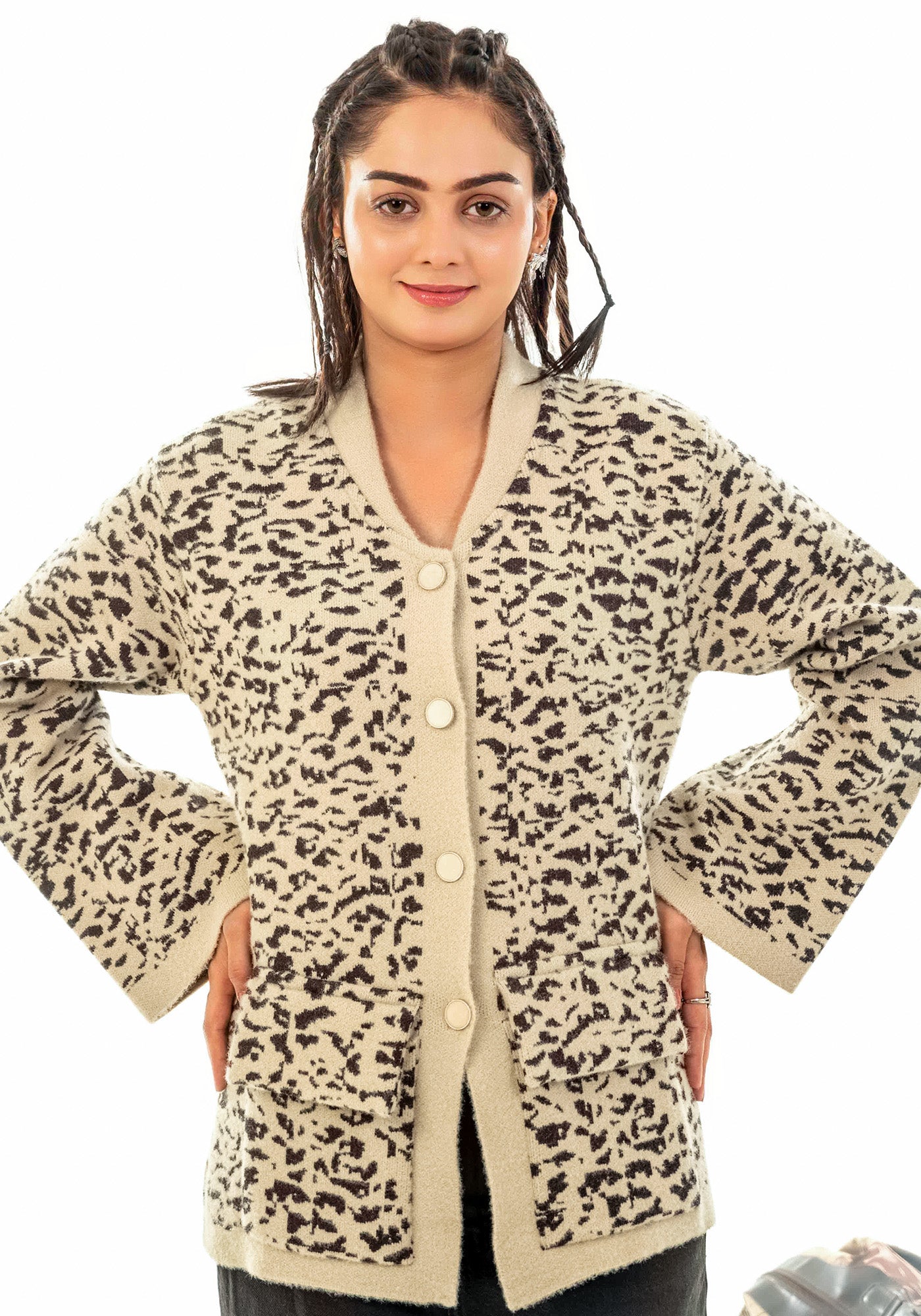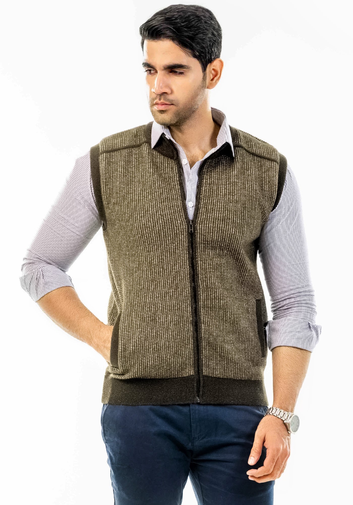 Soft Acrylic Wool Off White Sleeveless Cardigan