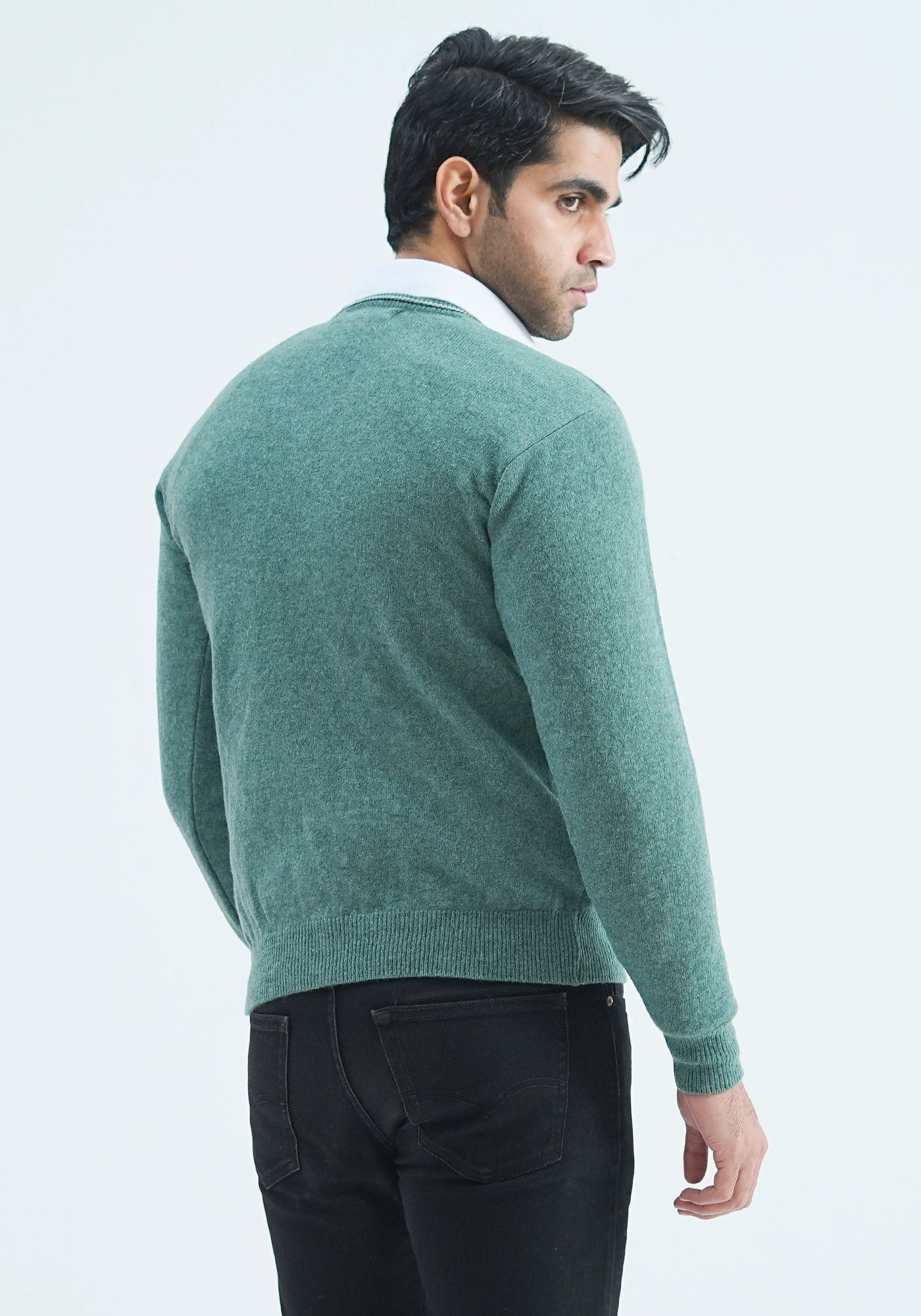 100% Lambswool Plain L Green Cardigan
