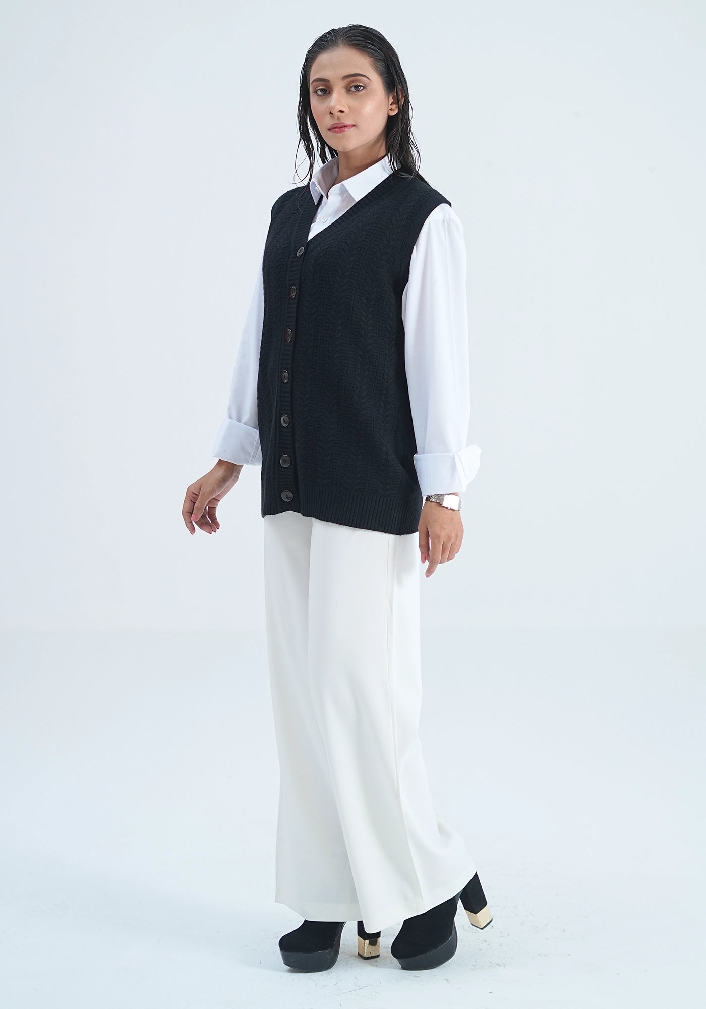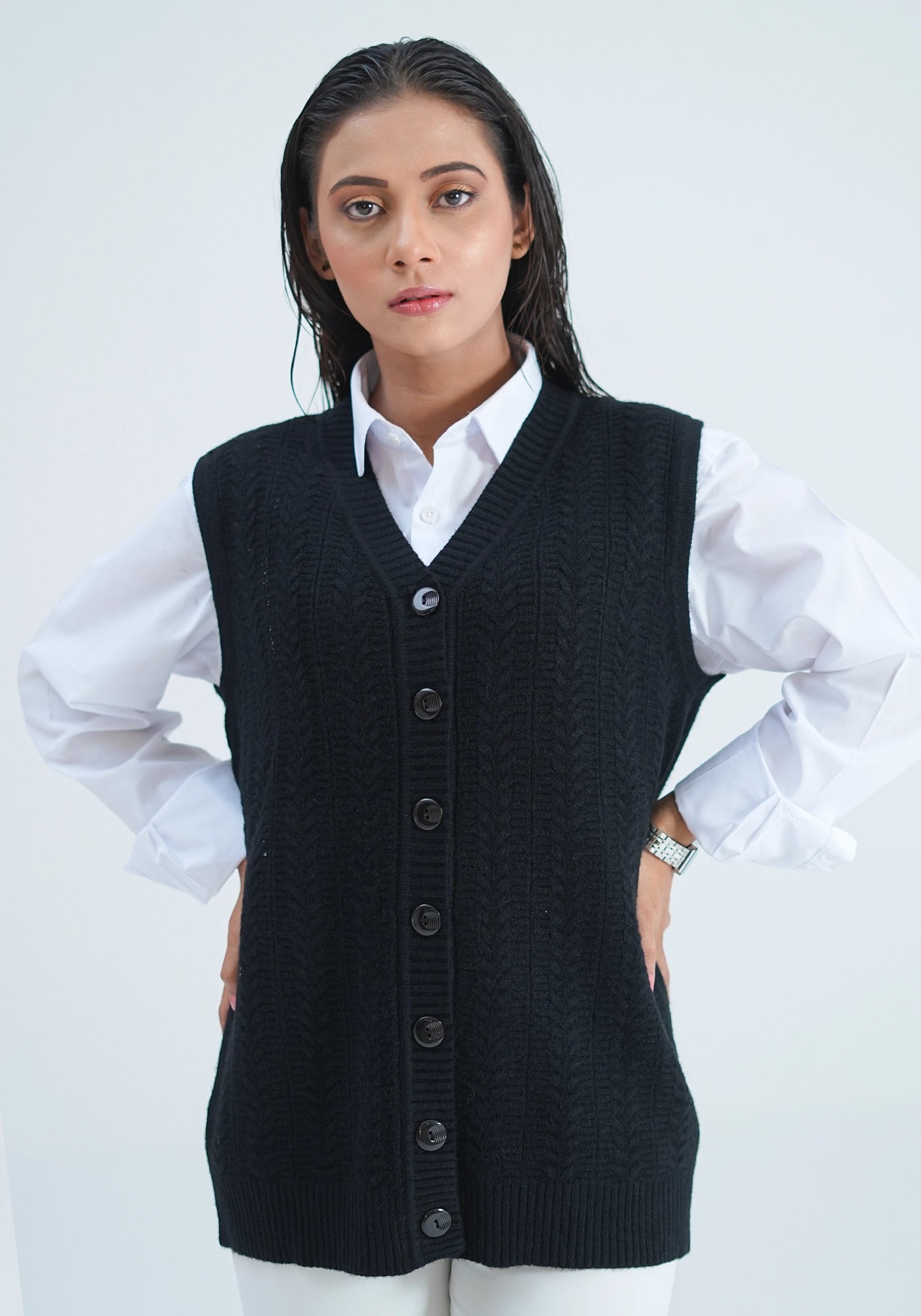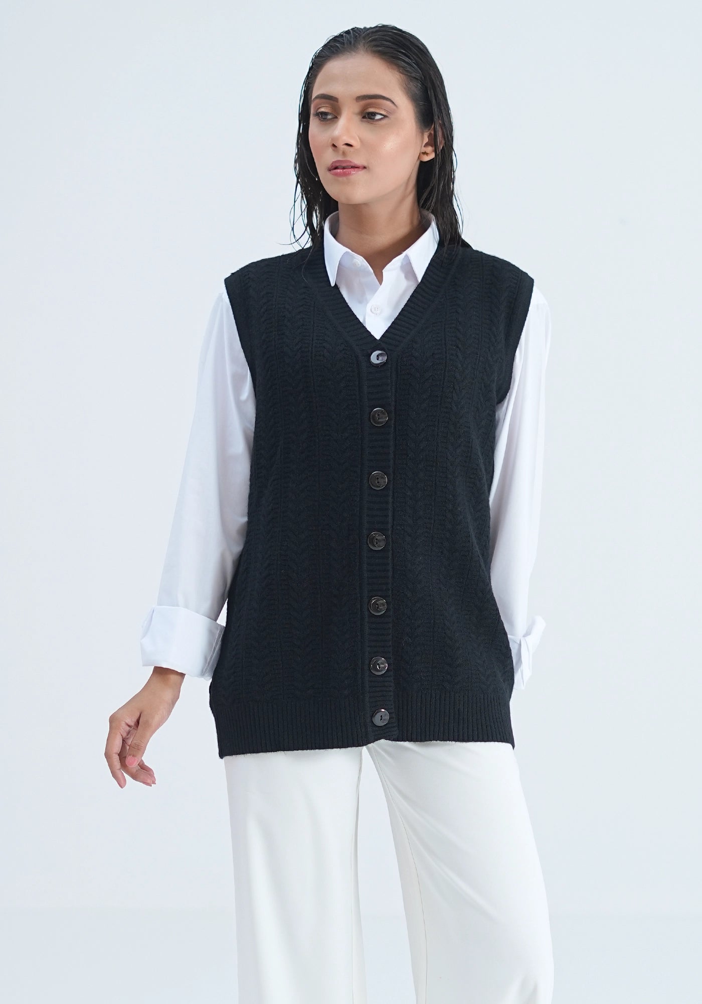 Acrylic Wool Sleeve Less Cardigan