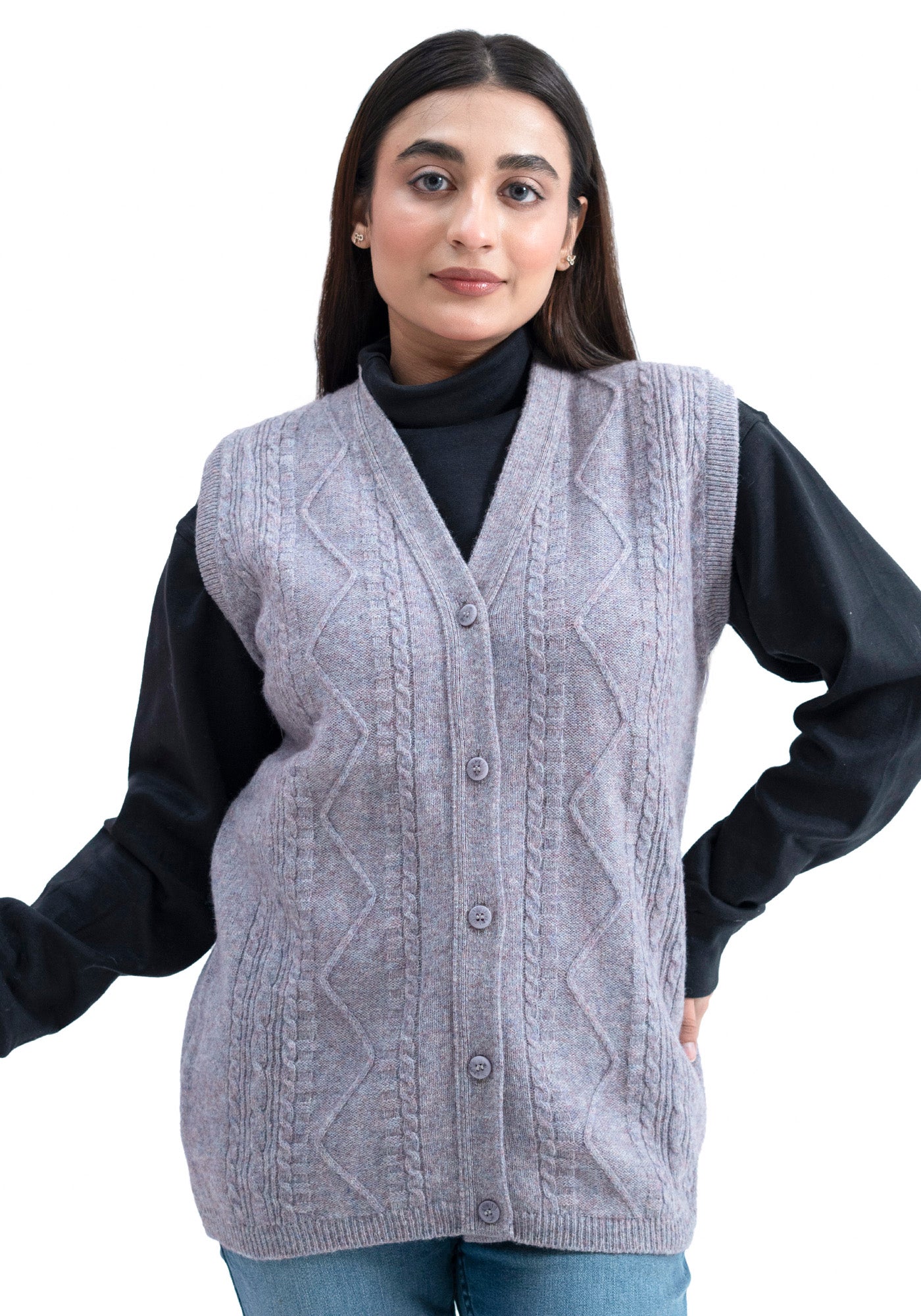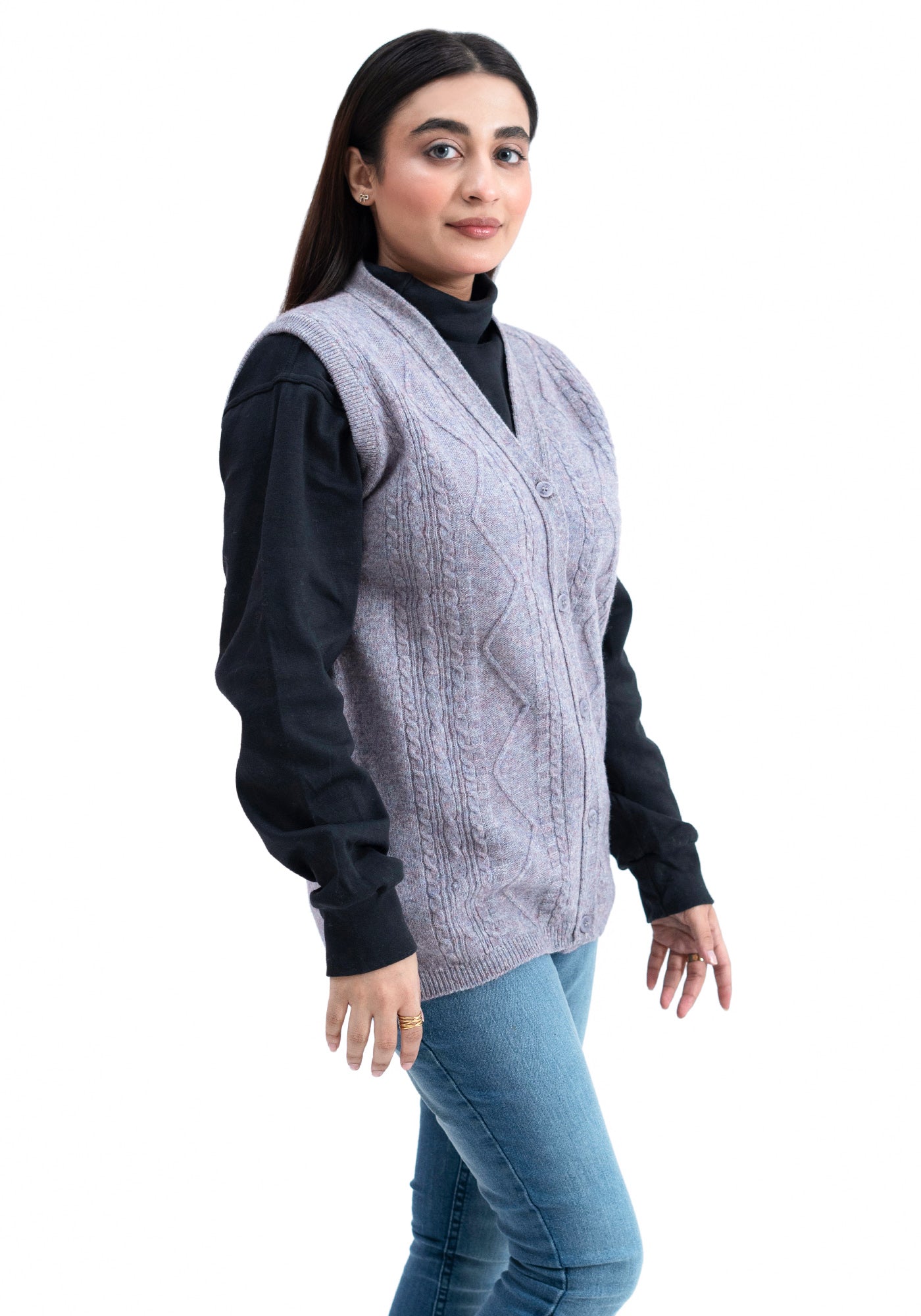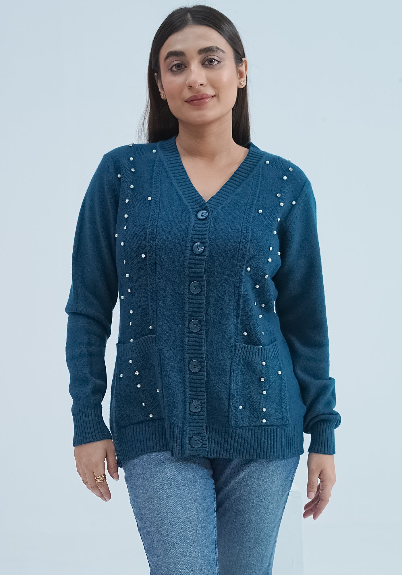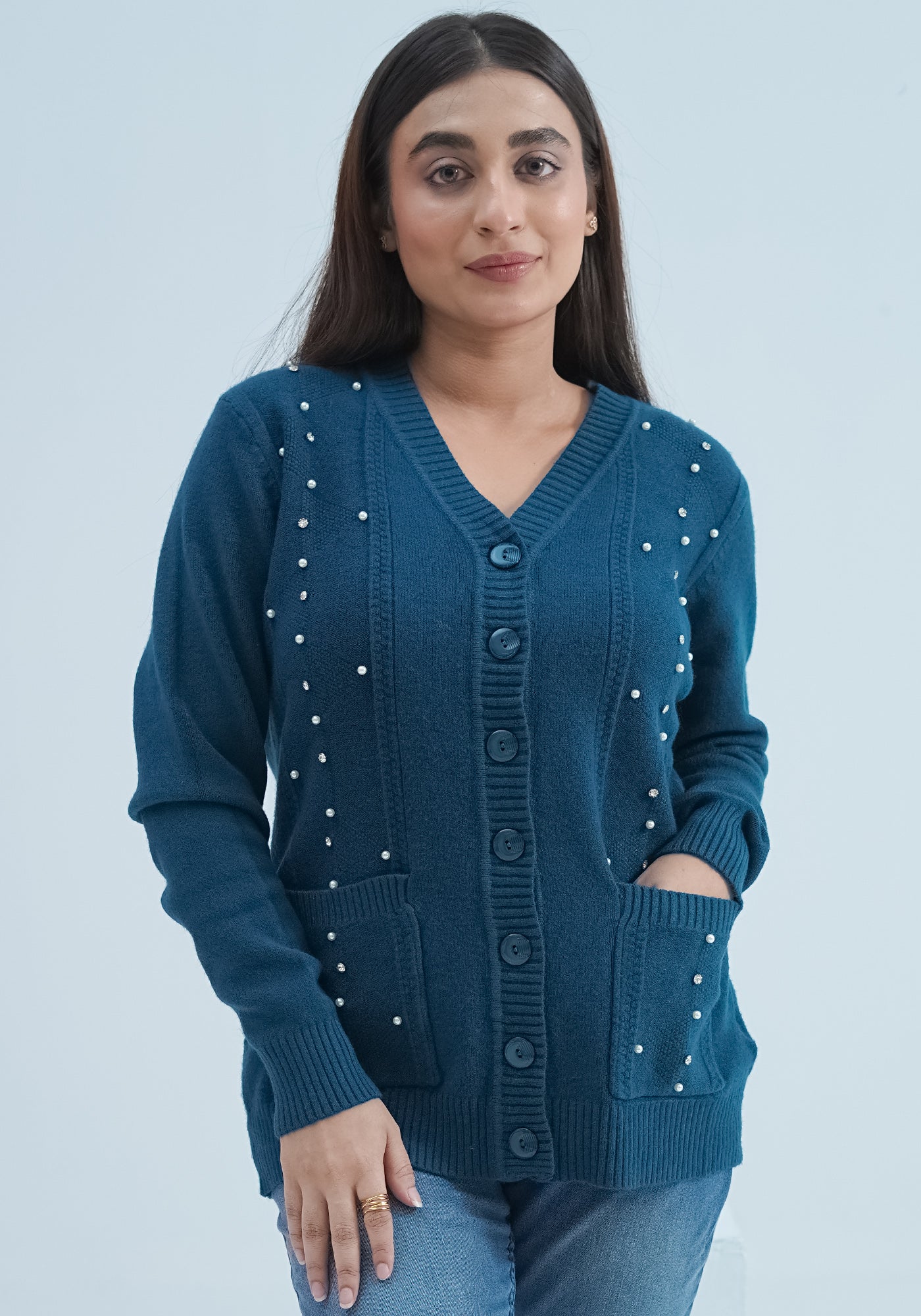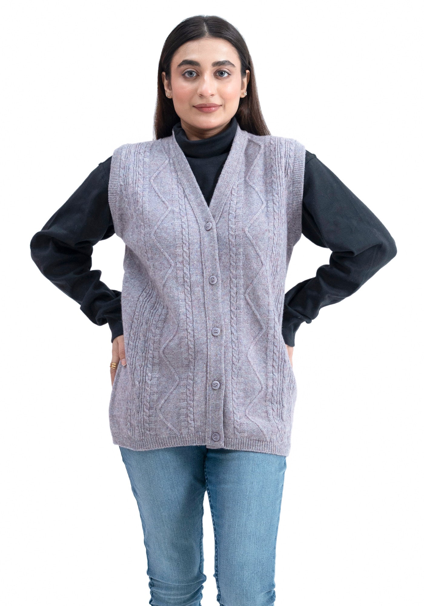 Acrylic Wool Petrol Sleeve Less Cardigan