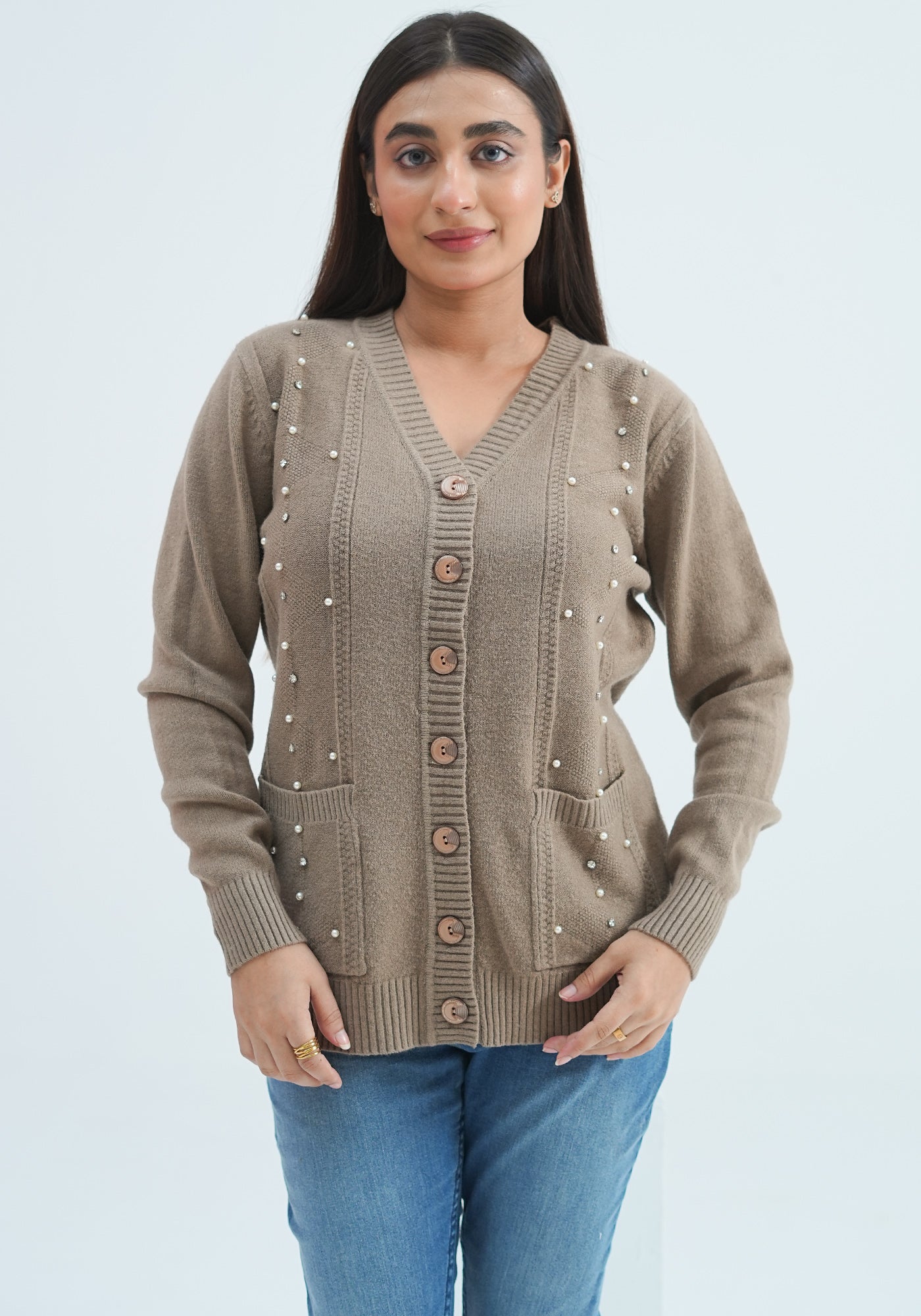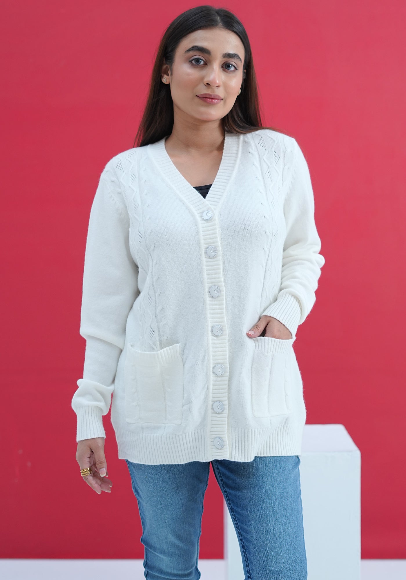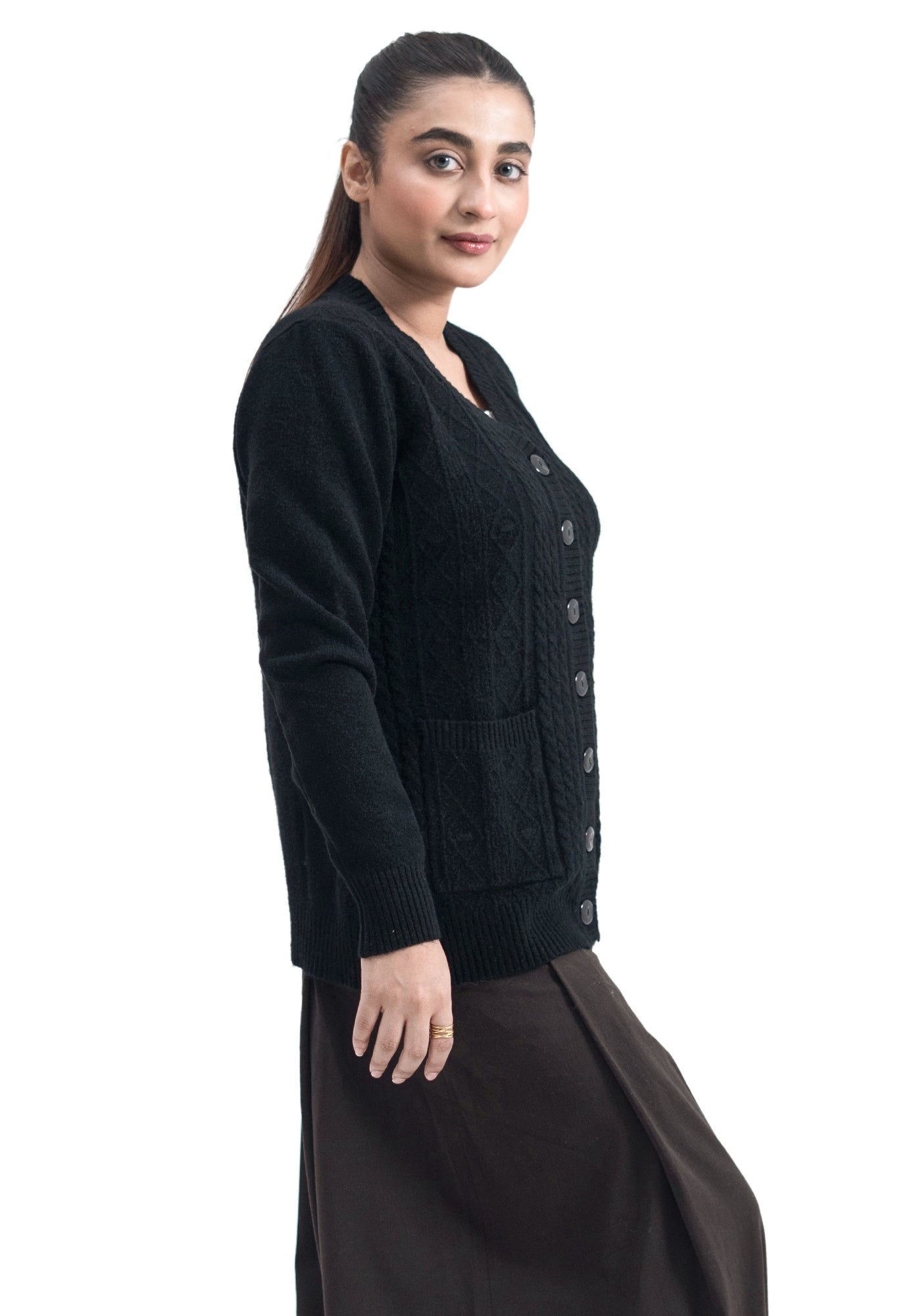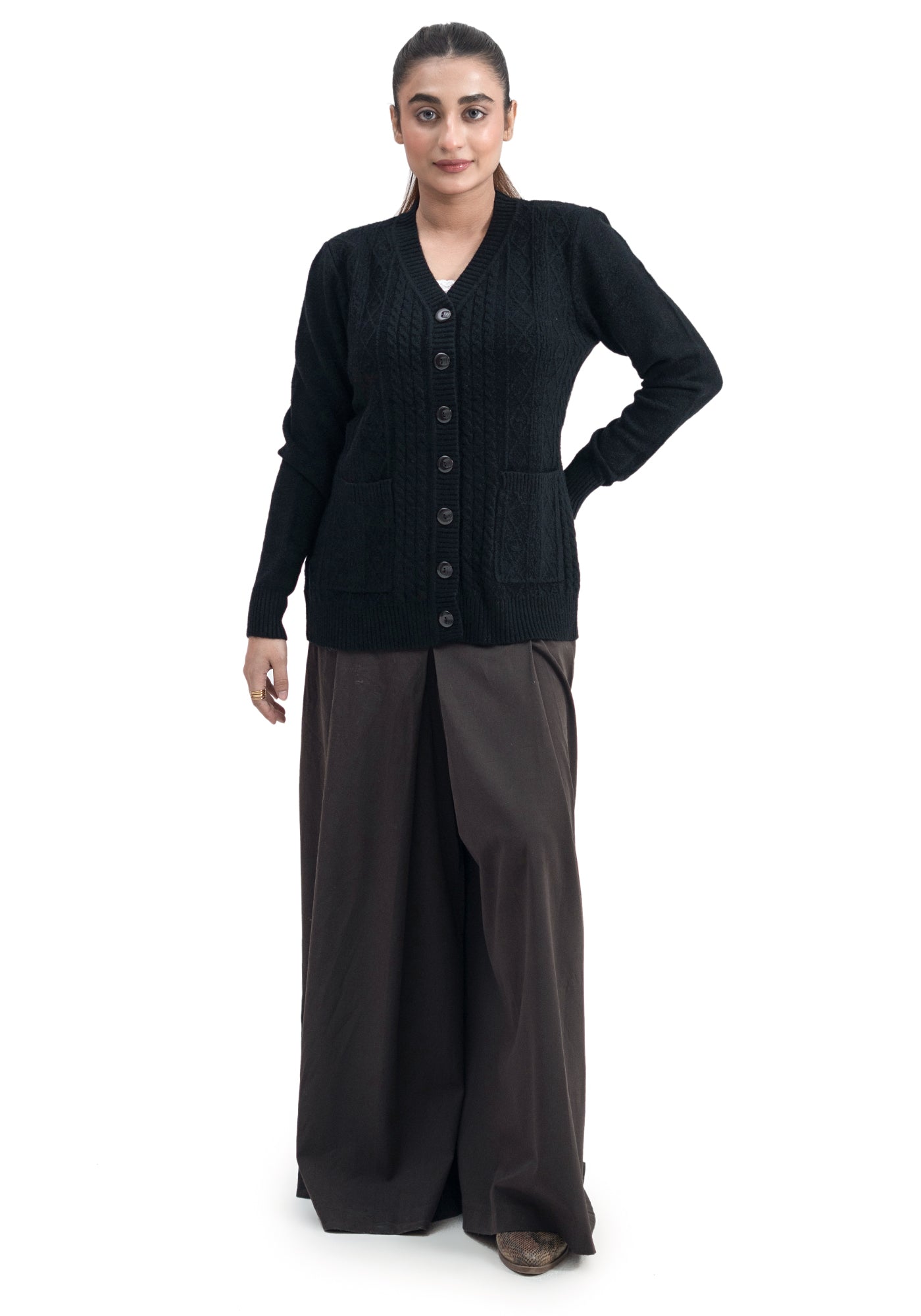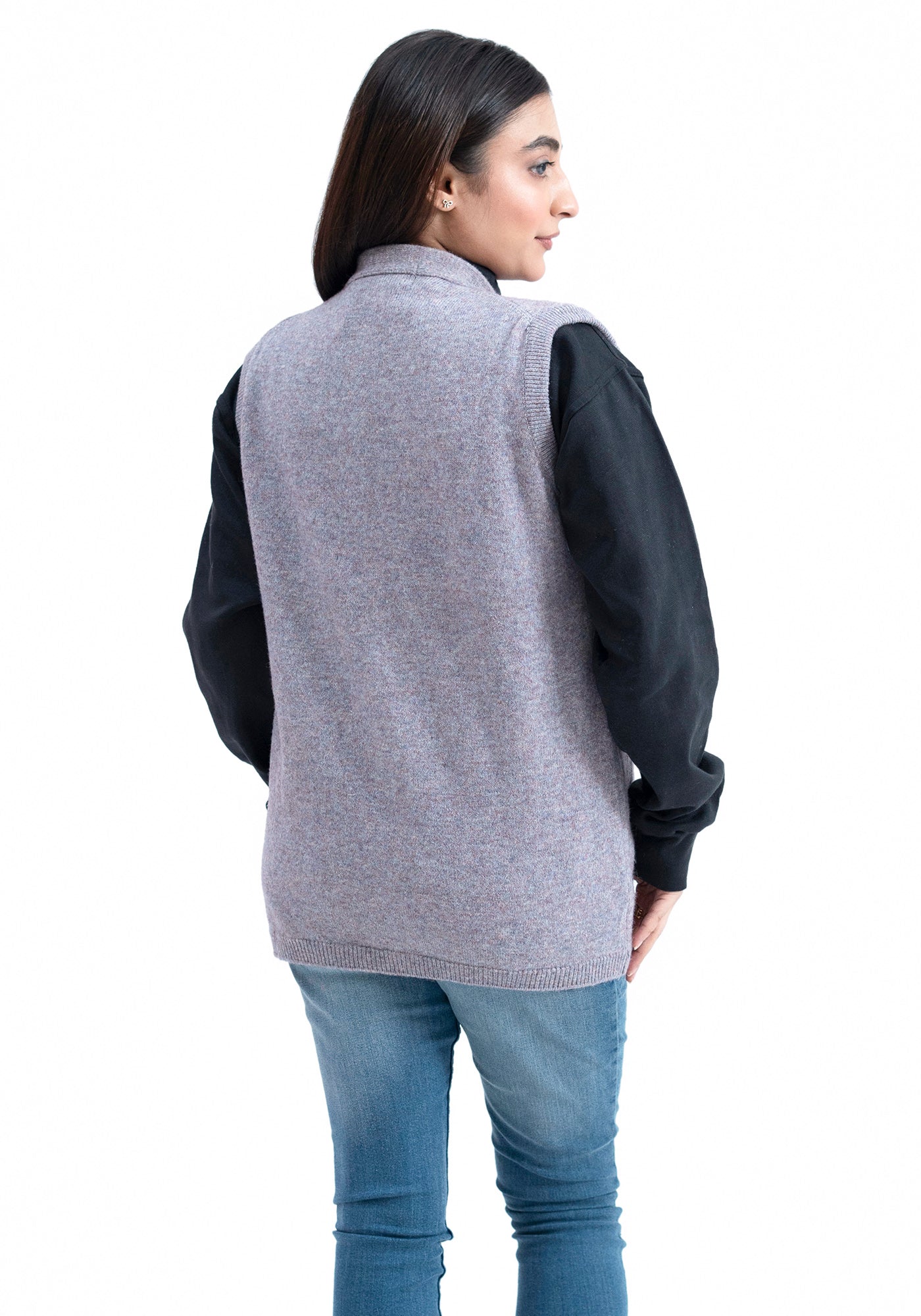 Acrylic Wool Petrol Sleeve Less Cardigan