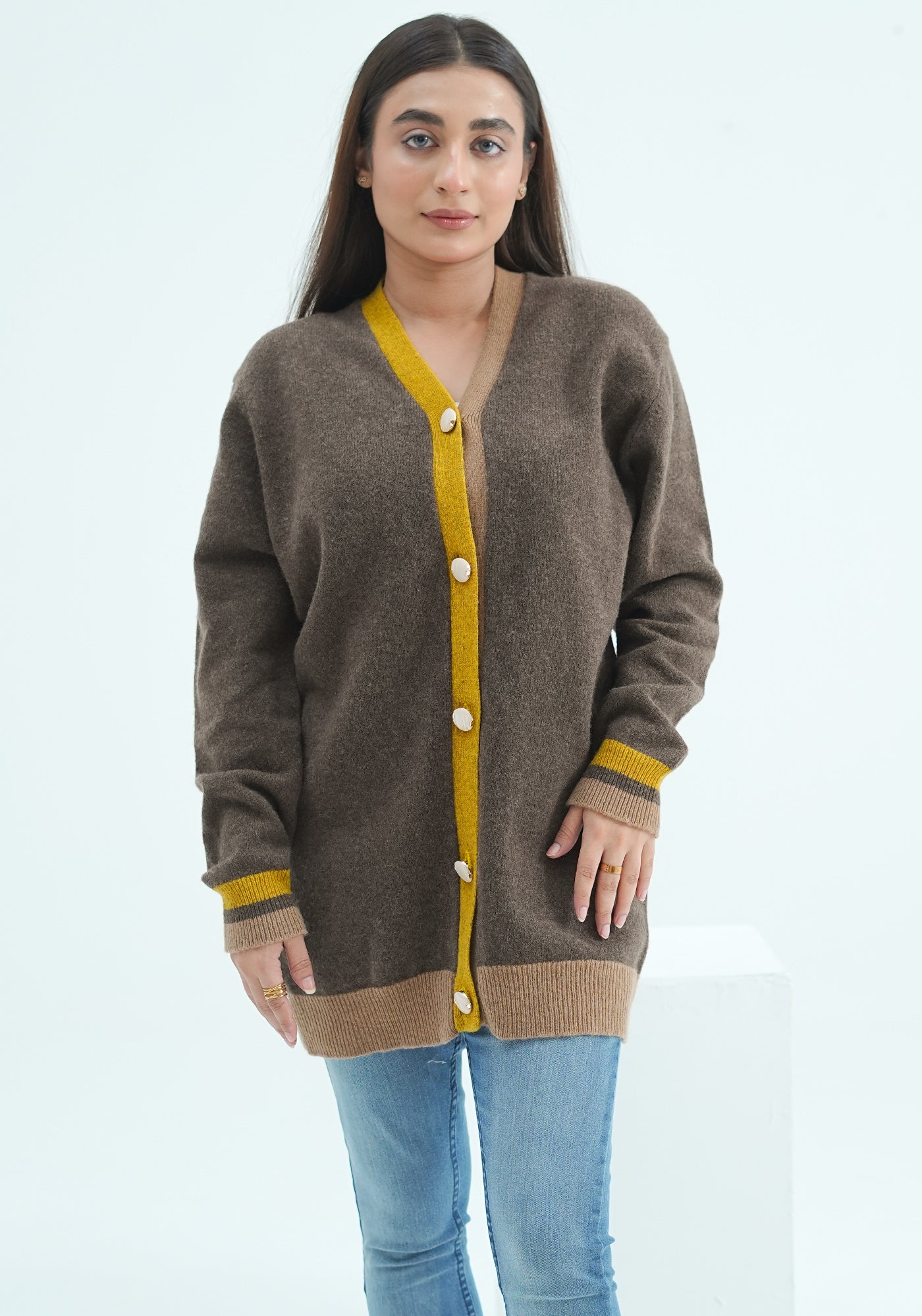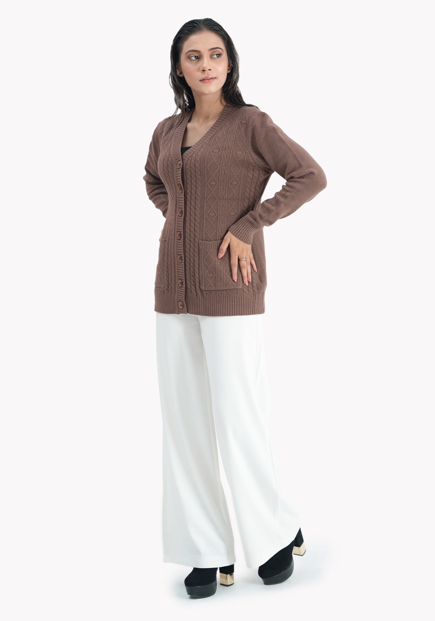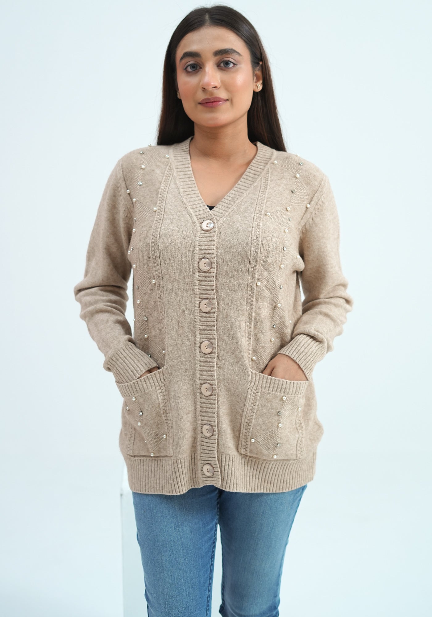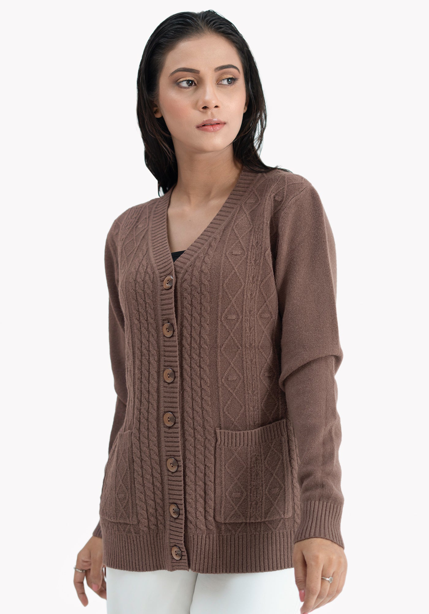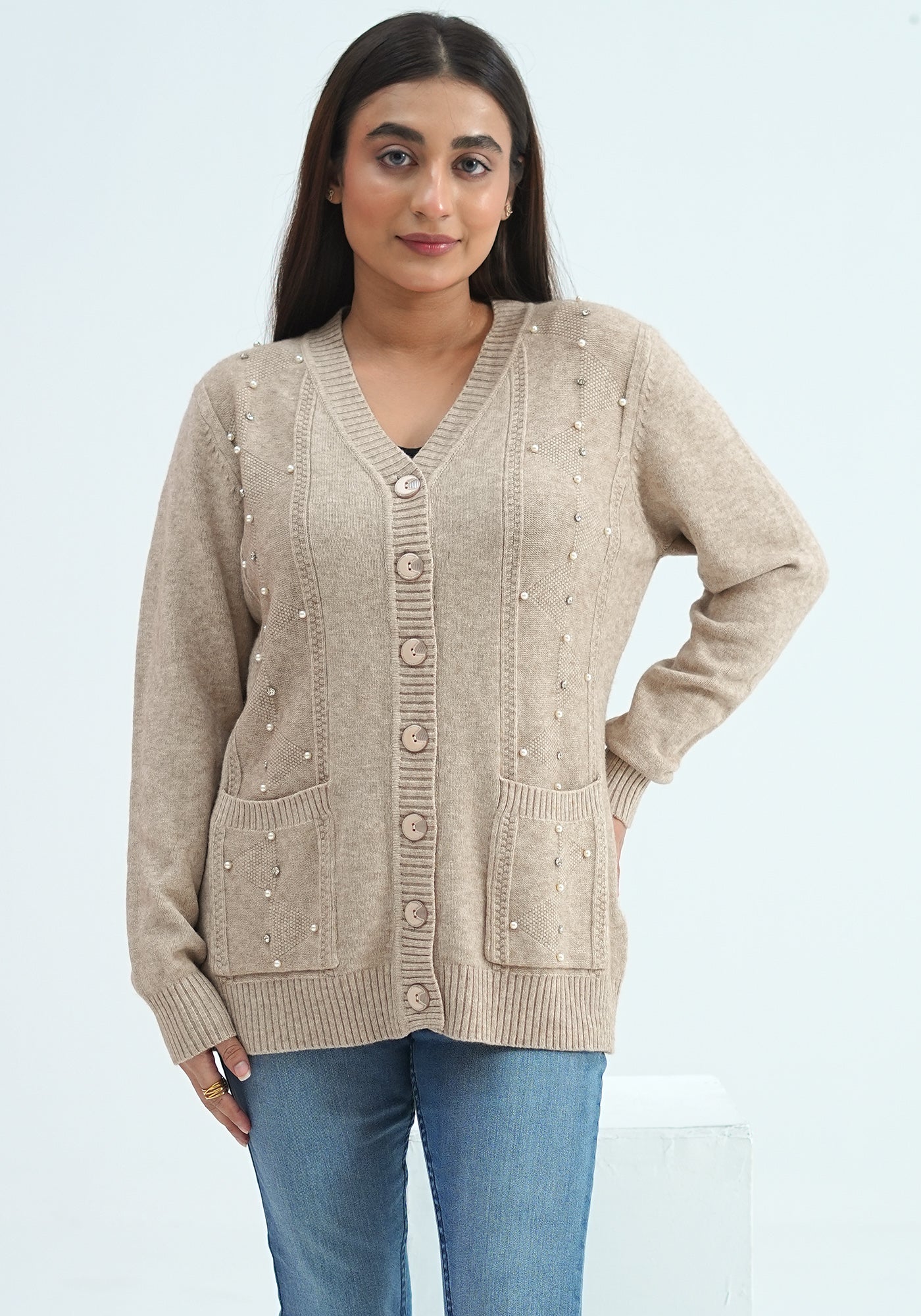 Acrylic Wool Petrol Sleeve Less Cardigan